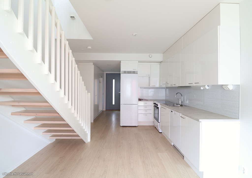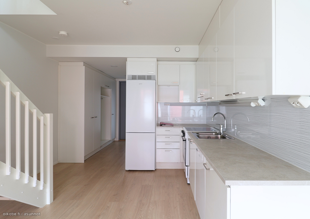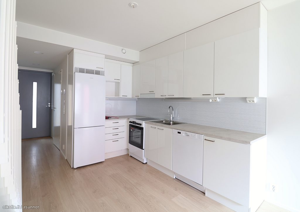 Tämä kauniisti suunniteltu koti tarjoaa toimivan pohjaratkaisun sekä modernit ja käytännölliset tilaratkaisut. Asunnon lattiat ovat laminaattia ja seinät vaalealla maalipinnalla. Kylpyhuoneesta löytyy paikka ja liitännät pyykinpesukoneelle. Asunnossa on kolme tilavaa makuuhuonetta, hyvin säilytystilaa sekä kaksi lasitettua parveketta. Lisäksi asuntoon kuuluu oma pieni piha. Keittiössä on nykyaikaiset kodinkoneet.