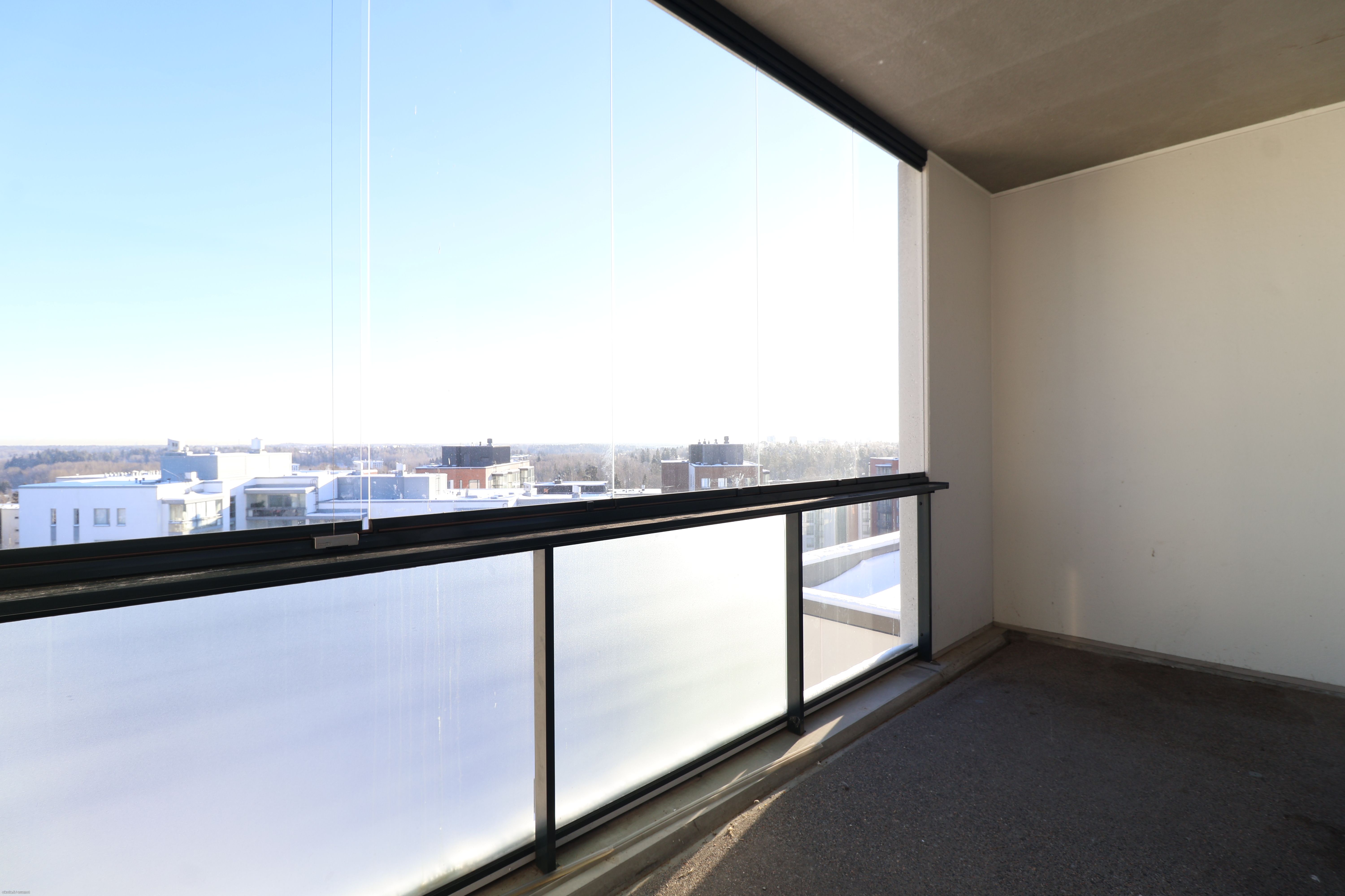 Vaaleat seinäpinnat ja modernit kodinkoneet takaavat asumisen ja sisustamisen helppouden. Keittiöstä löytyy jääkaappipakastin, integroitu astianpesukone, uuni ja liesi. Makuuhuone on tilava ja varusteltu suurilla vaatekaapeilla. Lattialämmityksen ansiosta pattereita ei ole. Kylpyhuoneessa on paikka ja liitännät pyykinpesukoneelle. Tilava lasitettu parveke lisää asuinmukavuutta ja ylimmän kerroksen ansiosta näkymät ovat upeat ja ylettyvät pitkälle.