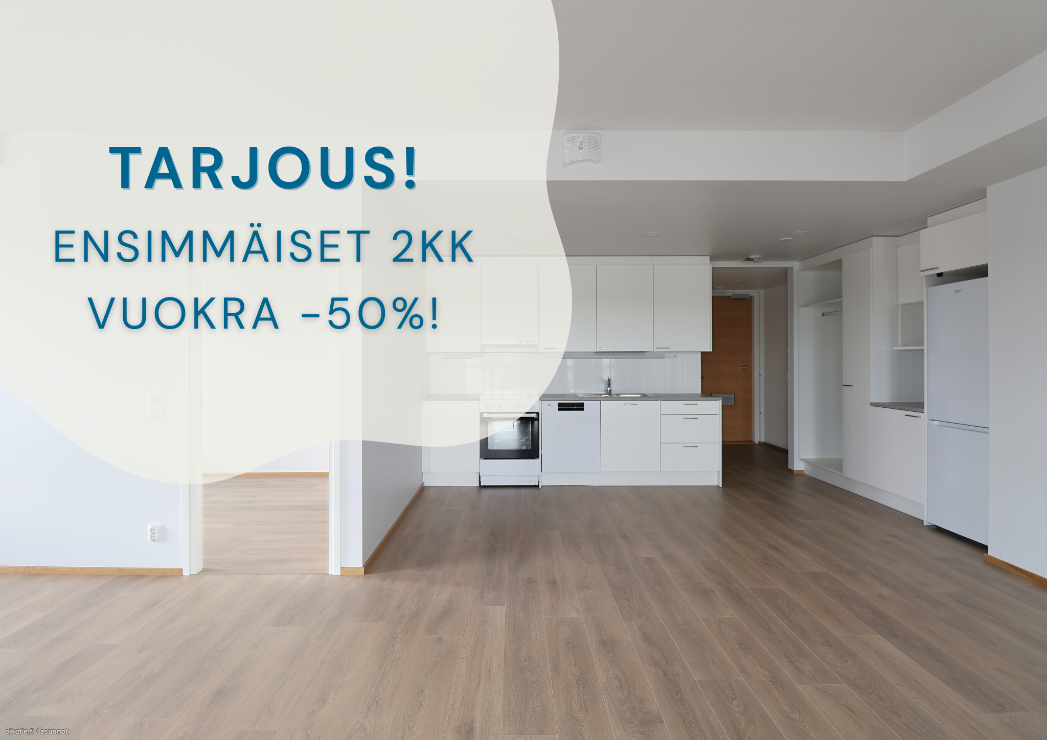 Uuden vuokralaisen Etu! Ensimmäiselle kahdelle asumiskuukaudelle saat -50% alennuksen vuokrasta. Kampanja-ajan jälkeen tämän asunnon vuokra on 1650€/kk.