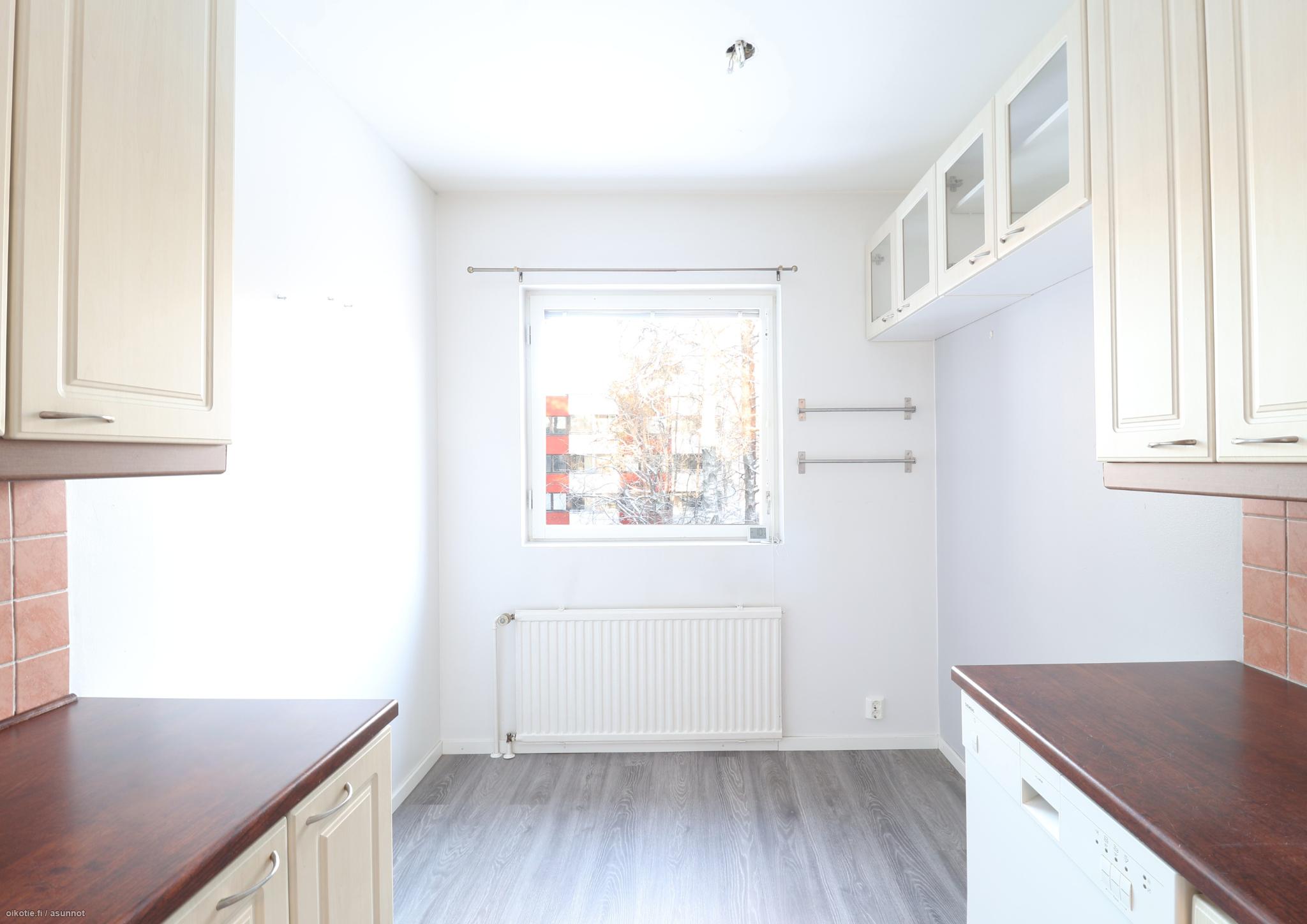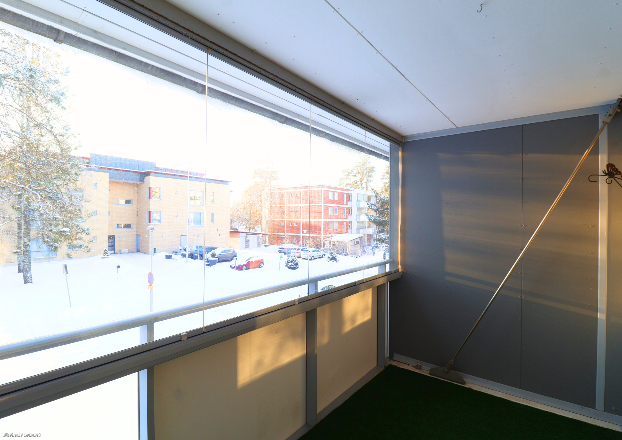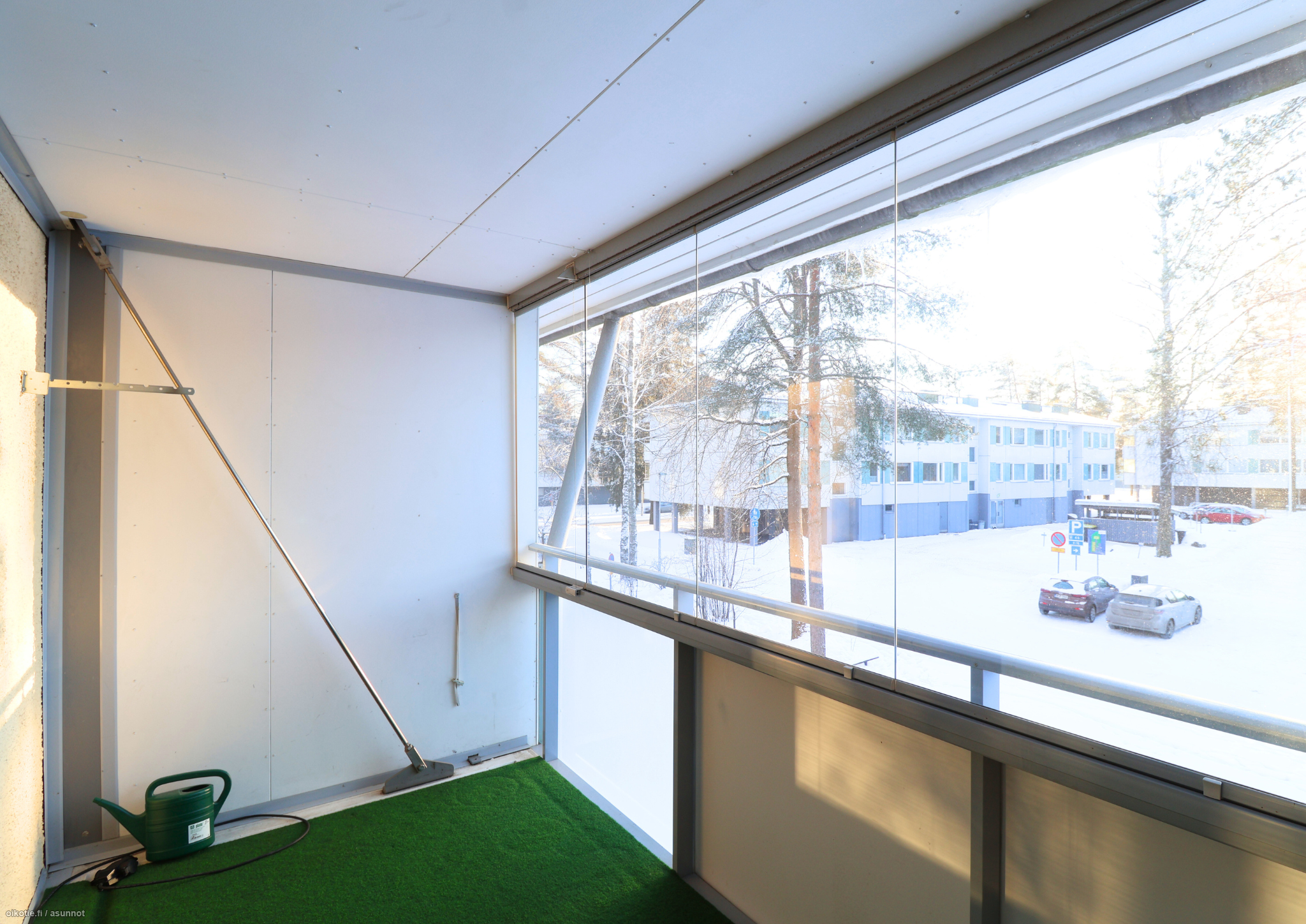 Asunto sijaitsee ylimmässä kerroksessa. Pohjaratkaisu on käytännöllinen ja huoneet ovat hyvän kokoiset. Keittiöstä löytyy astianpesukone, jääkaappipakastin sekä uuni ja liesi. Kaappitilaa löytyy myös hyvin. Olohuone on tilava ja valoisa ja sieltä pääsee kulkemaan asunnon lasitetulle parvekkeelle. Makuuhuone on avaran tuntuinen ja sieltä löytyy runsaasti säilytystilaa suuren kaapiston ansiosta. Kylpyhuone on siisti ja putkiremontoitu. Sieltä löytyy sekä liitännät, että tilavaraus pyykinpesukoneelle.