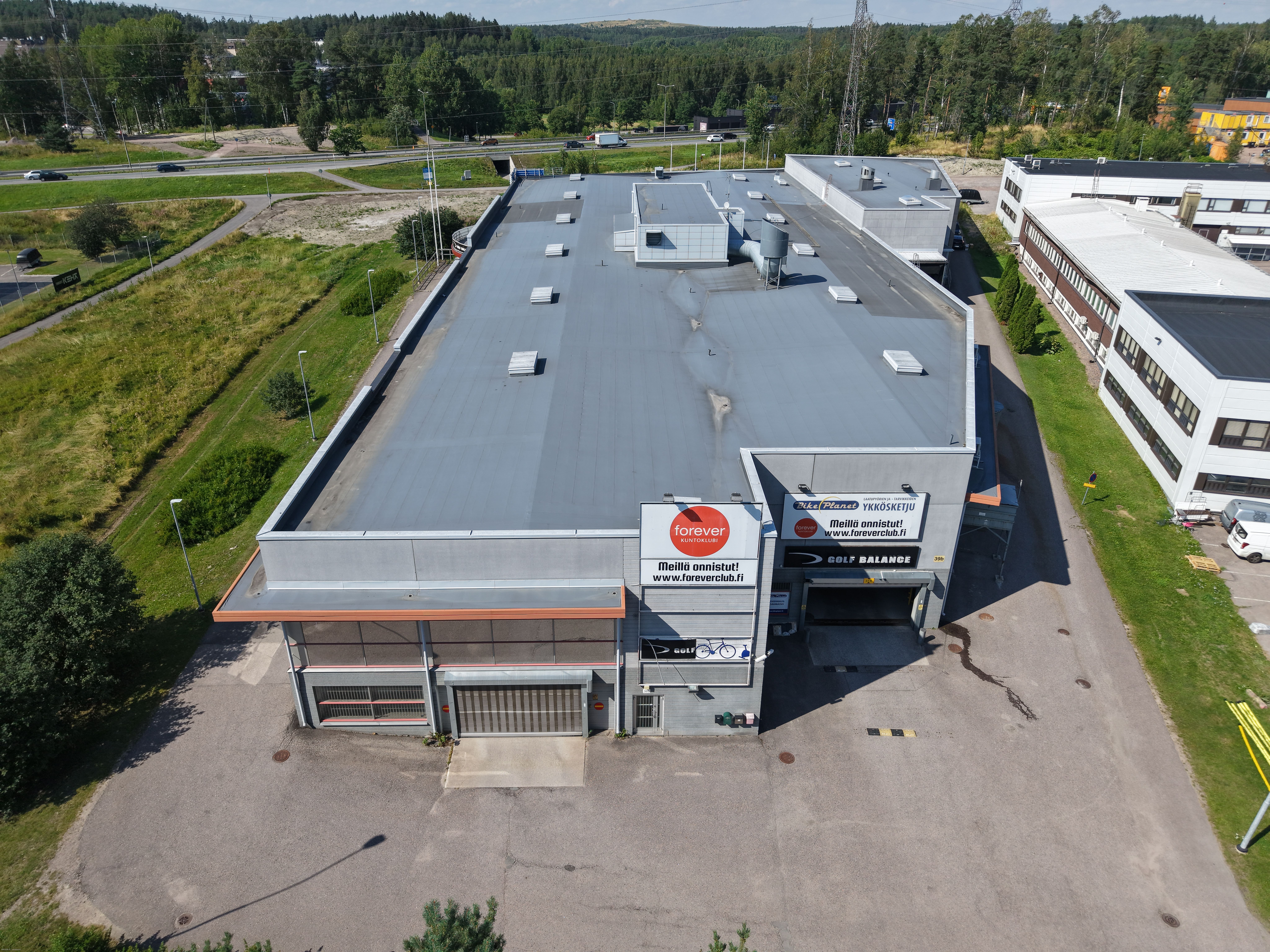 Liiketilan alla iso parkkihalli.