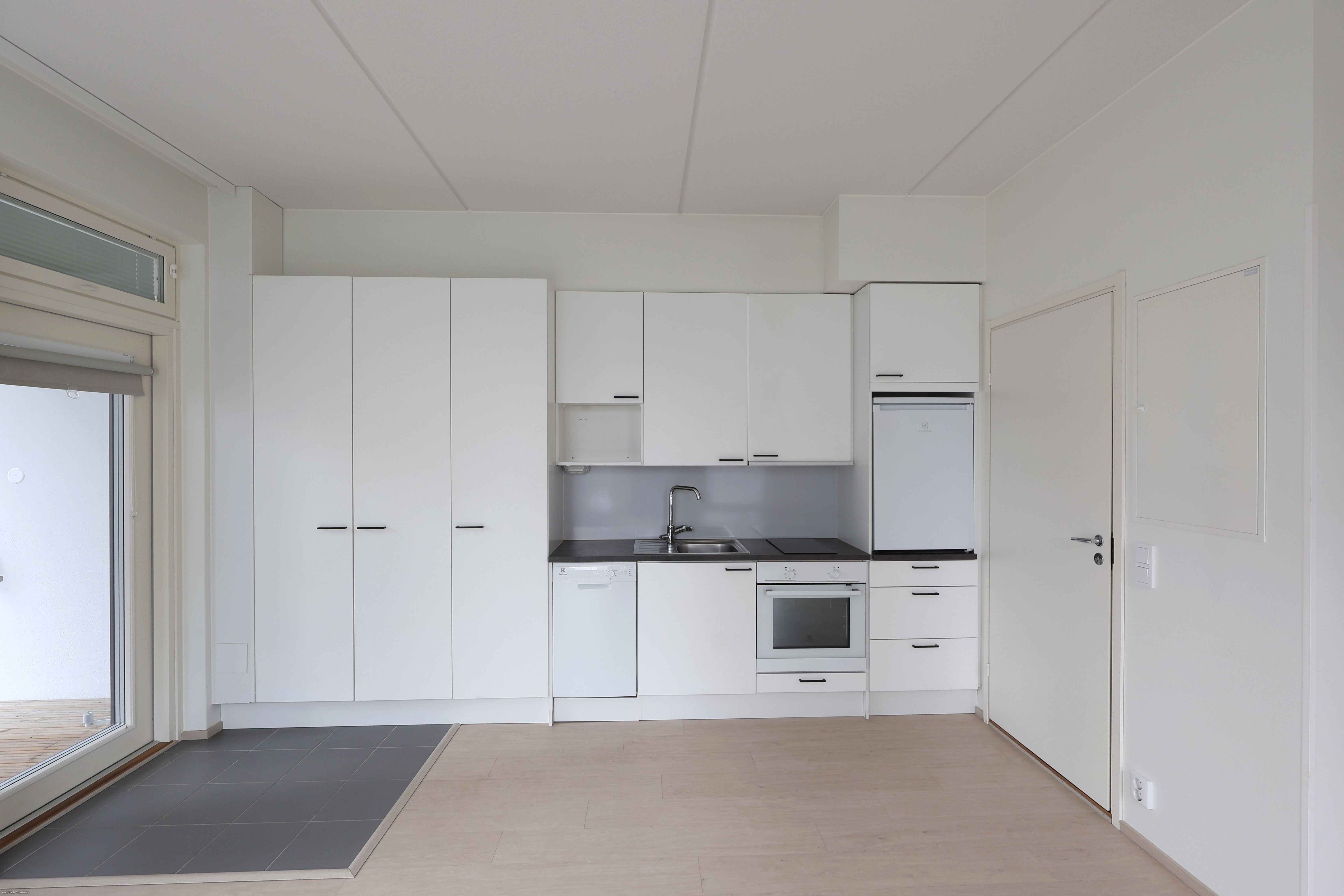 Asunnon seinät ovat maalipinnoin. Kylpyhuone on laatoitettu ja sieltä löytyy pesukoneelle paikka ja liitännät. Keittiöstä löytyy astianpesukone, jääkaappi/pakastin, uuni sekä keraaminen liesi. Asunnossa on terassi sekä pieni piha, asuntoon on oma sisäänkäynti.