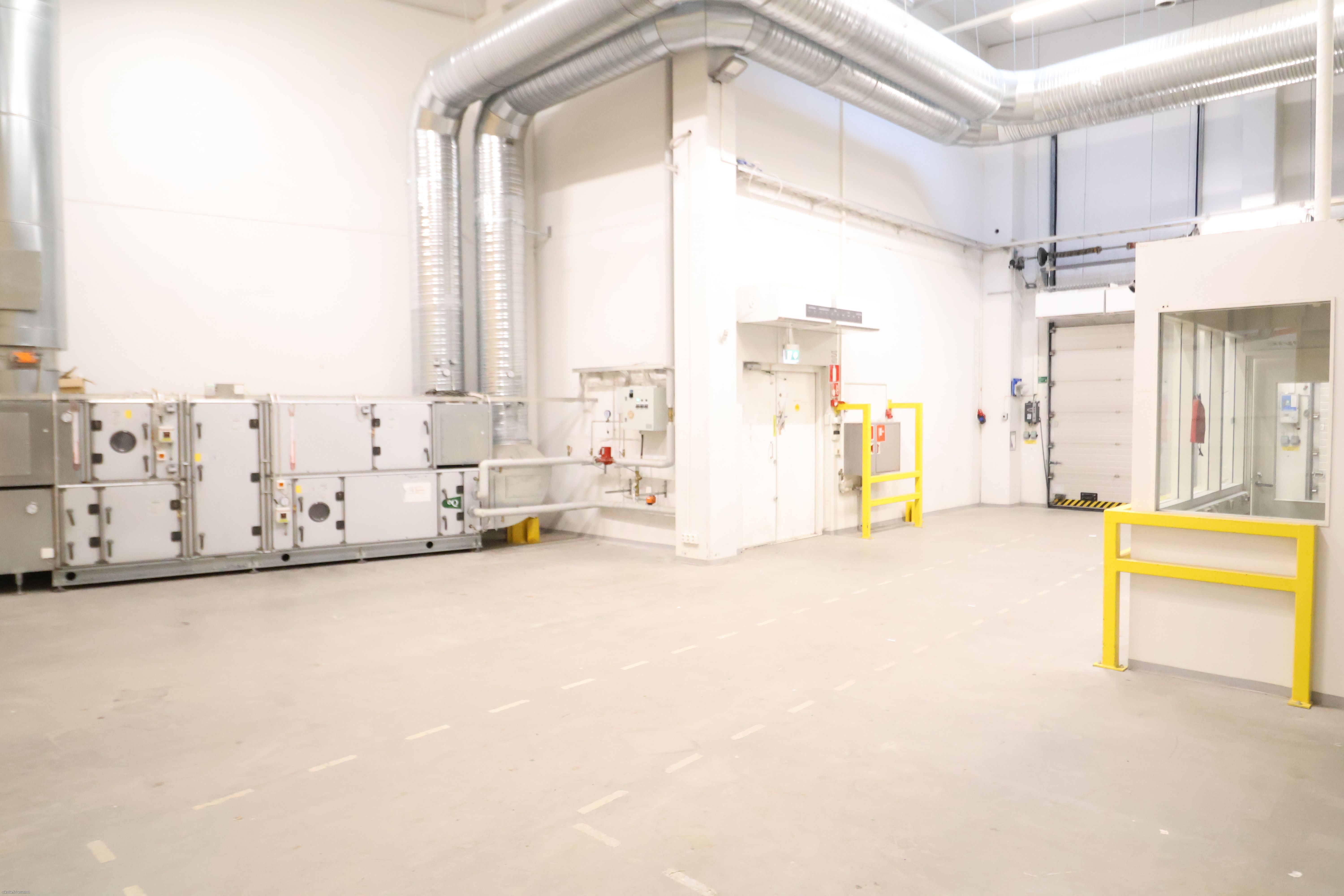 – 500 m² varastoa, jonka korkeus on noin 6,5 metriä. Varastotilassa on kaksi lastaustaskua.
