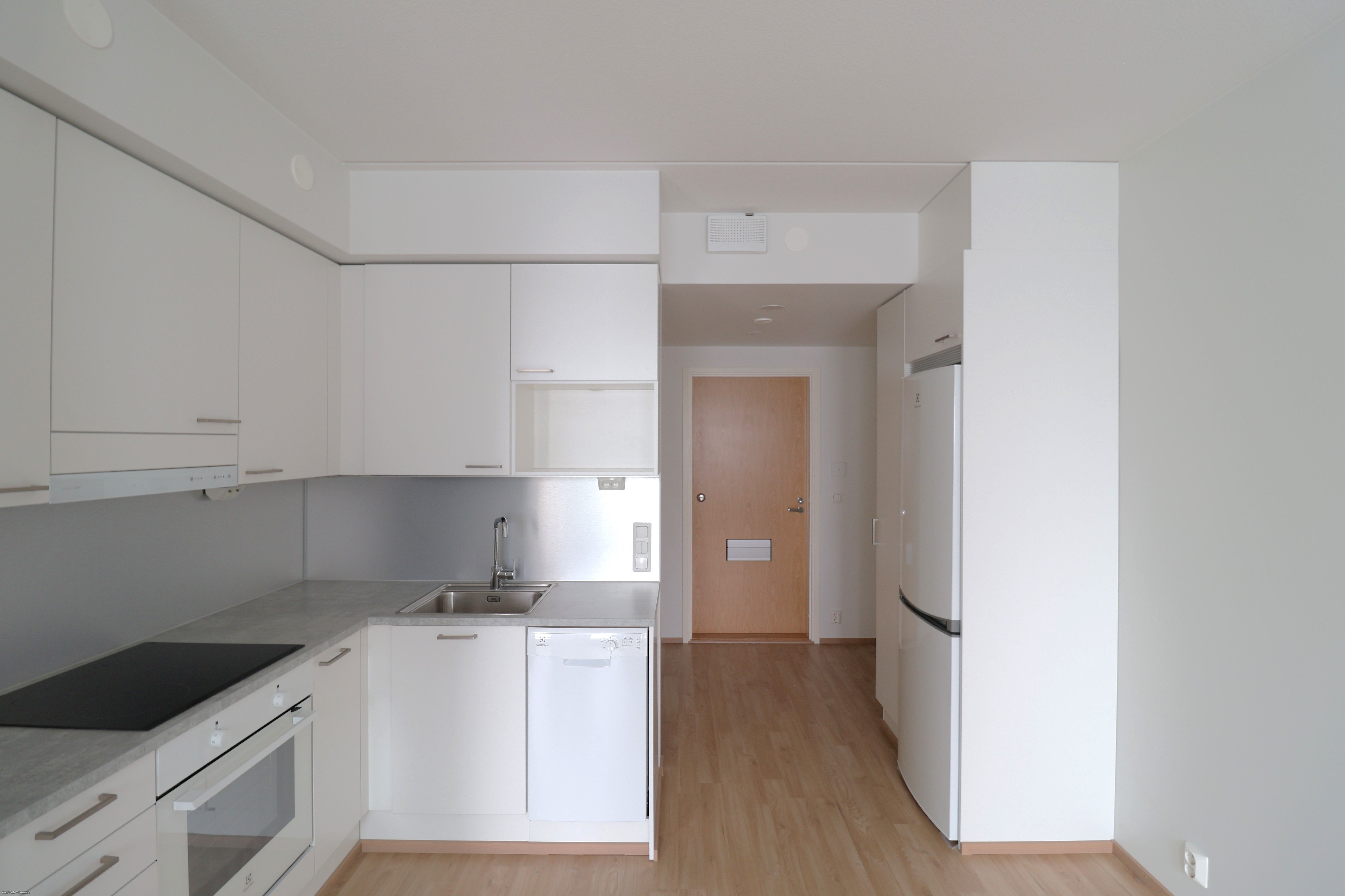 Tässä kaksiossa on kauniit pintamateriaalit ja erittäin hyvä pohjaratkaisu. Lattiassa on kaunis parketti ja seinät vaalealla maalipinnalla. Asunnon keittiöstä löytyy mm. astianpesukone, uuni/liesi yhdistelmä ja jää- pakastinkaappi yhdistelmä. Olohuoneesta käynti makuuhuoneeseen, josta löytyy tilava vaatehuone. Asuinmukavuutta tuo lasitettu parveke.