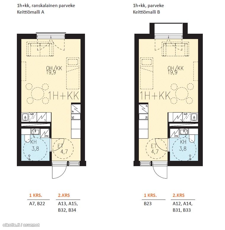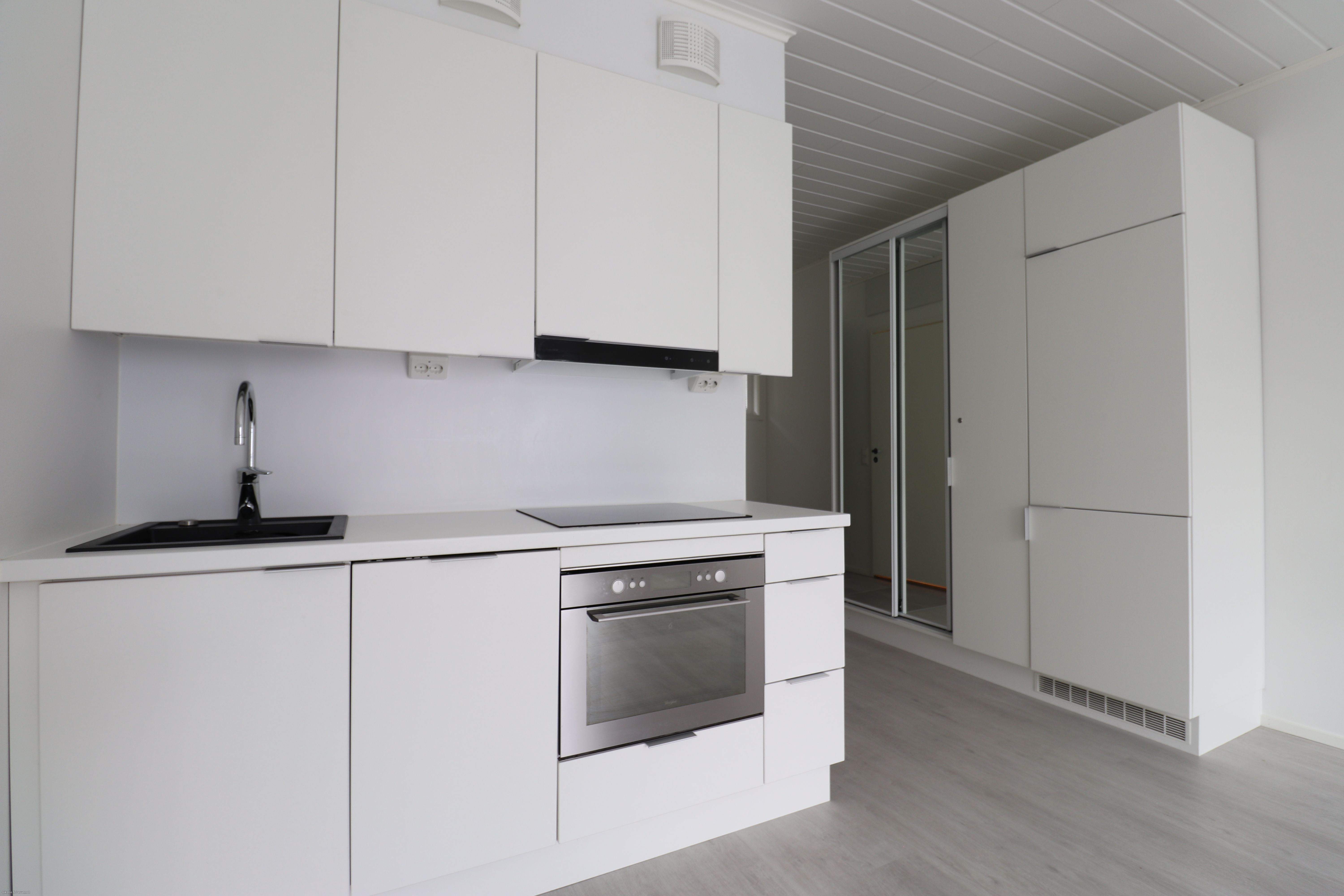 Yksiö on varusteltu laadukkailla materiaaleilla. Tyylikkään avokeittiön varusteluun kuuluu mm. induktioliesi, jääkaappi/pakastin ja astianpesukone. Kaakeloidussa kylpyhuoneessa on paikka ja liitännät pyykinpesukoneelle. Asunnossa on huoneistokohtainen koneellinen ilmanvaihto.