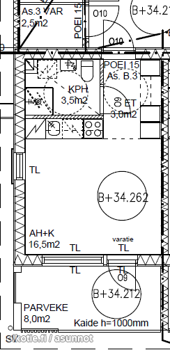 | Huoneiston kokoonpano | 1h,kt,kph |