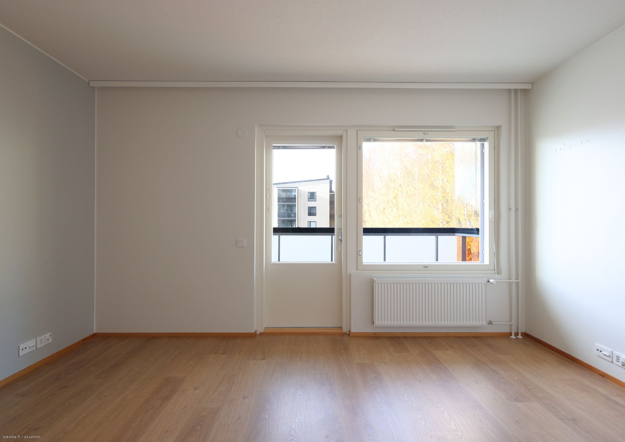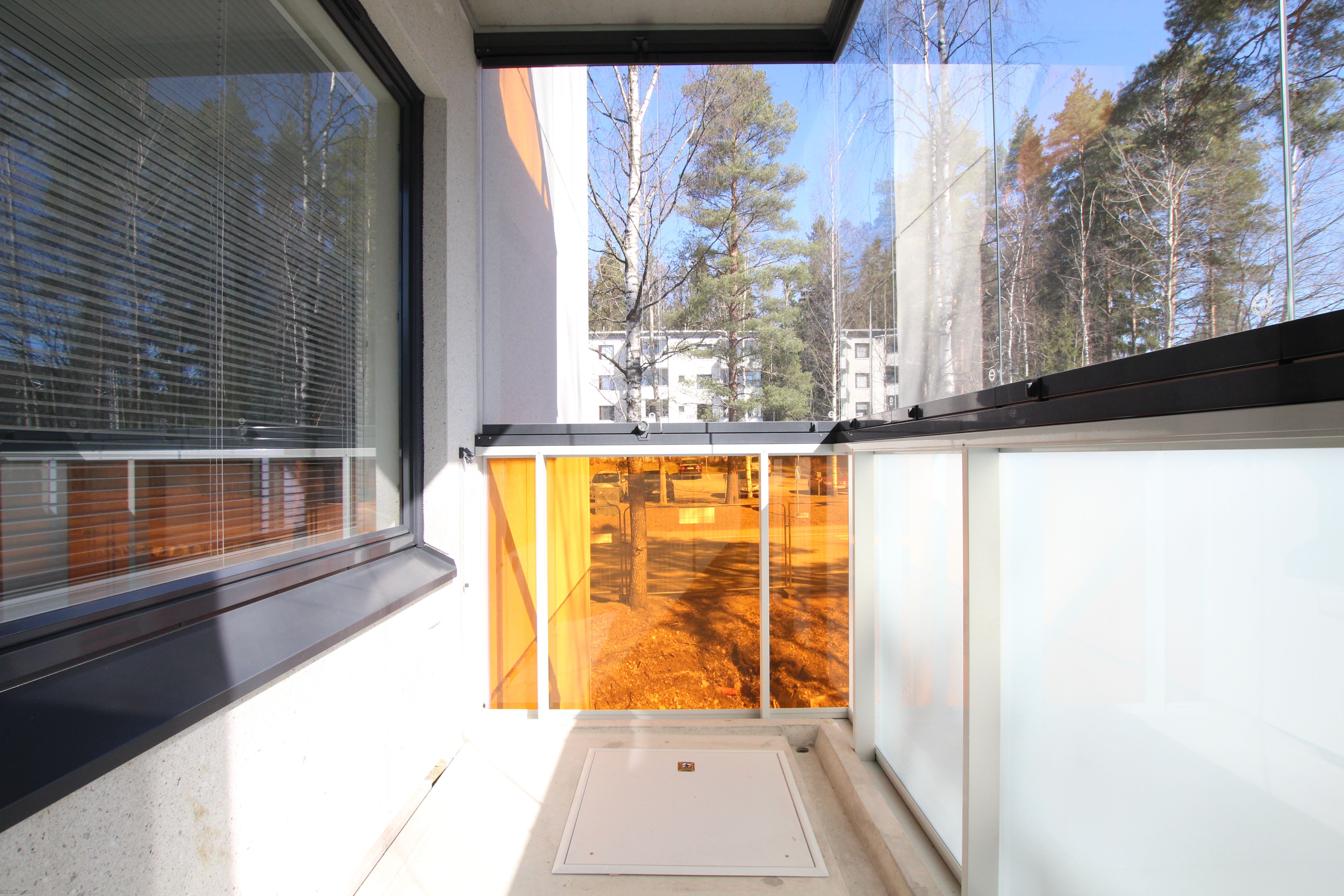 Vuokrattavissa 1.3. alkaen toisen kerroksen tilava ja valoisa kulmahuoneisto kaksio isolla lasitetulla parvekkeella!