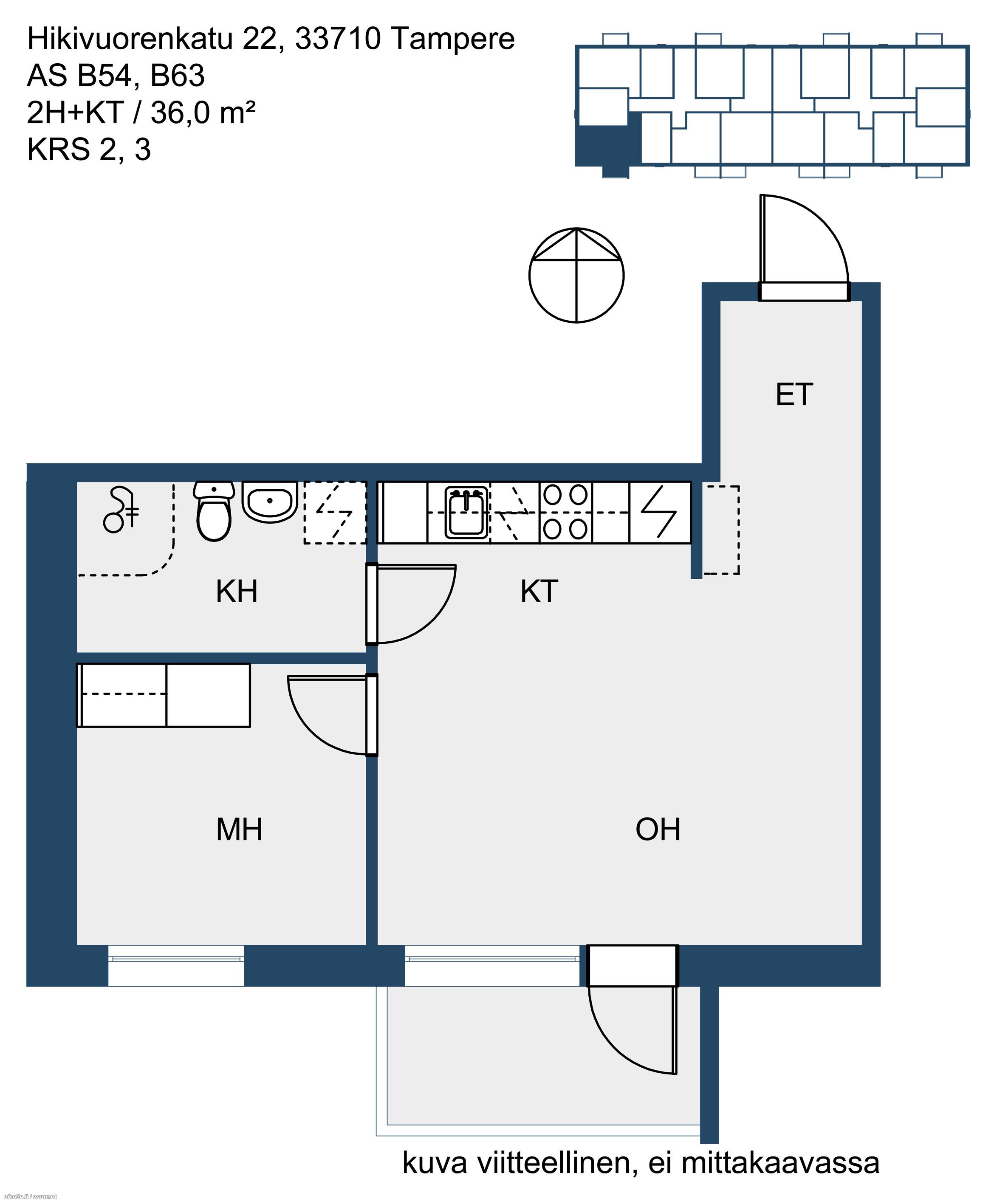 | Huoneiston kokoonpano | 2h+kt+las.parveke |