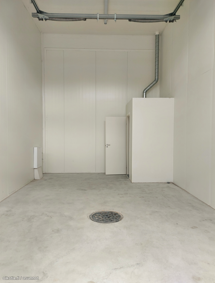 Tallin lattia pinta-ala 31,5m2. Sisäkorkeus 5 metriä ja nosto-ovi 3m x 4m.