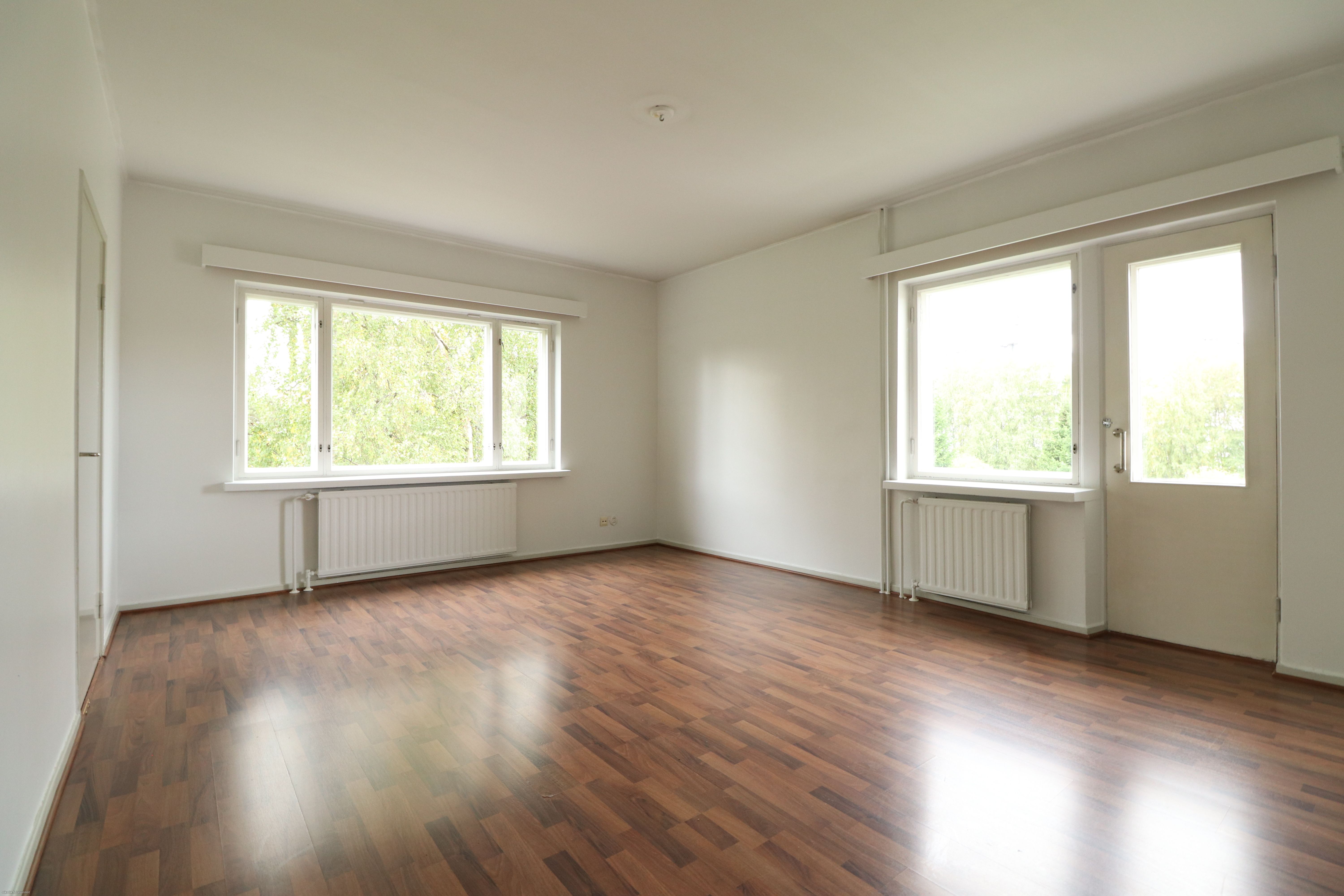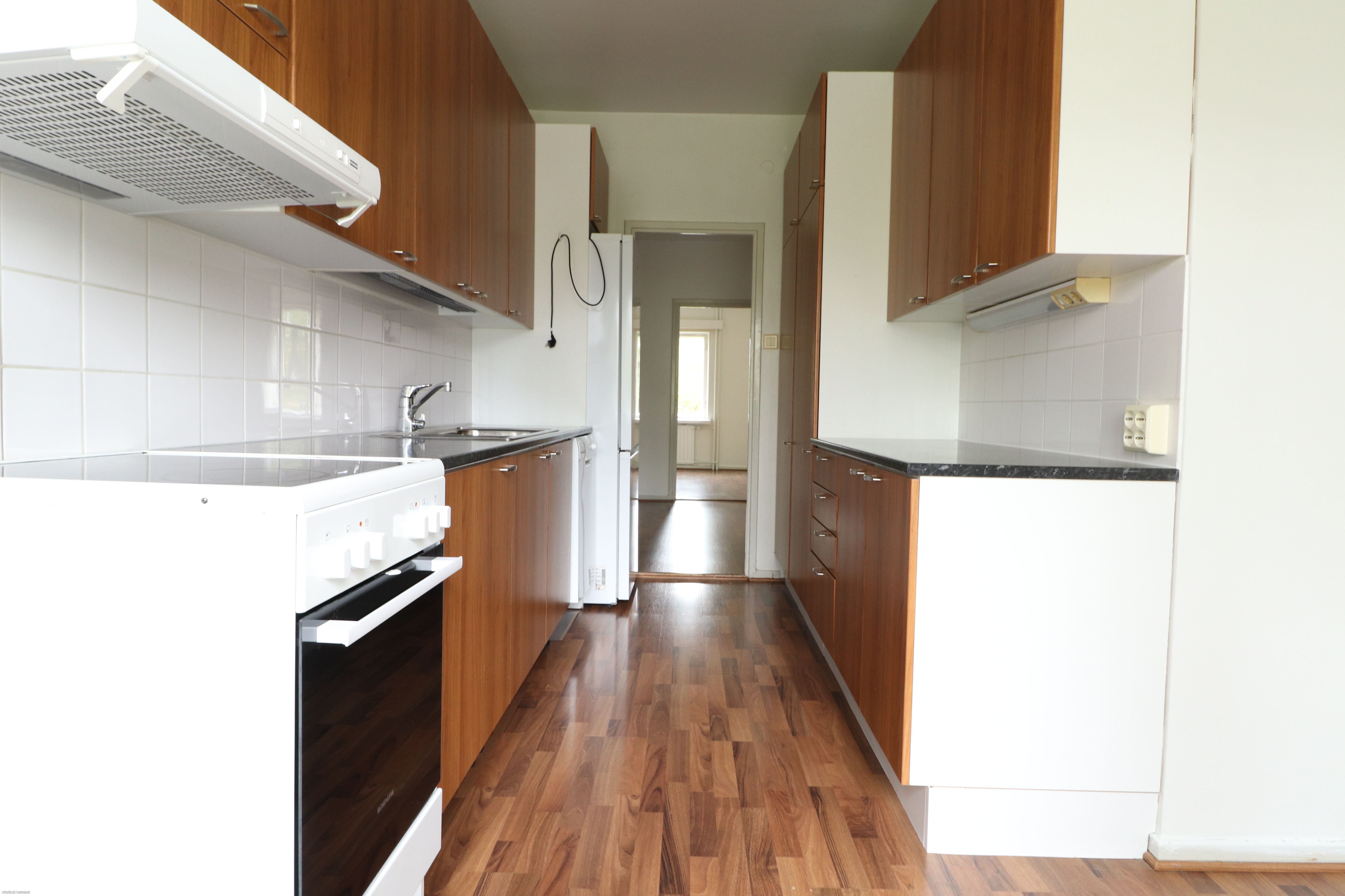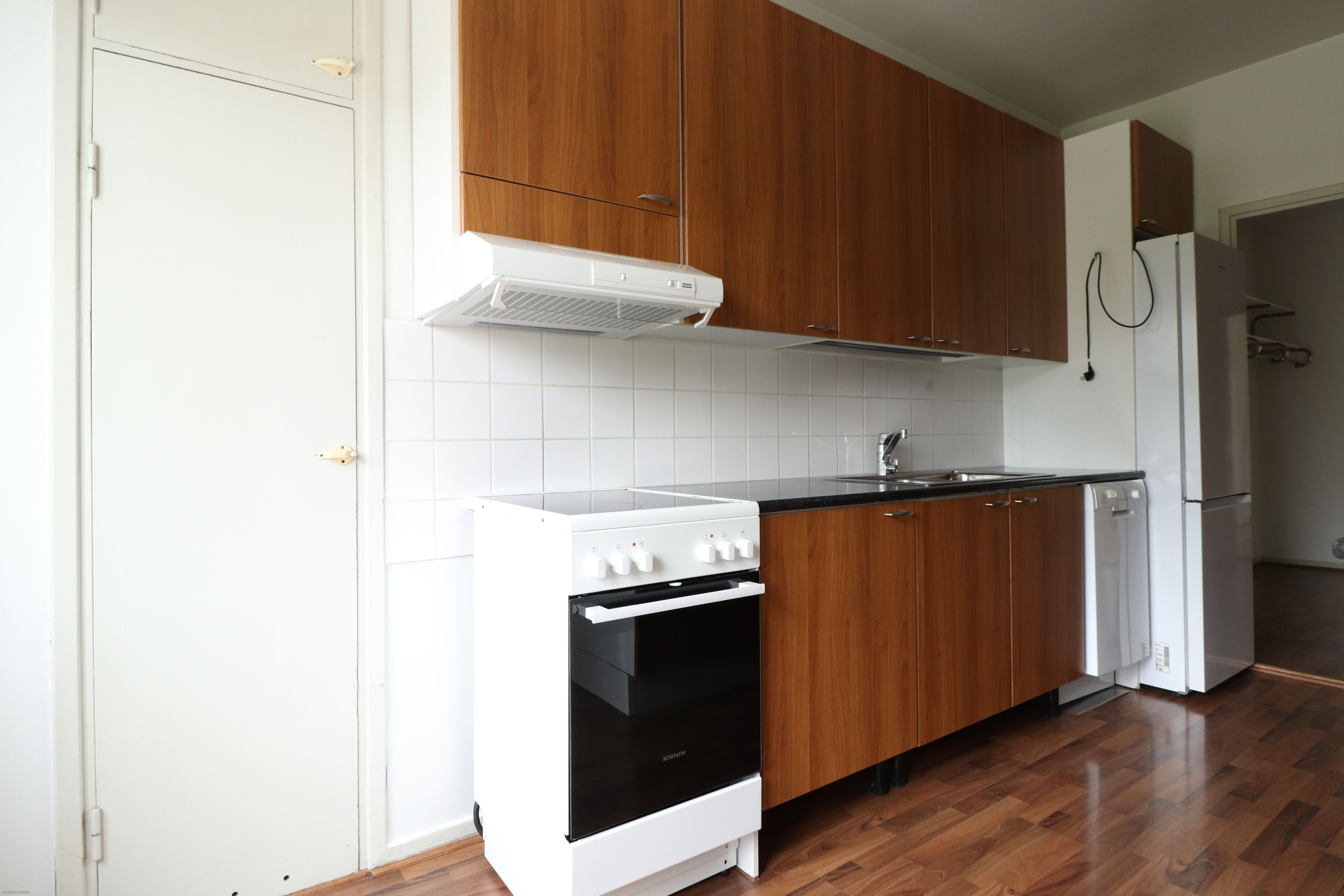 Tässä kodissa on tilavat ja valoisat huoneet. Lattiat siistikuntoista laminaattia ja seinät valkoiseksi maalatut, muutamalla harmaalla tehosteseinällä. Kylpyhuone on kauttaaltaan kaakeloitu ja sinne mahtuu oma pyykinpesukone. Keittiössä valmiina jääkaappipakastin, uuni/liesi sekä astianpesukone. Oma parveke lisää asumisen mukavuutta.
