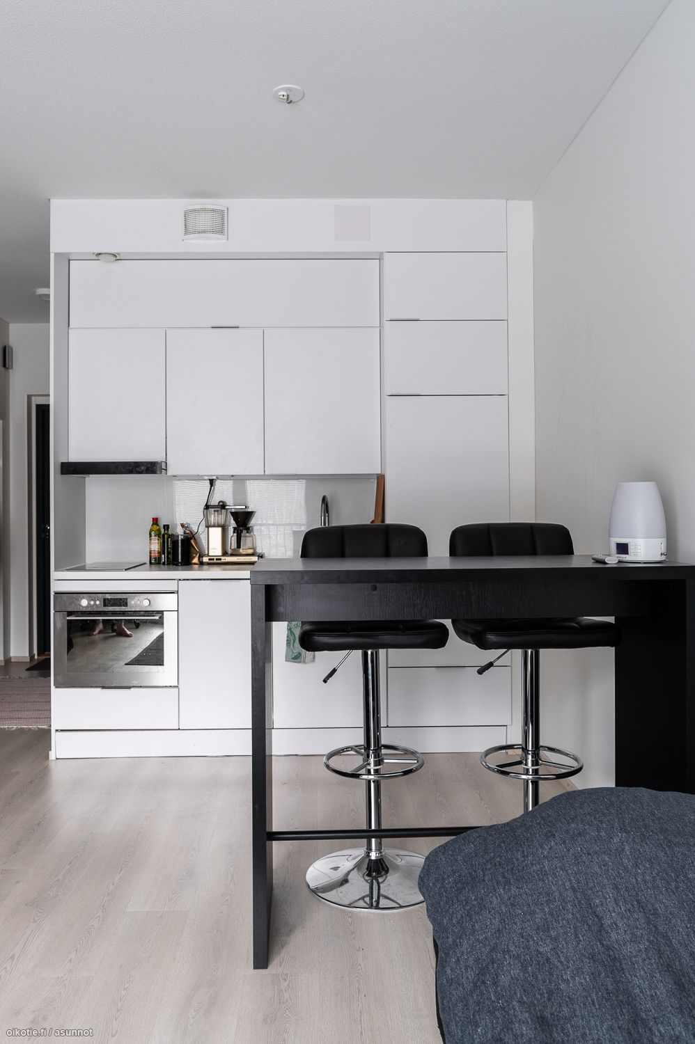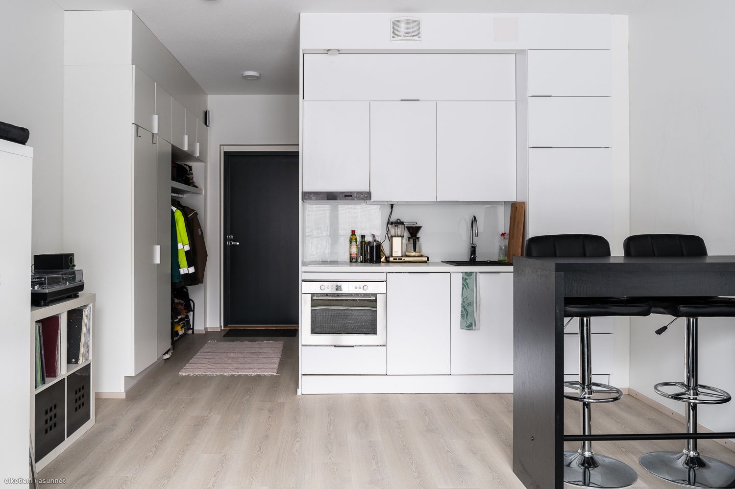 Vaaleasävyisen huoneiston lattiat ovat laminaattia. Keittiössä on yhdistelmäuuni, jossa mikroaalto ja kiertoilma toiminto, 2-levyinen keraaminen liesitaso, liesikupu, jääkaappi pakastelokerolla ja astianpesukone 45cm. Asunnon kiintokalusteet ja pintamateriaalit ovat tyylikkäitä, kestäviä ja helposti puhdistettavia. Laatoitetussa pesuhuoneessa on kompaktisti kaikki tarvittava, mm. tilavaraus omalle edestä täytettävälle pyykinpesukoneelle. Sauna- ja oleskelutilat löytyvät 5.-kerroksesta, josta voi varata oman viikkovuoron hintaan 15€/kk. Vesimaksu on mittarin mukaan, ennakko 15€/hlö/kk.