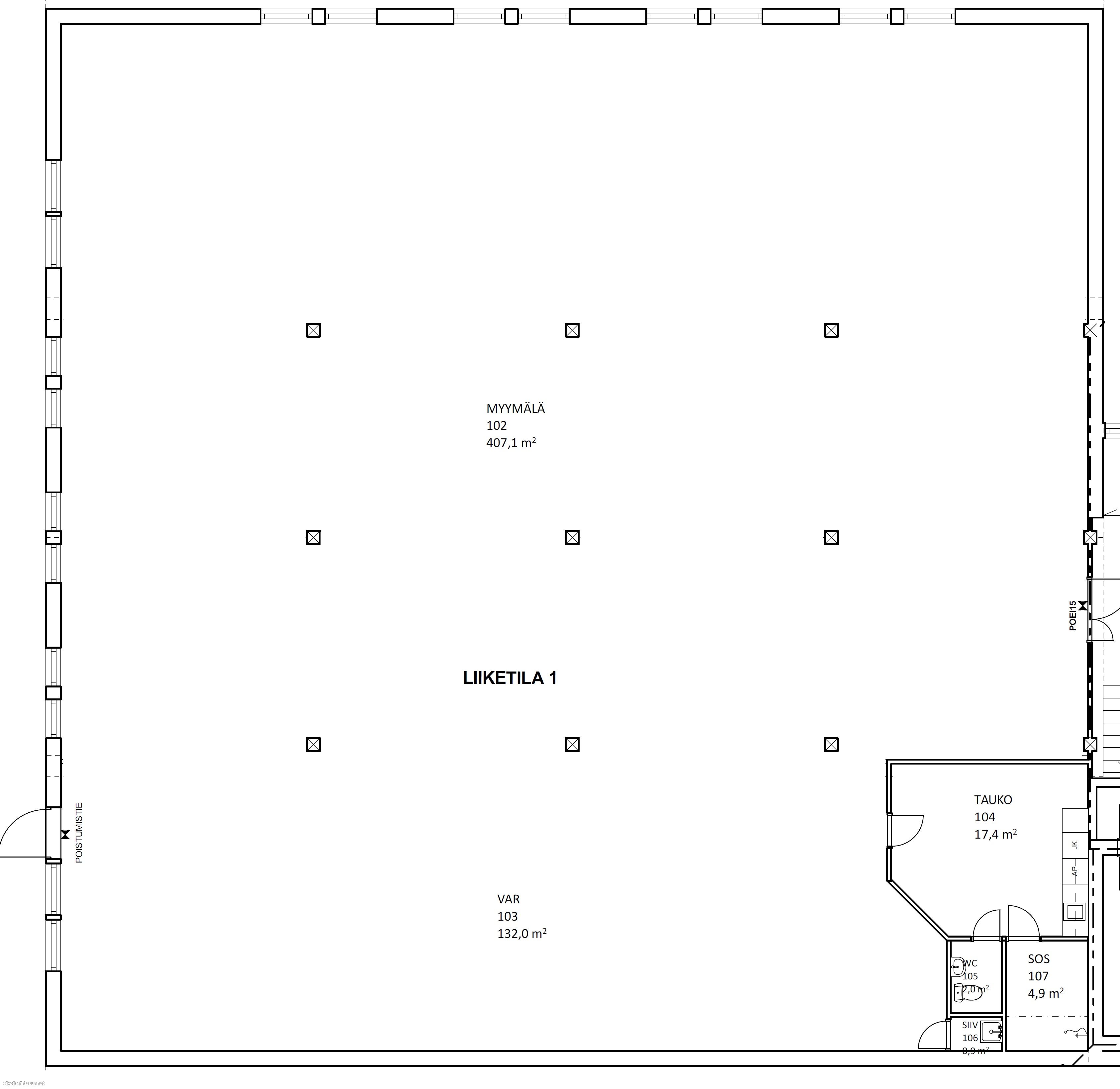 | Huoneiston kokoonpano | Remontoitu toimisto/liiketila |