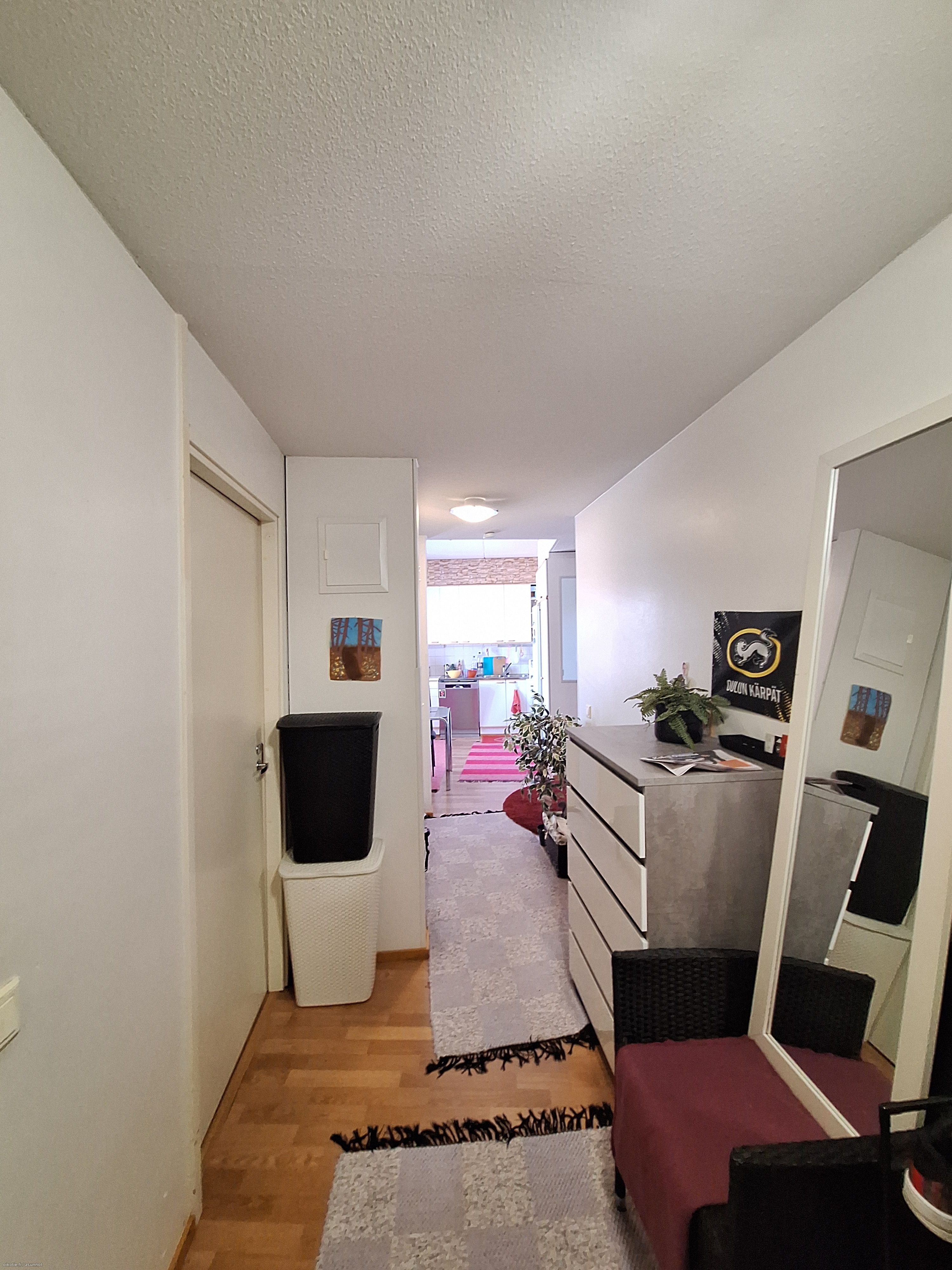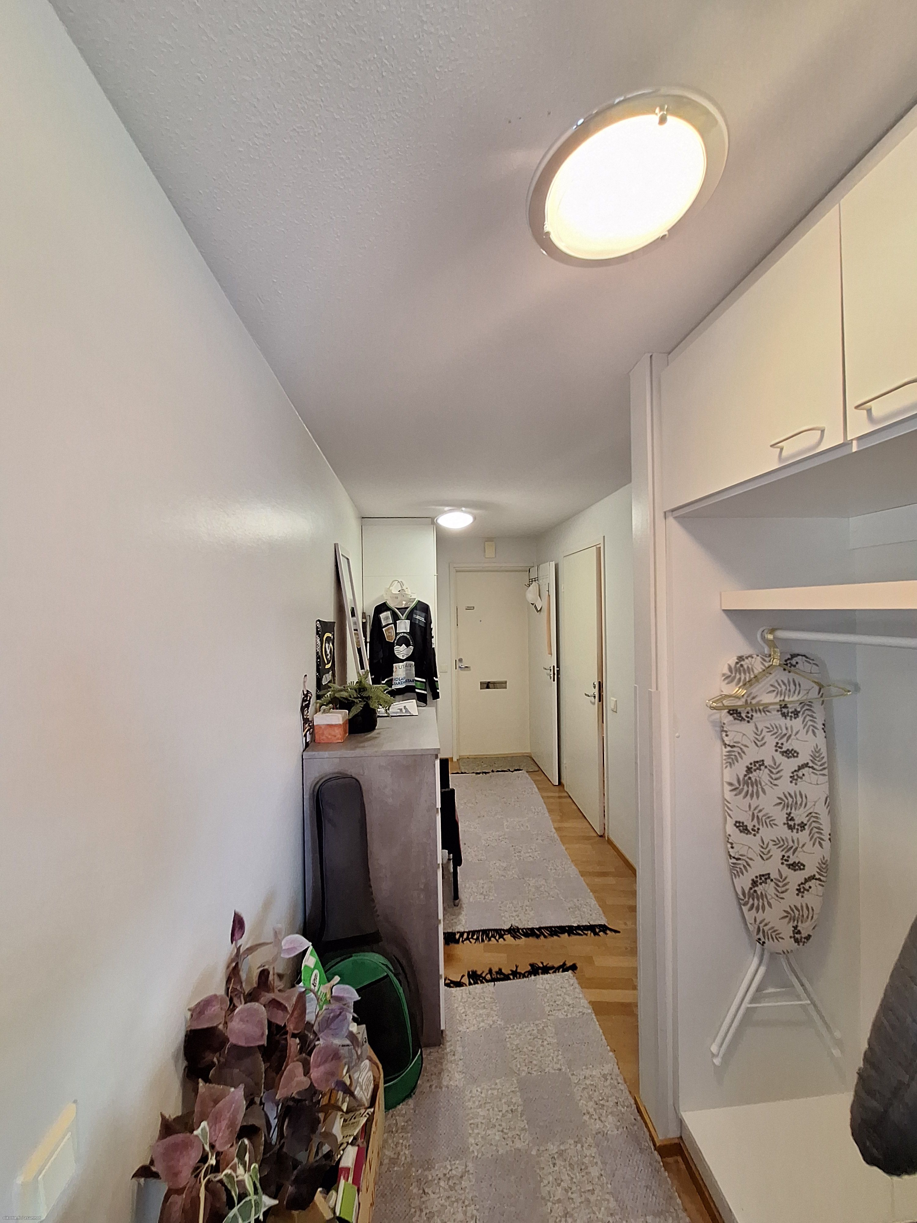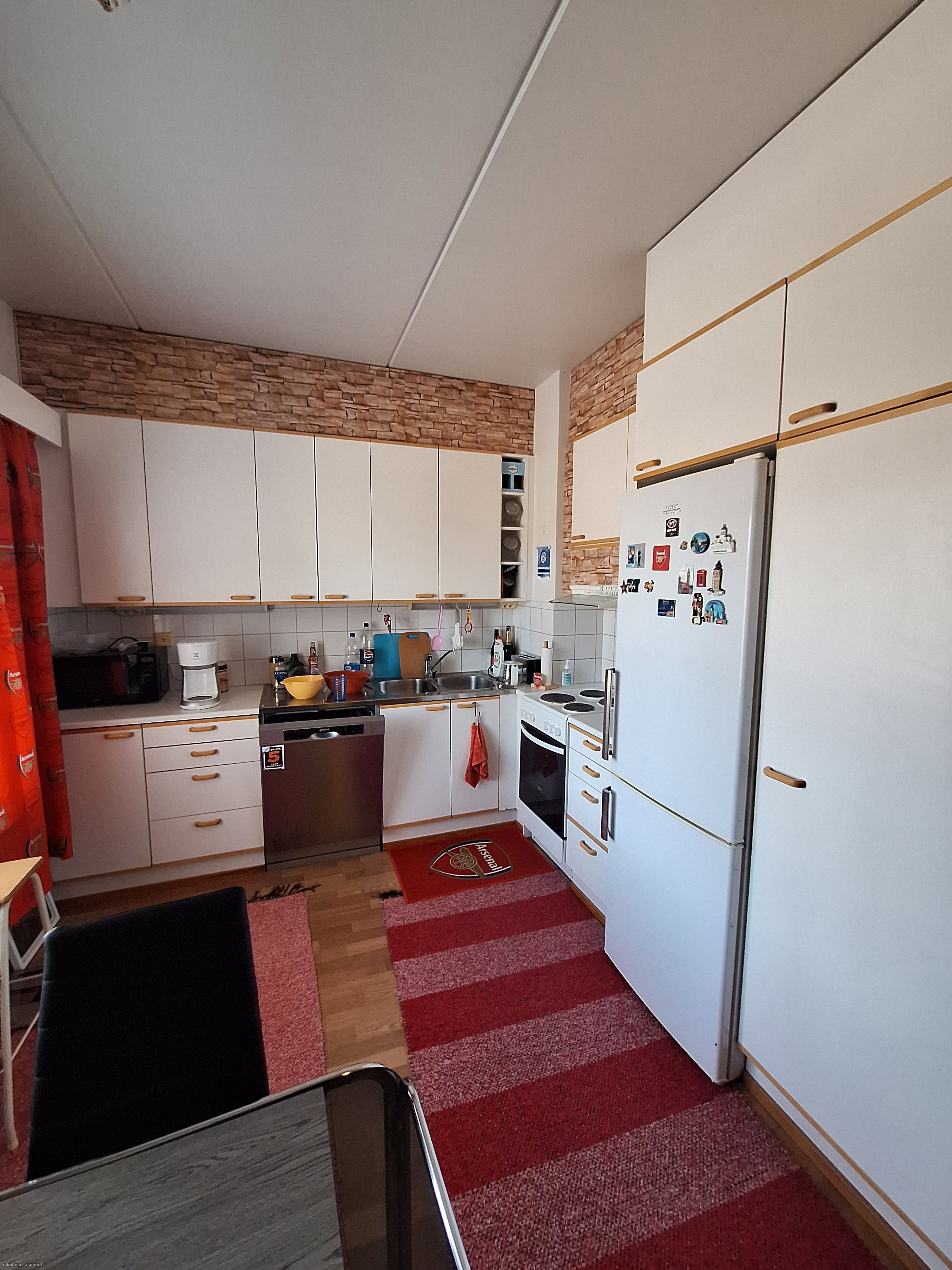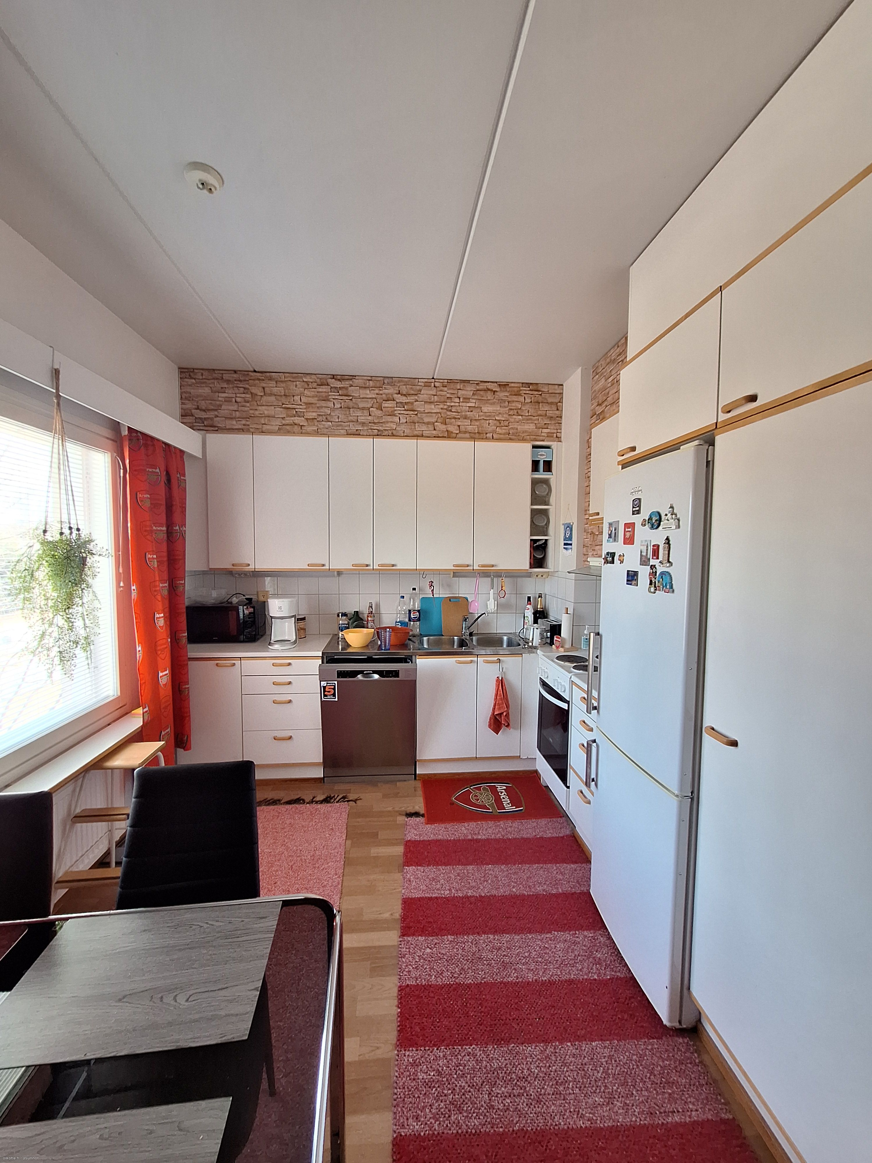 Asunnossa siistikuntoinen lattia ja seinät vaaleiksi maalatut. Siistissä asunnossa on runsaasti kaappitilaa ja avarat näkymät pientalo-alueelle, parvekkeelta sisäpihalle. Keittiössä tavanomainen varustelu, löytyy tarvittaessa paikka omalle astianpesukoneelle. Oma sauna ja parveke lisäävät asumismukavuutta. Isossa kylpyhuoneessa paikka omalle pyykinpesukoneelle. Taloyhtiössä on pyörävarasto ja pesutupa. Vesimaksut kulutuksen mukaan, ennakko 20,00 €/hlö/kk.