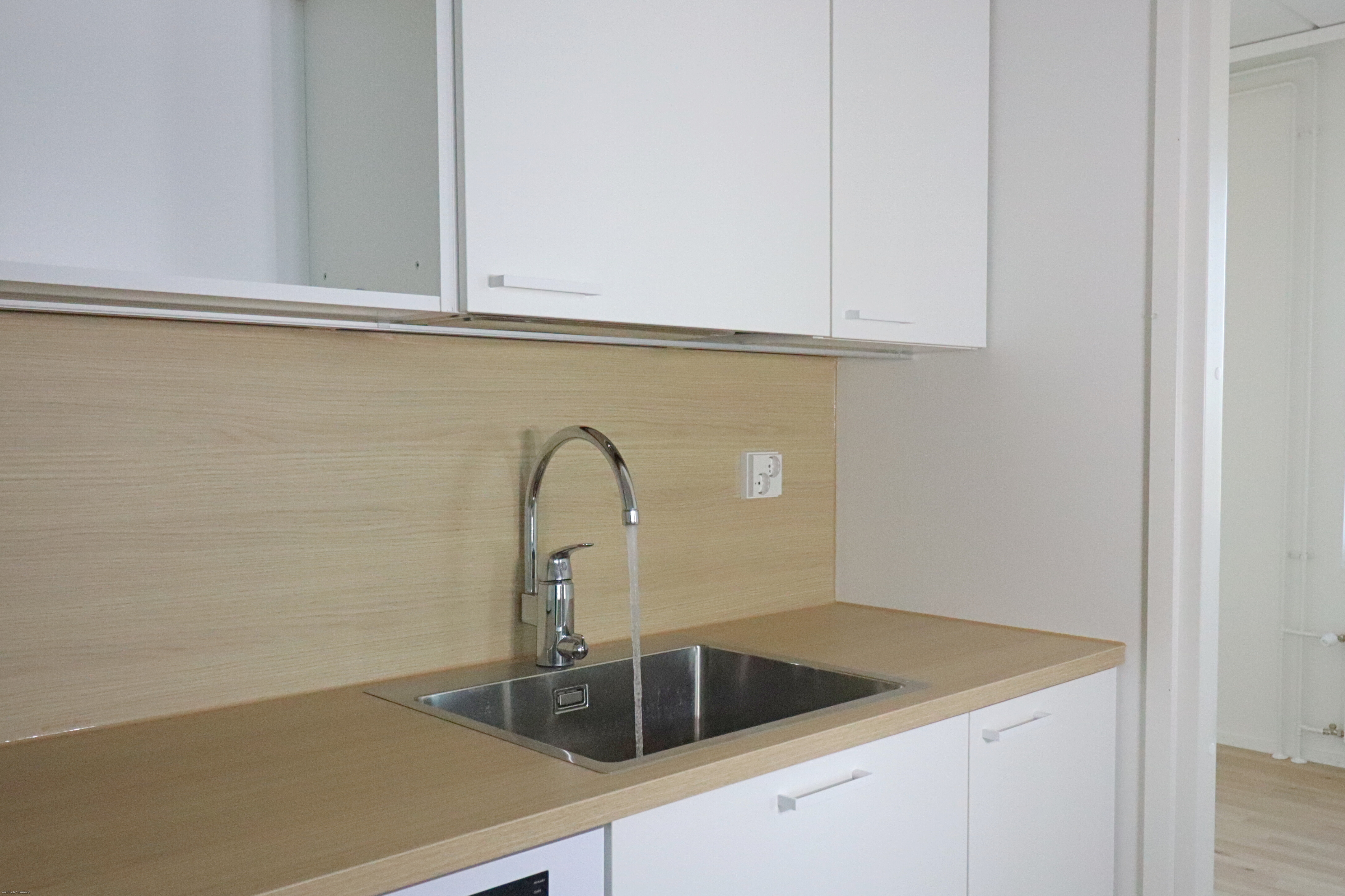 Tämän kulma-asunnon pohjaratkaisu on selkeä ja neliöt on hyödynnetty tehokkaasti, kodikkuudesta tinkimättä. Asunto on todella valoisa, sillä ikkunoita on kahteen eri suuntaan. Laadukkaat varusteet sekä lasitettu parveke tuovat mukavuutta asumiseen. Keittiön varusteluun kuuluu jääkaappipakastin, uuni, liesitaso ja astianpesukone sekä kylpyhuoneessa liitännät pyykinpesukoneelle.