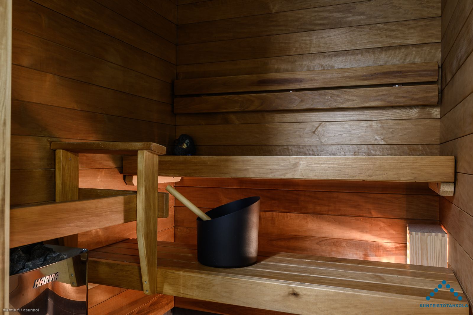 Oma sauna tuo luksusta arkeen ja mahdollistaa rentoutumisen kotona. Parveke laajentaa asuintilaa ulkoilmaan, tarjoten mukavan paikan nauttia loistavista näkymistä.