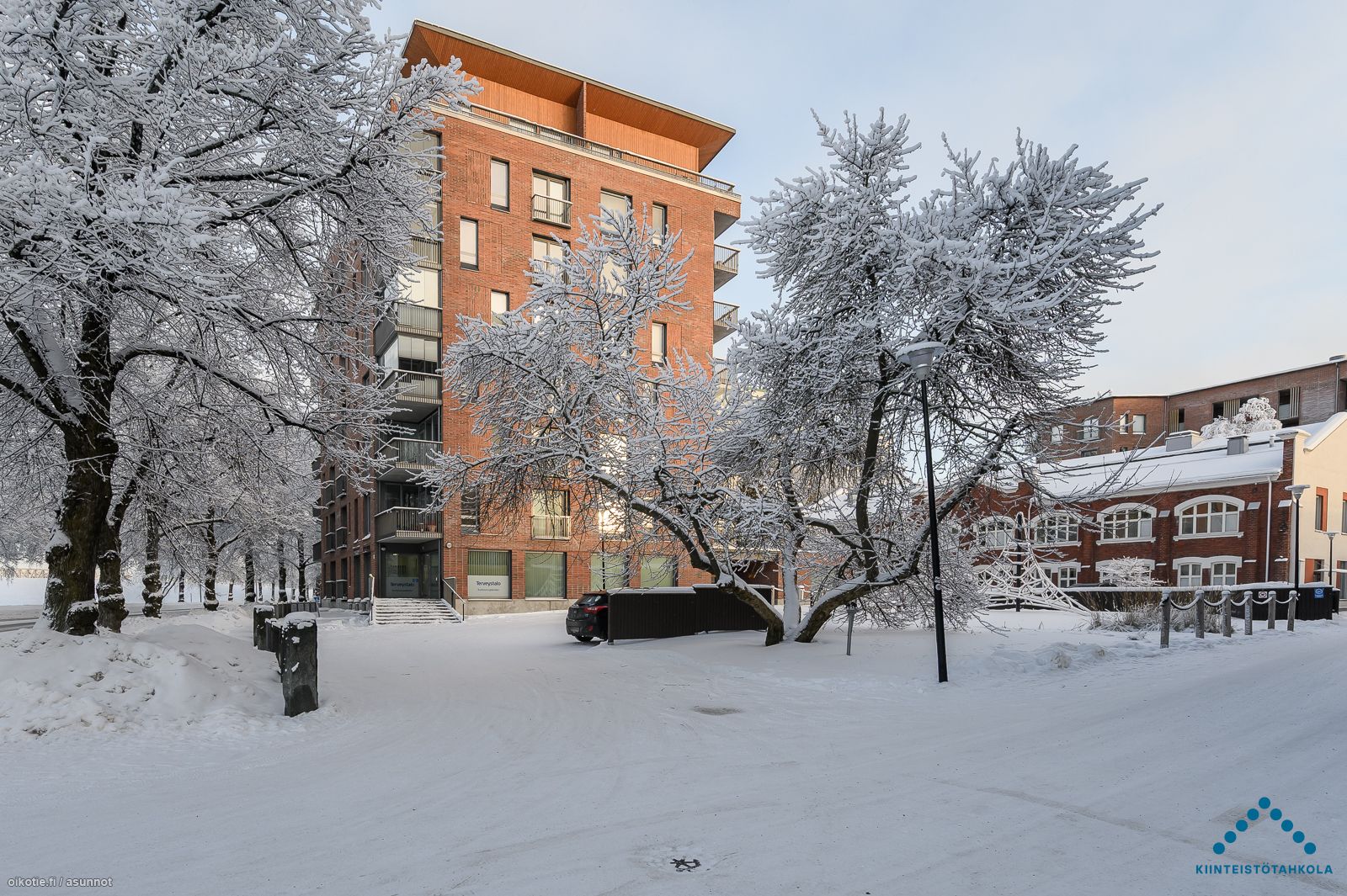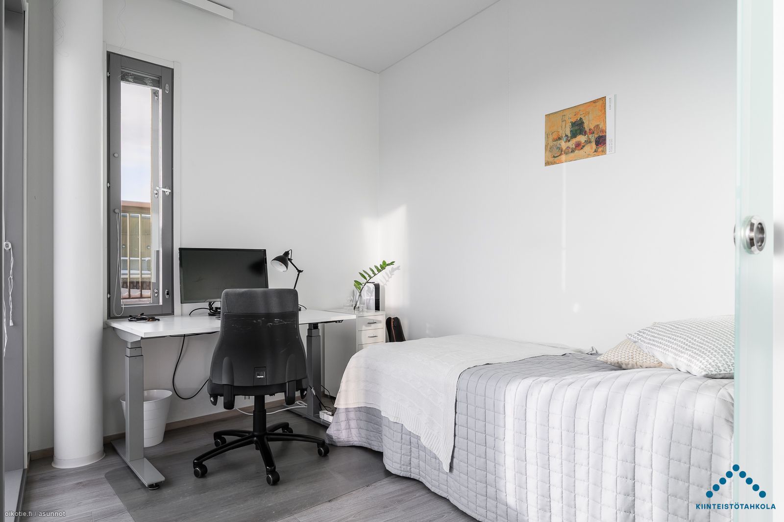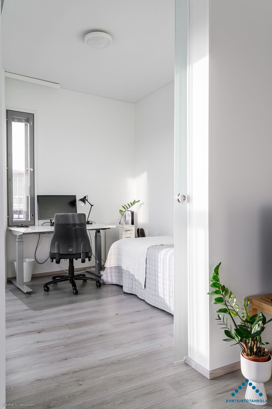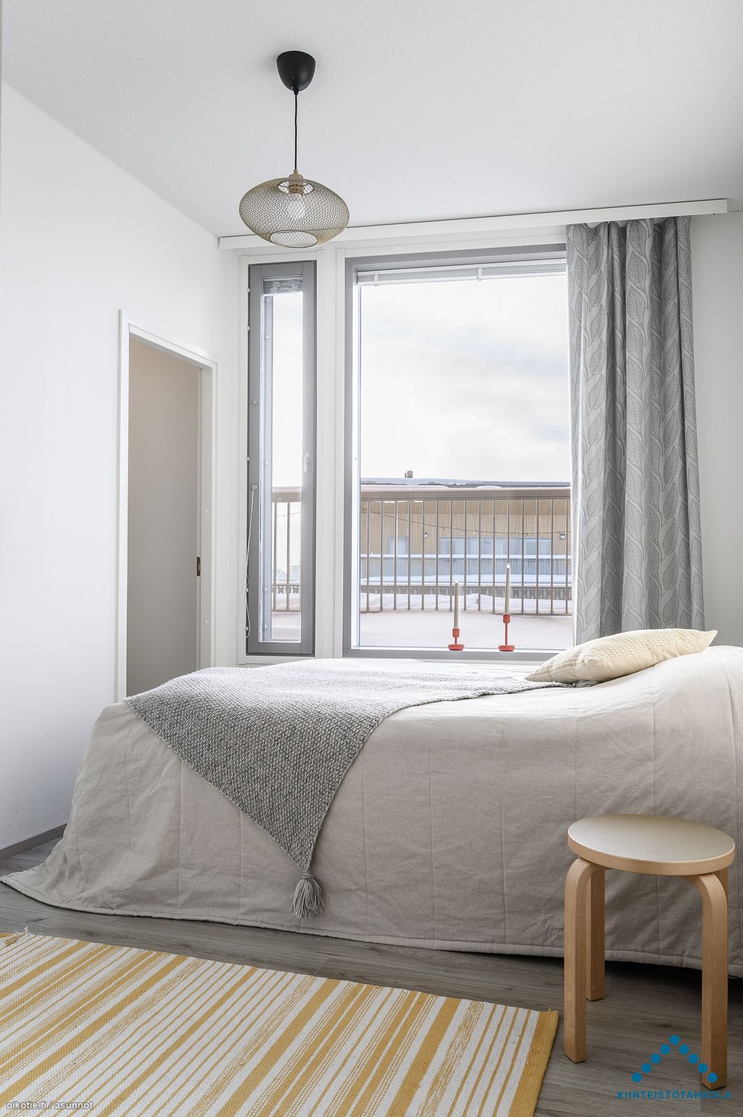 Asunnon 57 neliömetriä sisältää kaksi makuuhuonetta, tupakeittiön, kylpyhuoneen, vaatehuoneen, saunan sekä kattoterassin/parvekkeen. Ylimmän kerroksen sijainti takaa mahtavat näkymät kaupungin ylle. Asunnon lattiat laminaattia ja seinät vaalein maalipinnoin. Asunto on hyvässä kunnossa ja vapautuu uusille asukkaille 1.4.2026 alkaen.