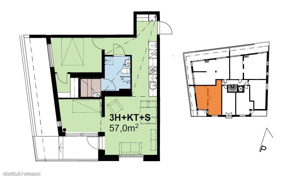 | Huoneiston kokoonpano | 3h,kt,kh,sa,vh,parv |