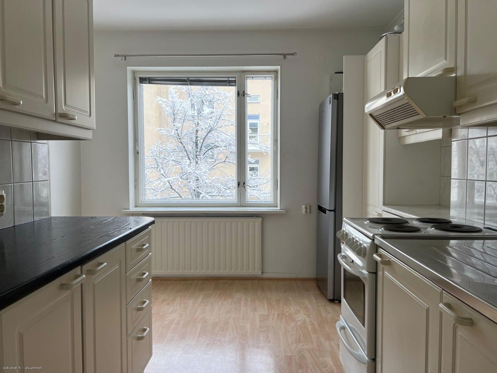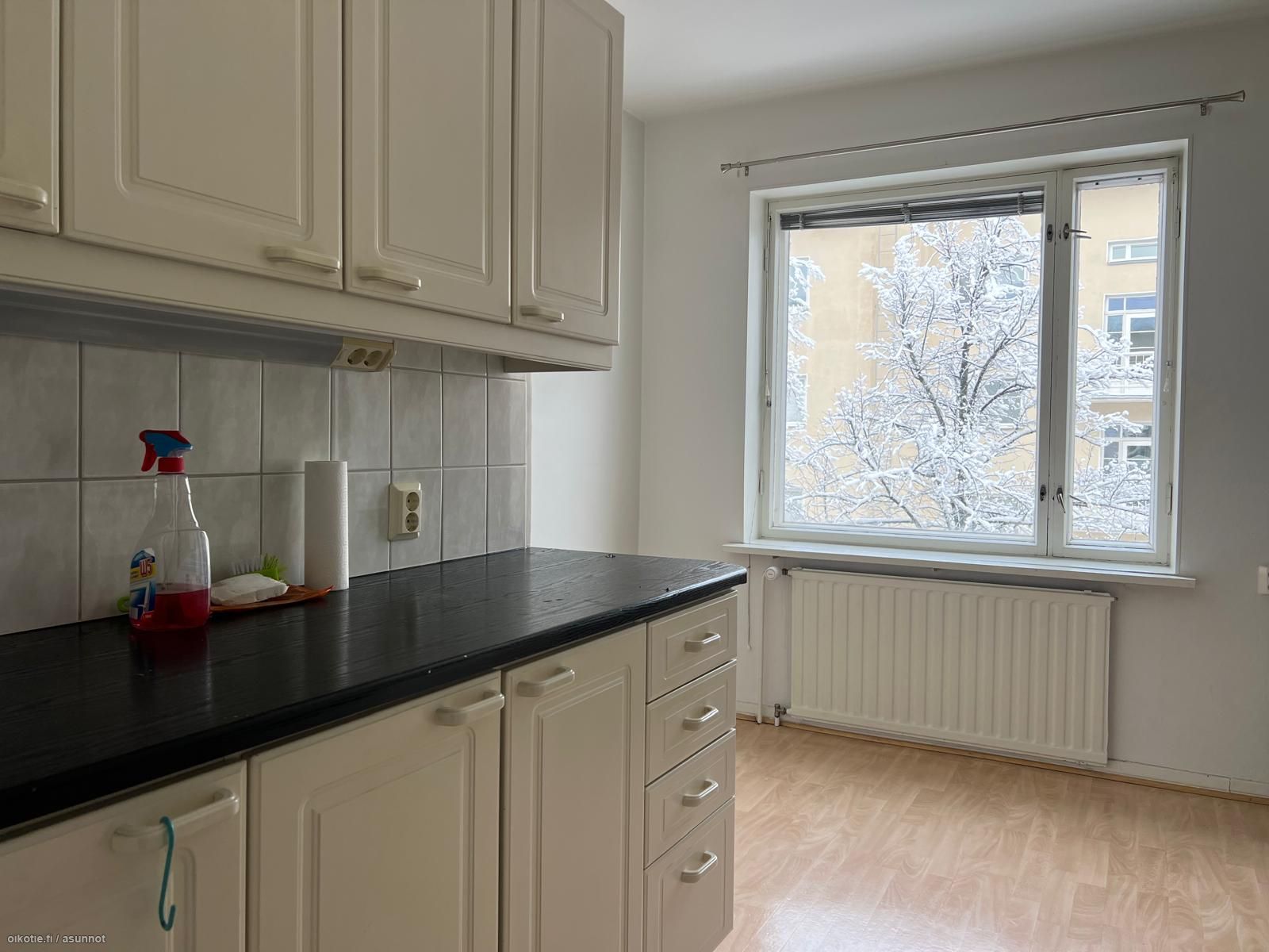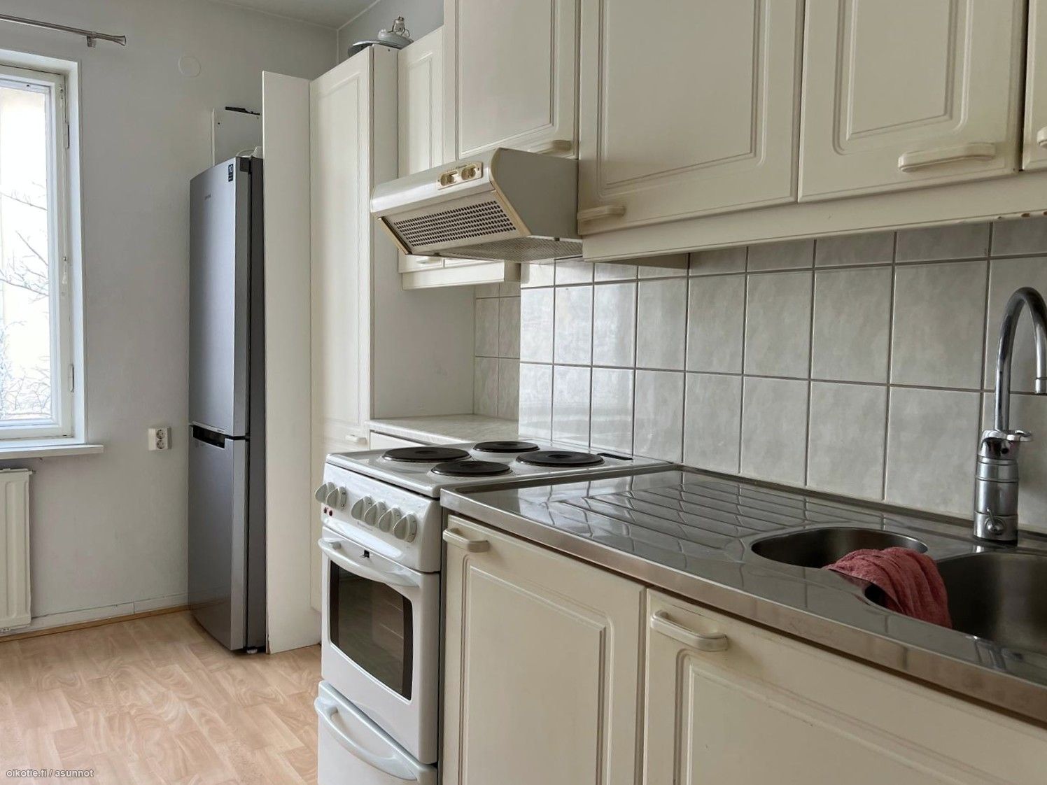 Tämä siisti kaksio soveltuu erinomaisesti mukavaan kaupunkiasumiseen. Asunnon lattiat ovat muovimattoa ja seinät maalatut. Keittiöstä löytyy runsaasti kaappitilaa sekä varusteluna jääkaappipakastin ja uuni/liesi. Erillinen vaatehuone tuo lisää käytännöllistä säilytystilaa. Kylpyhuone on siisti, remontoitu ja kaakeloitu, ja siellä on paikka omalle pienelle pyykinpesukoneelle.