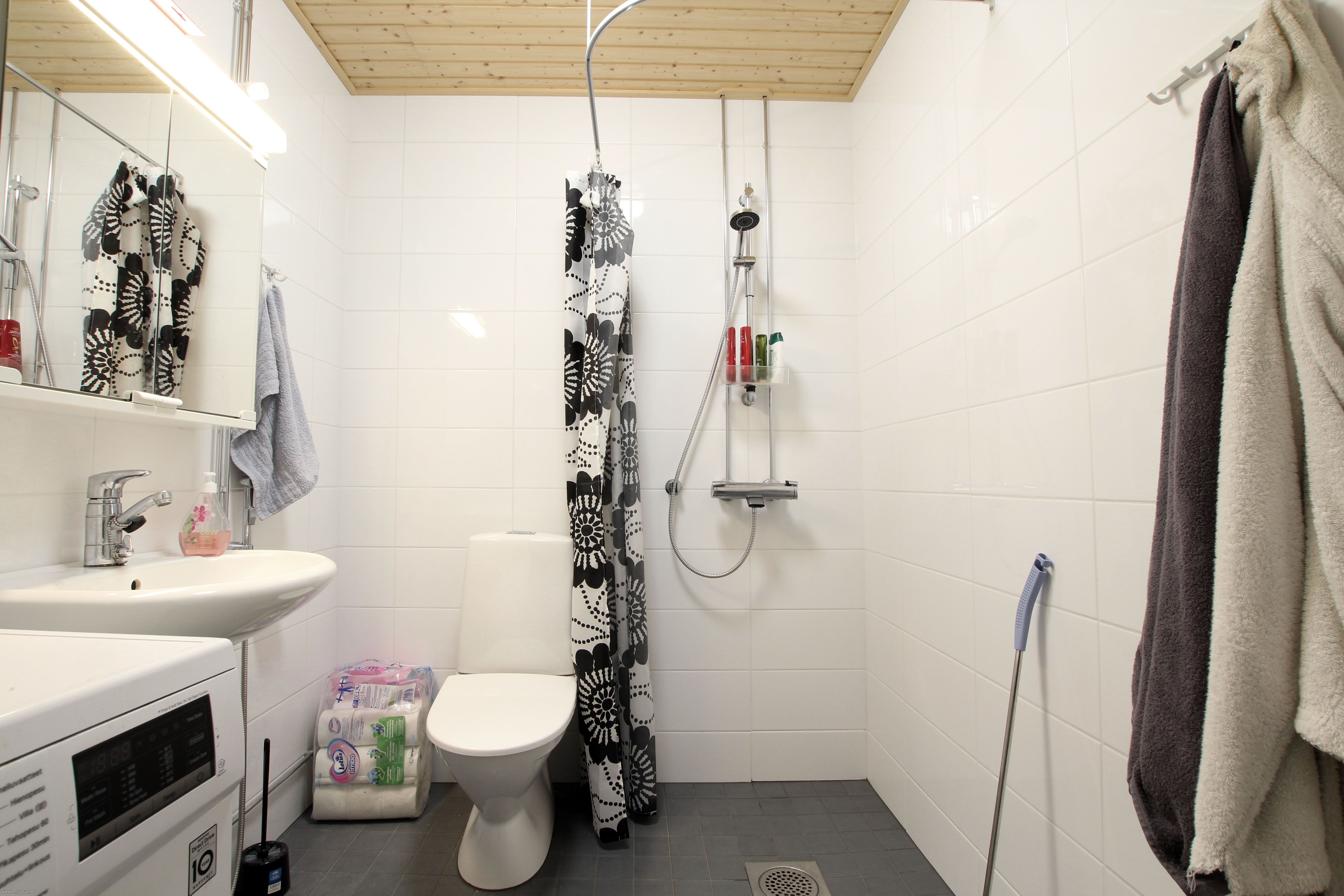 Asunnon avara pohjaratkaisu ja suuret ikkunat täyttävät tilan luonnonvalolla. Lattialämmitys pitää kodin mukavan lämpimänä ympäri vuoden ja helpottaa sisustamista. Käytännöllisyyttä lisäävät oma varastotila ja keittiön modernit varusteet, kuten astianpesukone, yhdistetty uuni ja liesitaso sekä jääkaappi-pakastinyhdistelmä. Tilava kylpyhuone on varustettu lattialämmityksellä ja paikkavarauksella pyykinpesukoneelle.