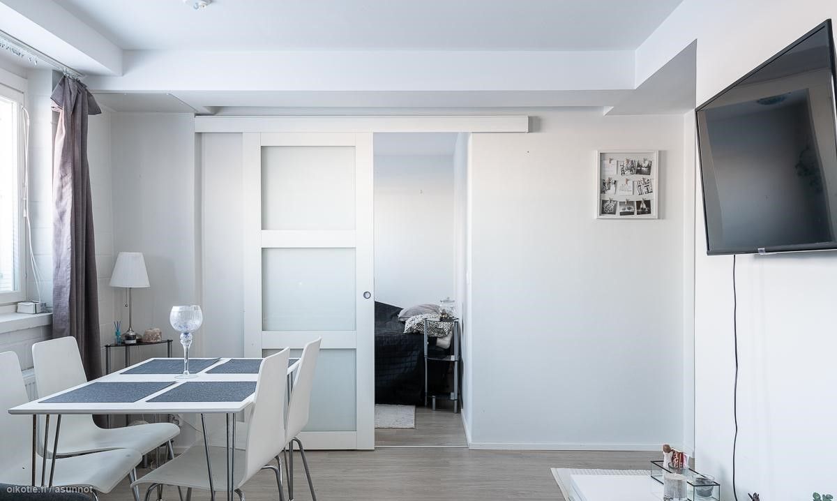 Asunnossa on todella laadukkaasti varusteltu ja avara tupakeittiö, joka yhdistyy valoisaan olohuoneeseen. Liukuoven takana on mukavasti tilaa sängylle, joten makuutilat saat näin omaan rauhaan. Kylpyhuoneessa liitäntä pyykinpesukonetta varten. Asunnossa on tilava eteinen. Taloyhtiöltä on mahdollisuus vuokrata autopaikka tai autopaikka lämmitystolpalla.