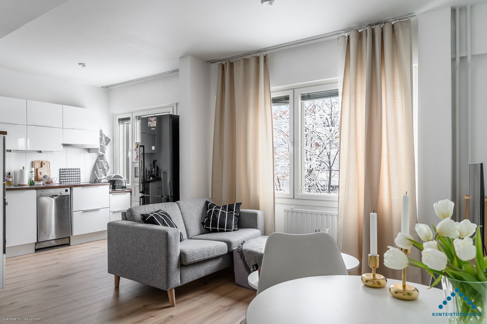 Asunnossa on poikkeuksellisen toimiva pohjaratkaisu, jonka vuoksi se tuntuukin neliöiltään tilavammalta. Asunnon lattia on vaihdettu uuteen vuosi sitten, samoin kuin seinät ovat saaneet silloin uuden maalipinnan. Keittiössä on valmiina jääkaappipakastin, uuni, liesitaso sekä mikro. Keittiöön on tehty myös paikka sekä liitännät pyykinpesukoneelle.