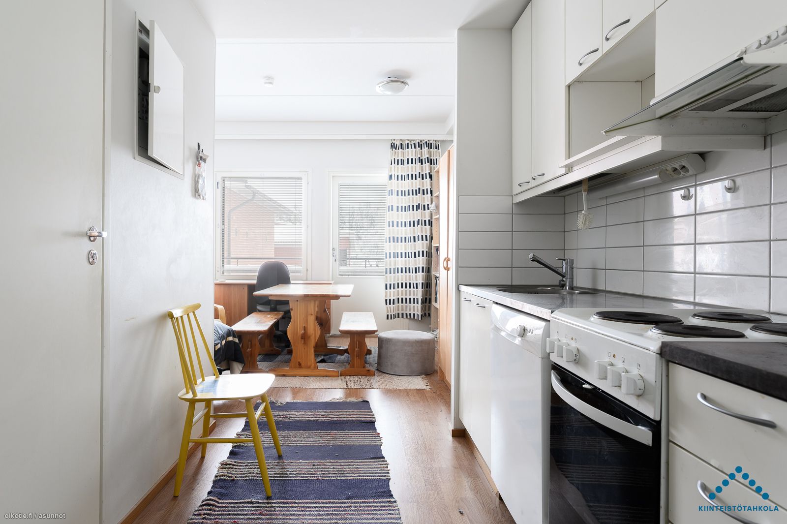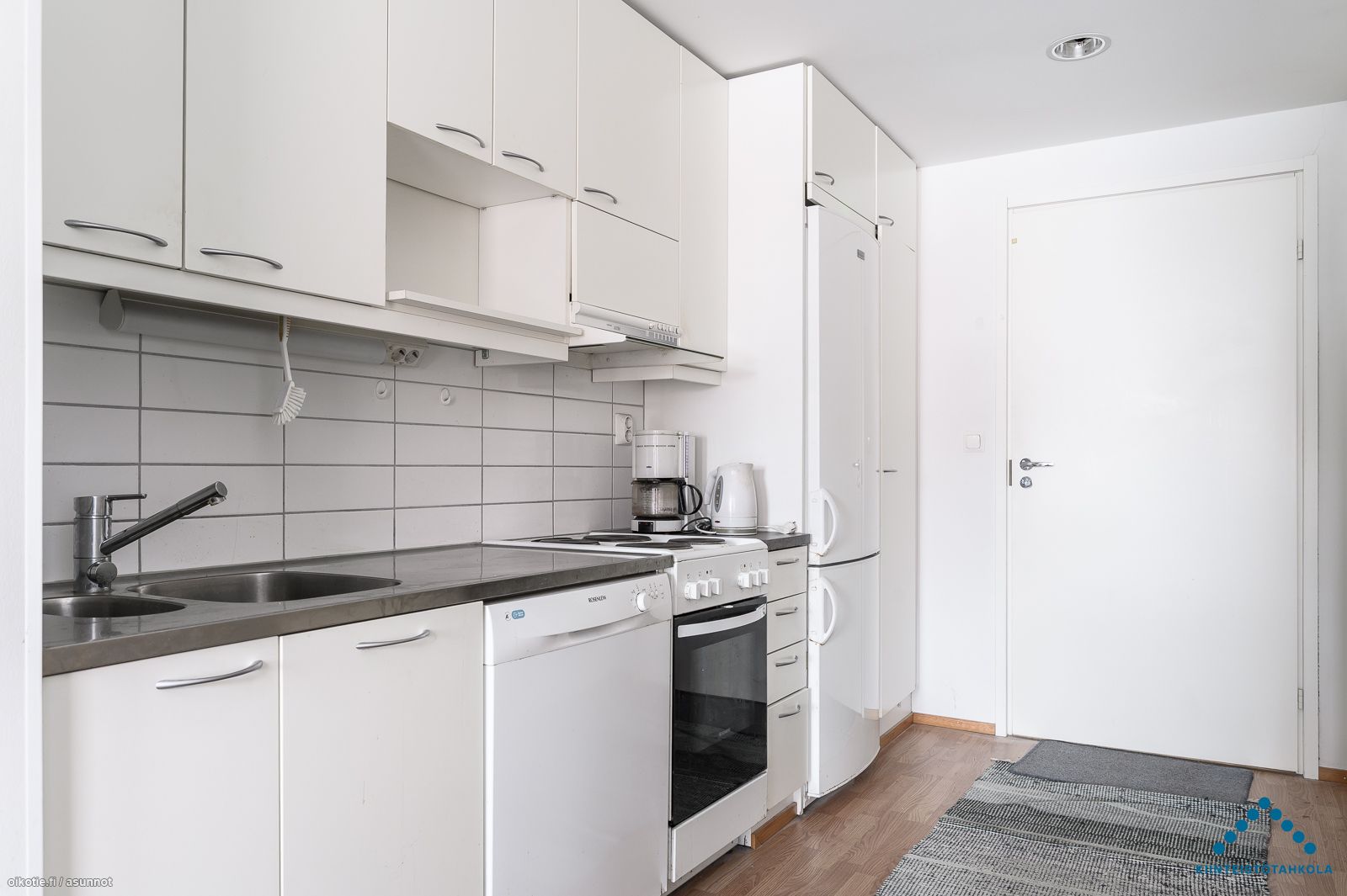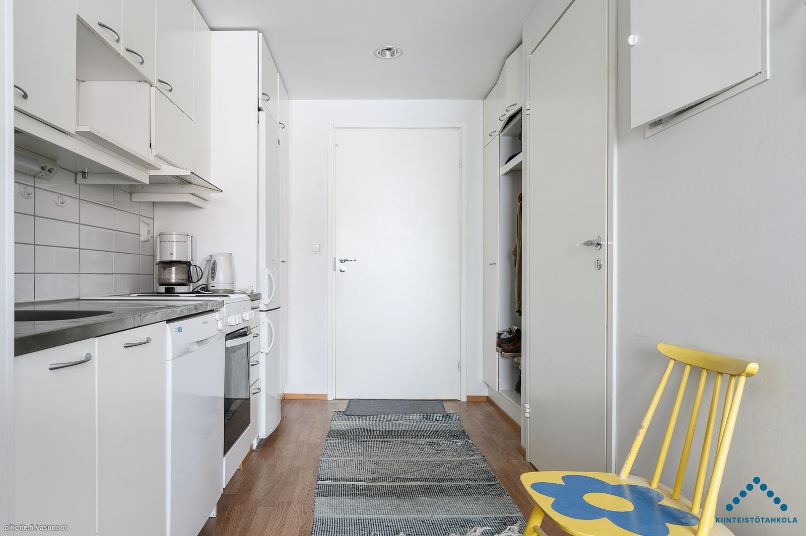 Huoneistossa on laadukkaat laminaattilattiat ja vaaleaksi maalatut seinät. Tilava kylpyhuone on kaakeloitu ja oma sauna ja tilava parveke tuovat lisämukavuutta asumiseen. Keittiössä varustuksena mm. astianpesukone, liesi ja jääkaappipakastin. Kylpyhuoneessa varaus pyykinpesukoneelle.