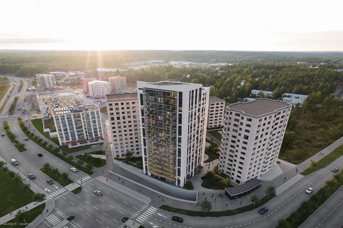 As Oy Espoon Eteläviitta valmistui viime vuonna yhdelle Finnoon keskeisimmistä paikoista. 17-kerroksinen Eteläviitta nousi koko korttelin huipuksi, naapuritalojen kattojen ylle. Aivan vieressä on Finnoon metroasema, josta pääset helposti ostoksille Isoon Omenaan ja Helsingin keskustaan. Hyvien kulkuyhteyksien ja palveluiden lisäksi luonto on lähellä ja ulkoilumahdollisuudet ovatkin huikeat.