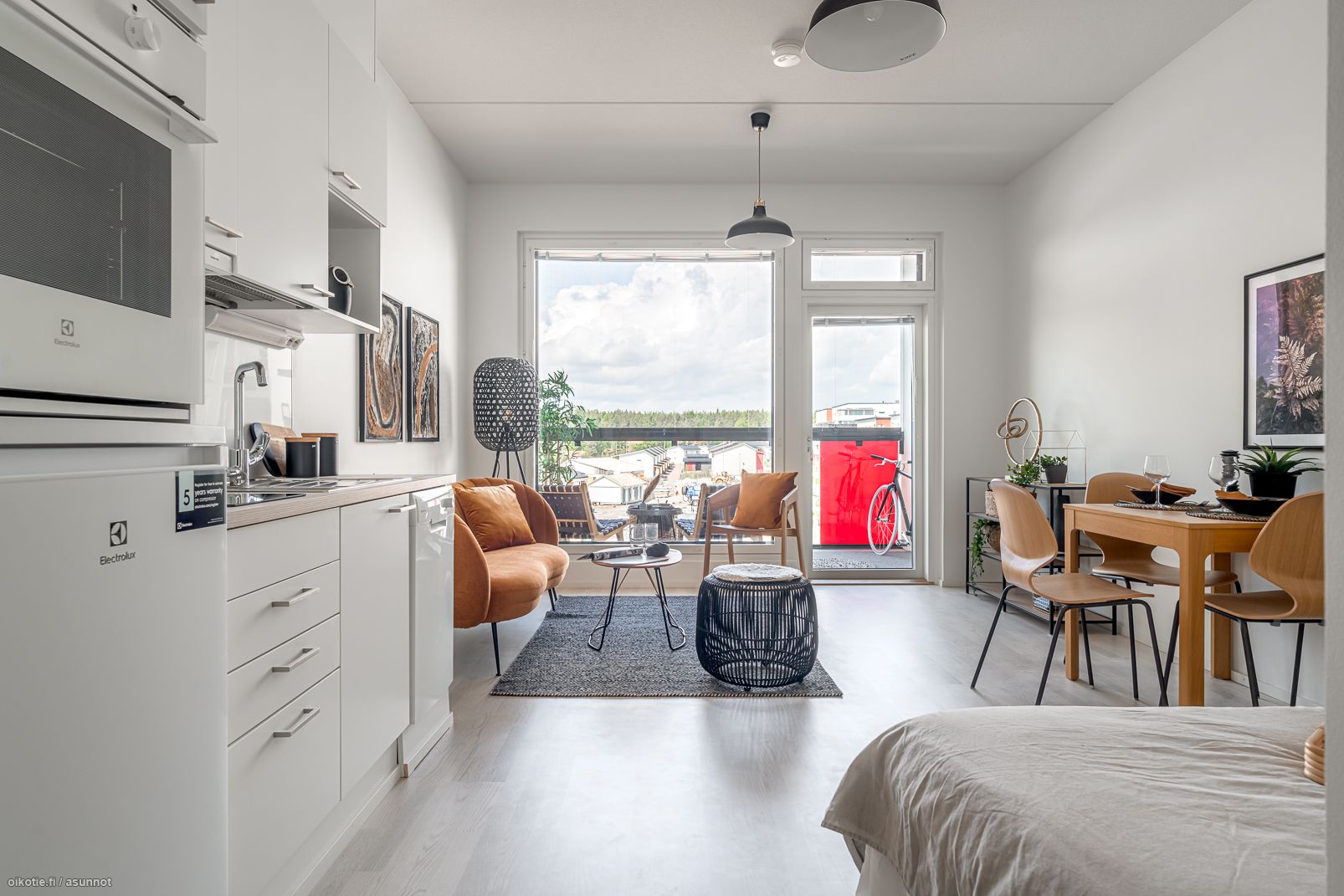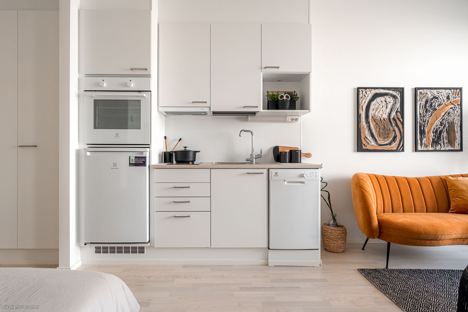 Asunto on ihanan kompakti, normaalia huonekorkeutta korkeampi ja ylellinen huoneisto vesikiertoisella lattialämmityksellä. Lattia on laadukasta lautaparkettia. Kodinkoneisiin lukeutuvat kahden levyn keraaminen liesi, kalusteuuni, astianpesukone sekä jääkaappi pakastelokerolla. Kylpyhuoneessa pyykinpesukoneliitäntä.