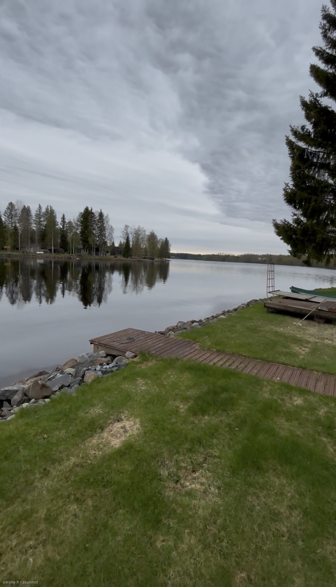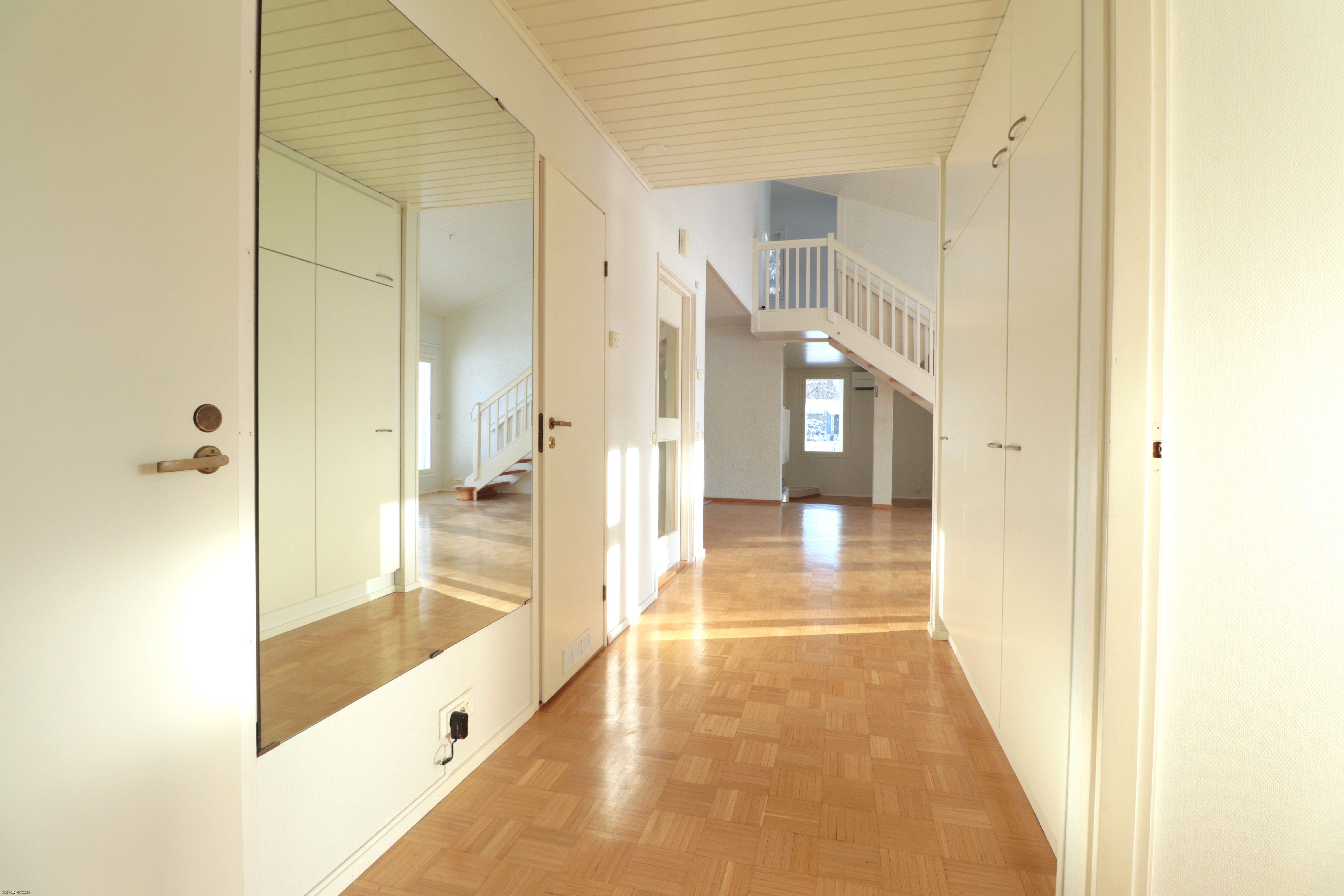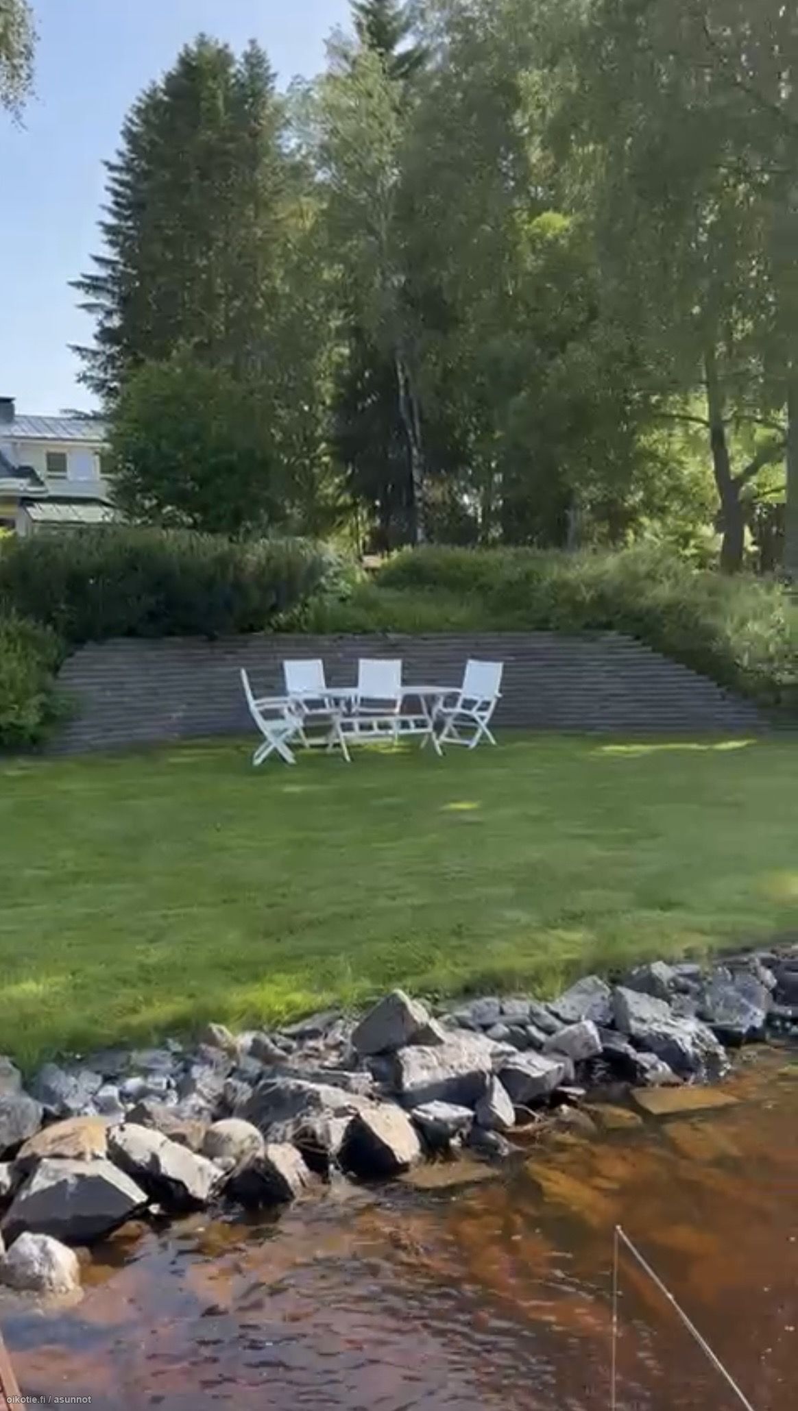 Tämä koti on rakennettu 1982, yläkerta on rakennettu 2009 ja taloa on remontoitu vuosien aikana. Pintamateriaalit on siistit, huoneet tilavat ja valoisat. Olohuoneessa on korkeaa tilaa, josta isoista ikkunoista avautuu näkymä joelle. Omaa piha-aluetta ja omaa rauhaa on runsaasti. Rannassa on myös oma laituri.