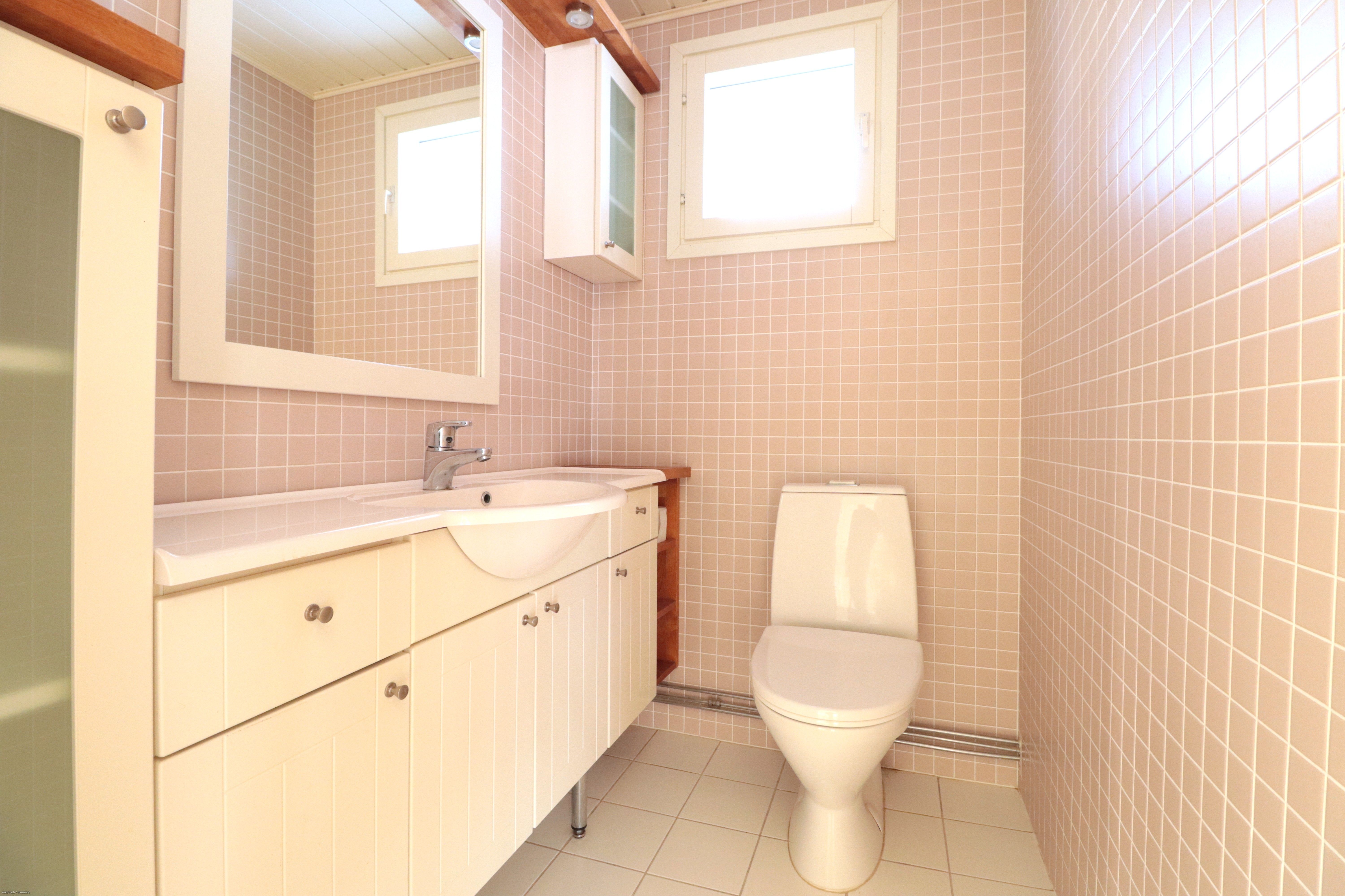 Alakerrassa on 2 mh huonetta, kirjastohuone, iso olohuone ja keittiötila. Yläkerrassa on makuuhuone, wc, ja varastotilaa runsaasti. Asumismukavuutta lisää lasitettu terassi kesähuoneena, keittiössä puulämmitteinen liesi, oma sauna ja kodinhoitotila.