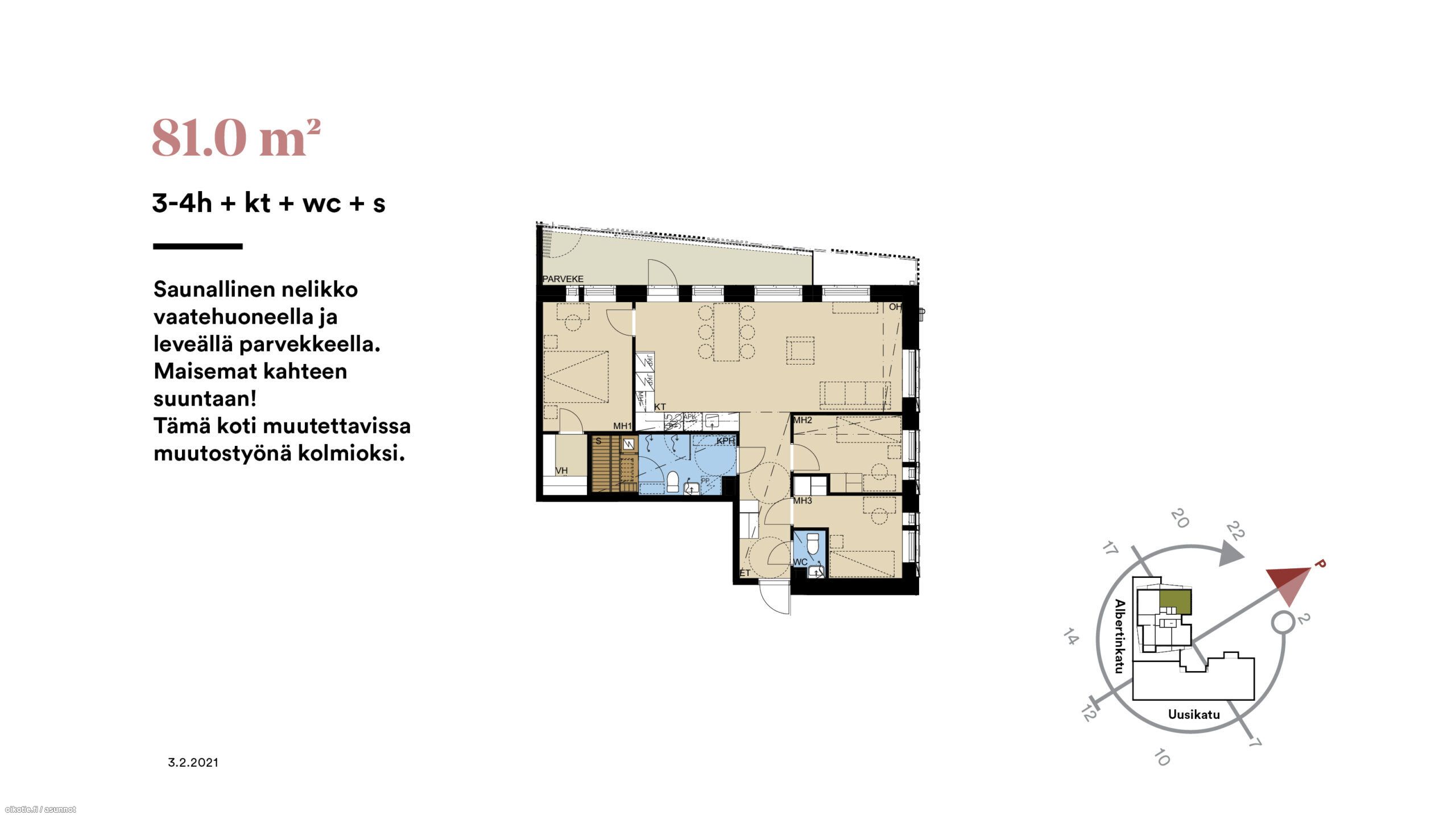 | Kokonaispinta-ala | 81m2 |