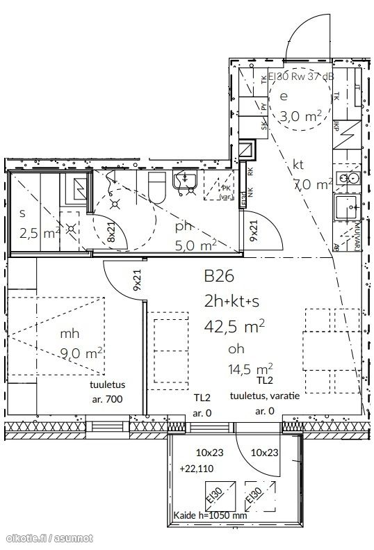 | Huoneiston kokoonpano | 2h,kt,kh,sa,parv,ap 25 |