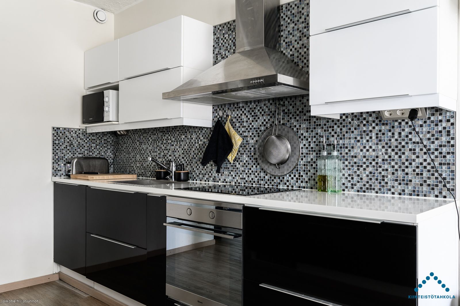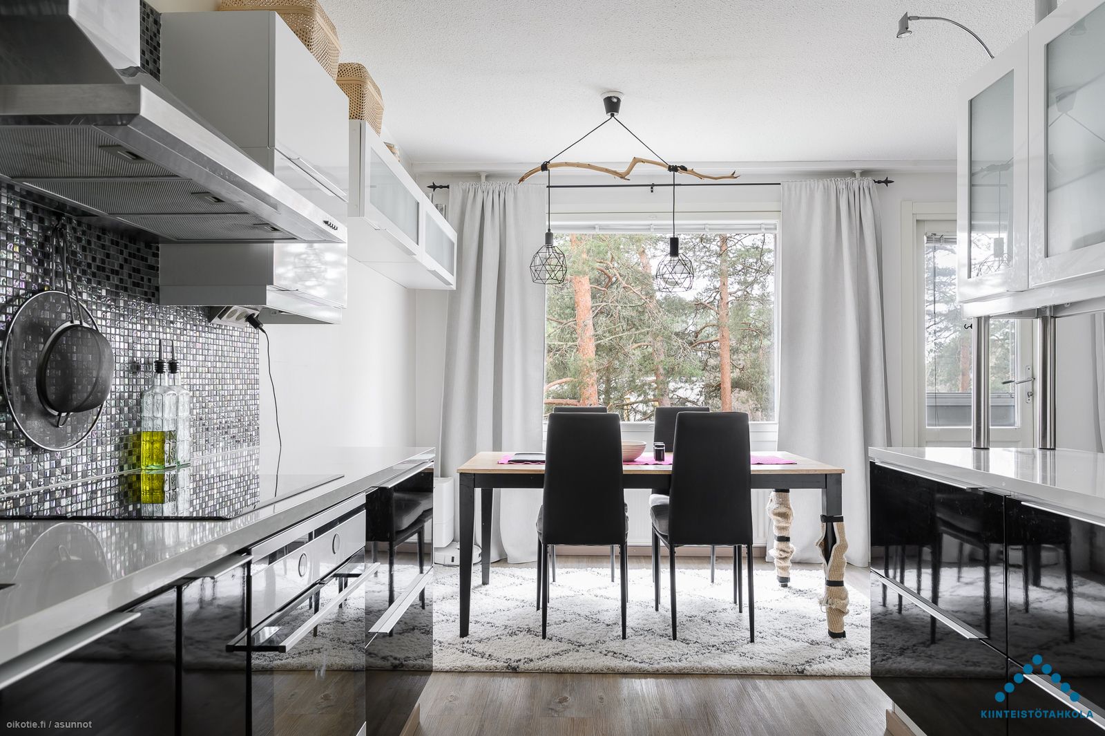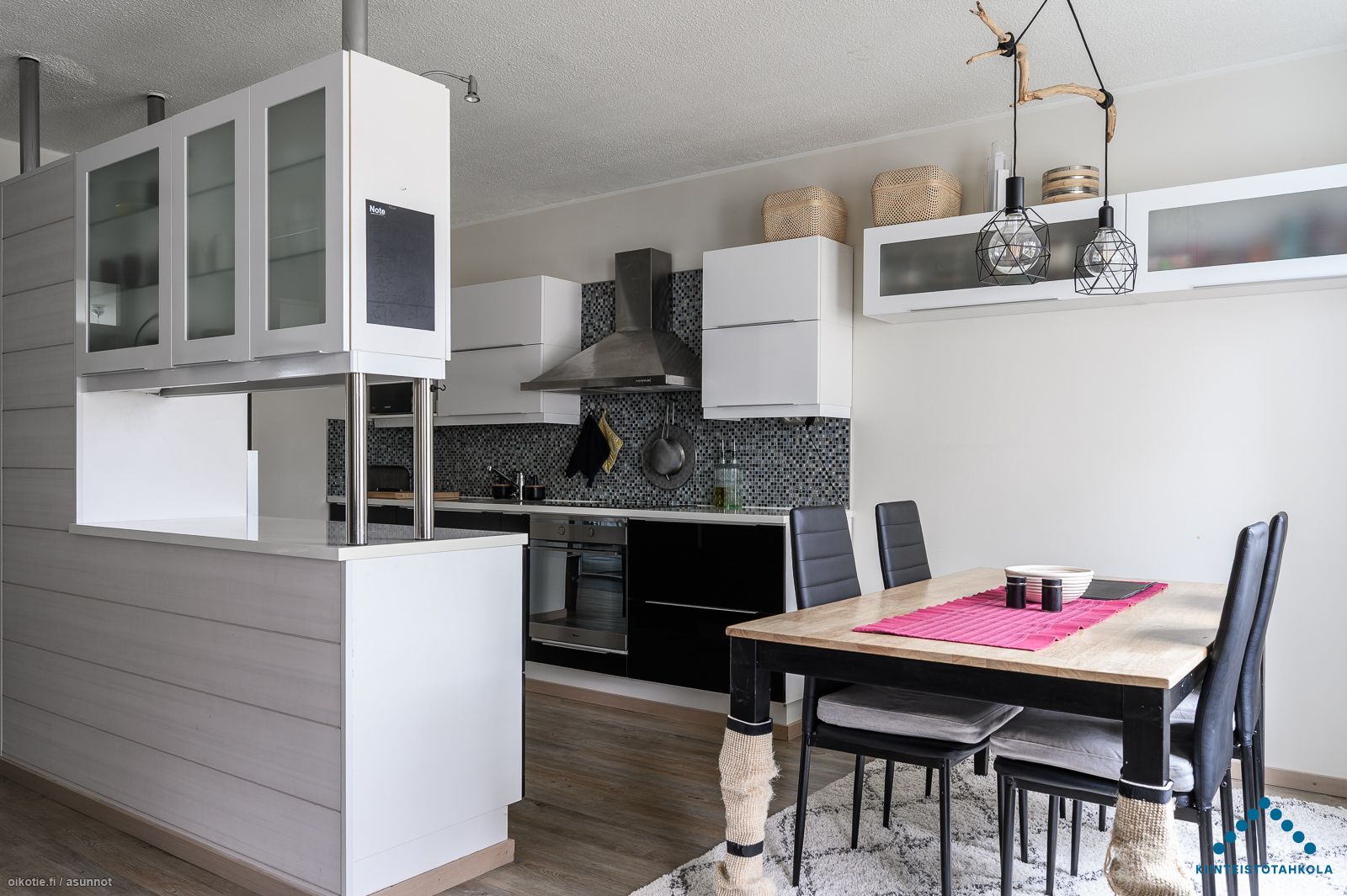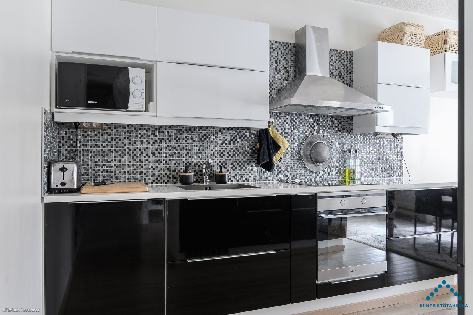 | Keittiön varusteet | Varusteet: jääkaappipakastin, astianpesukone, integroitu astianpesukone. Työtaso: laminaattitaso. Liesi: liesituuletin, induktioliesi |