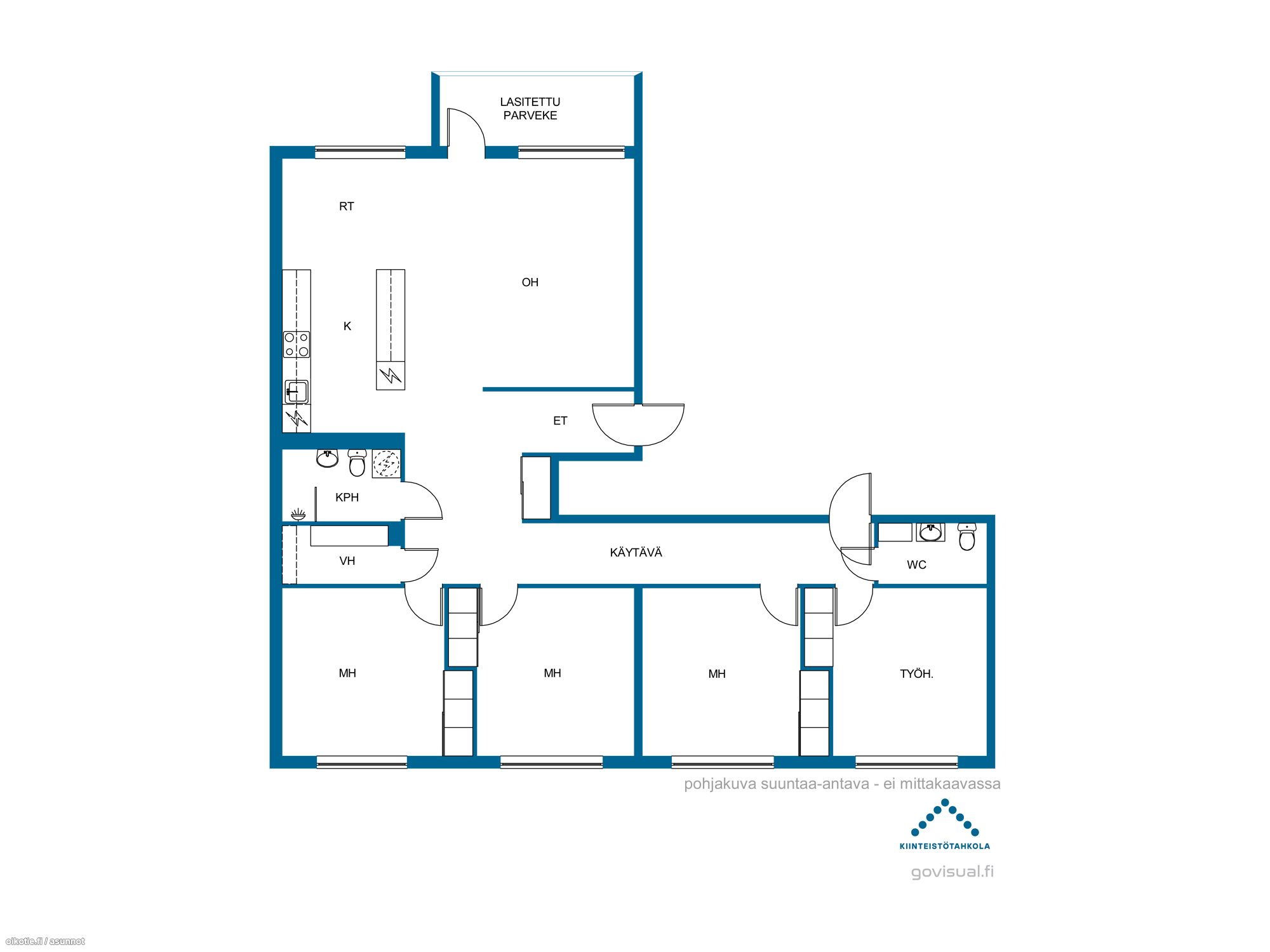 | Huoneiston kokoonpano | 5h, k, kph, 2wc, vh, las. parveke |