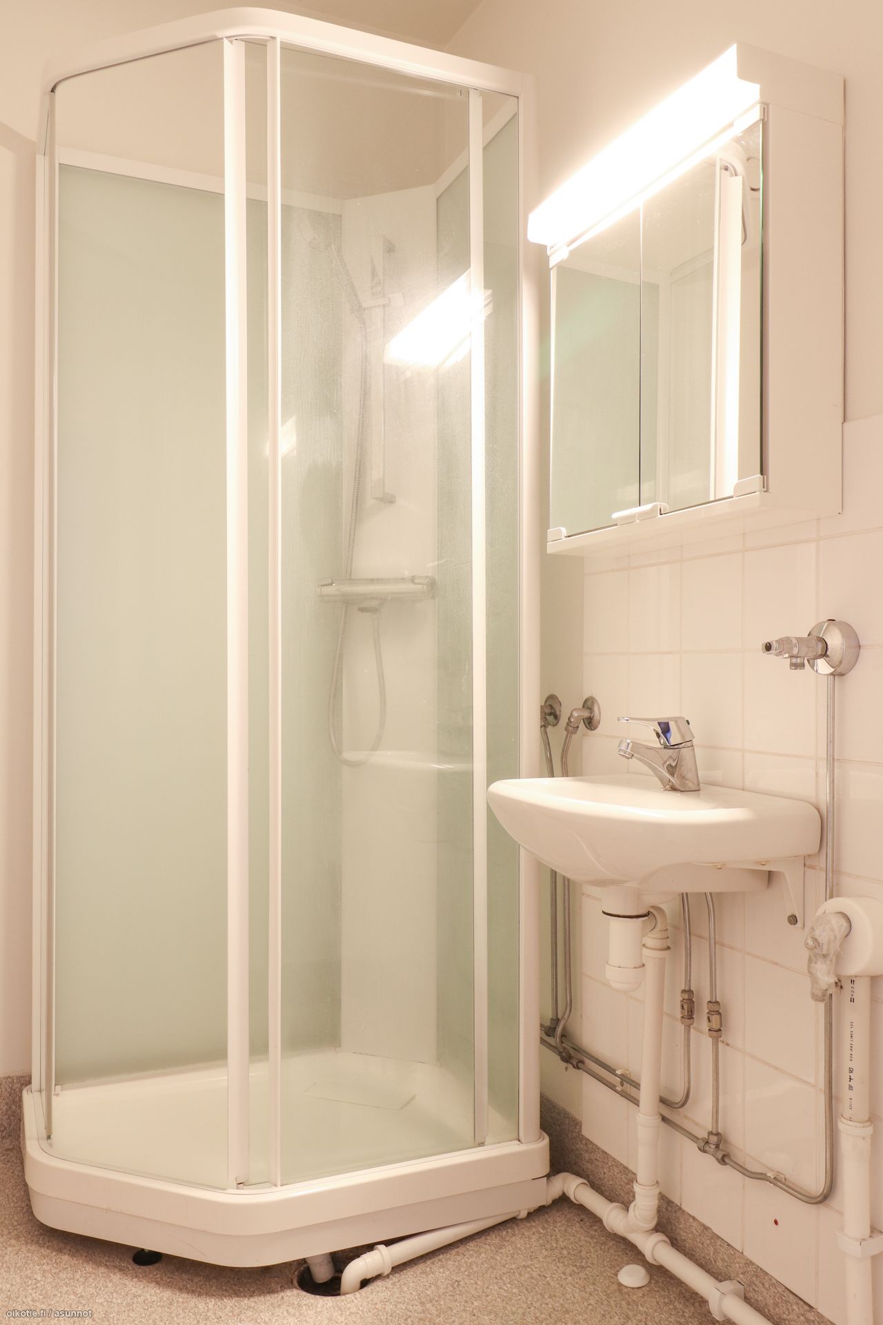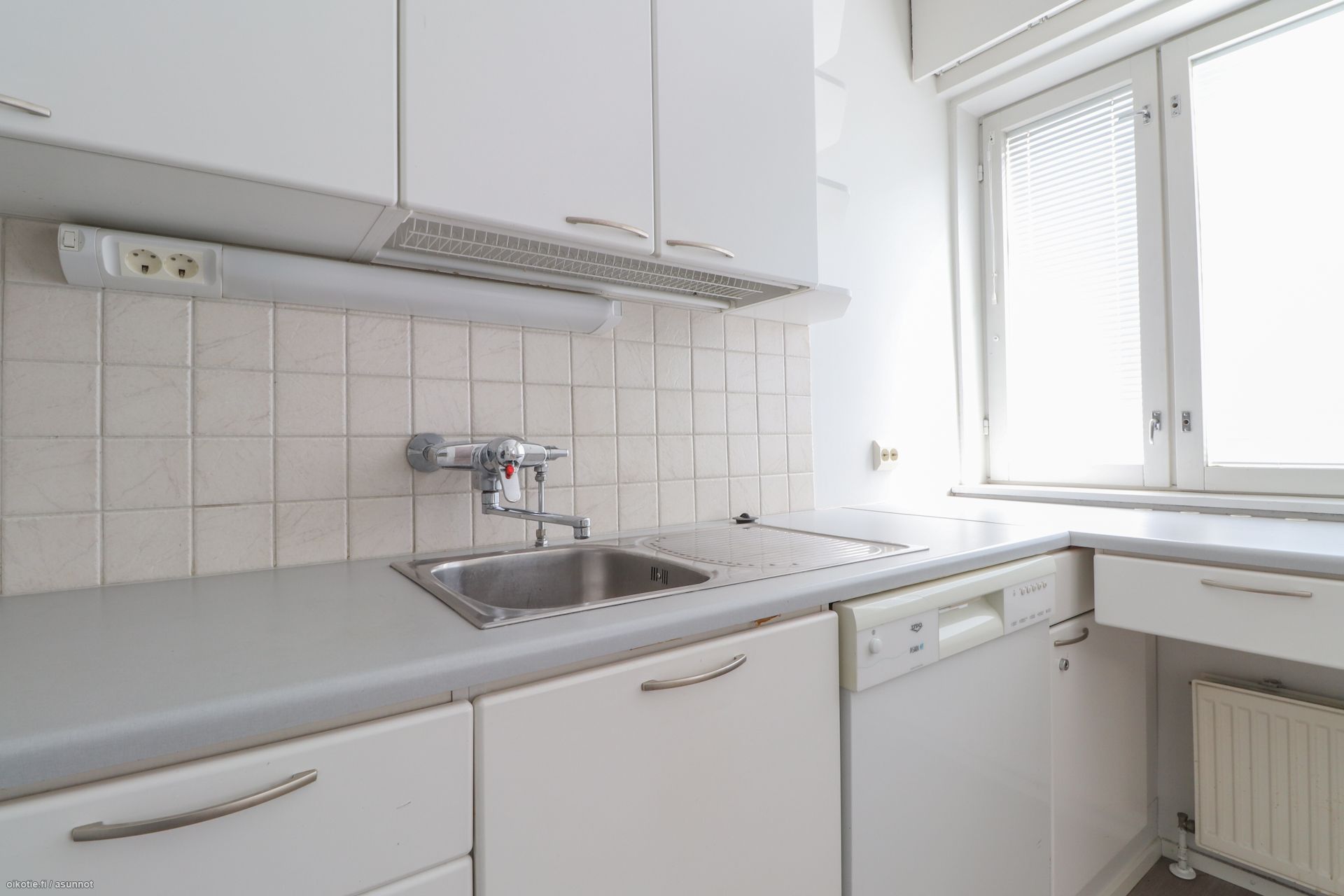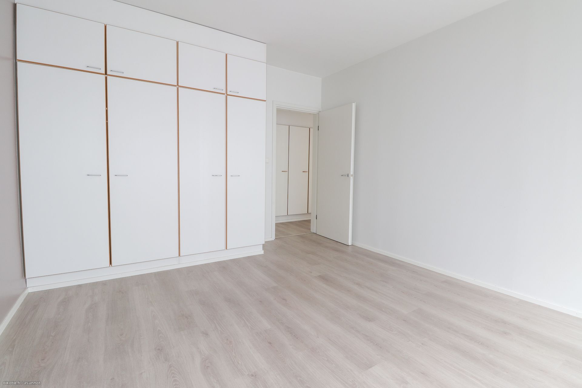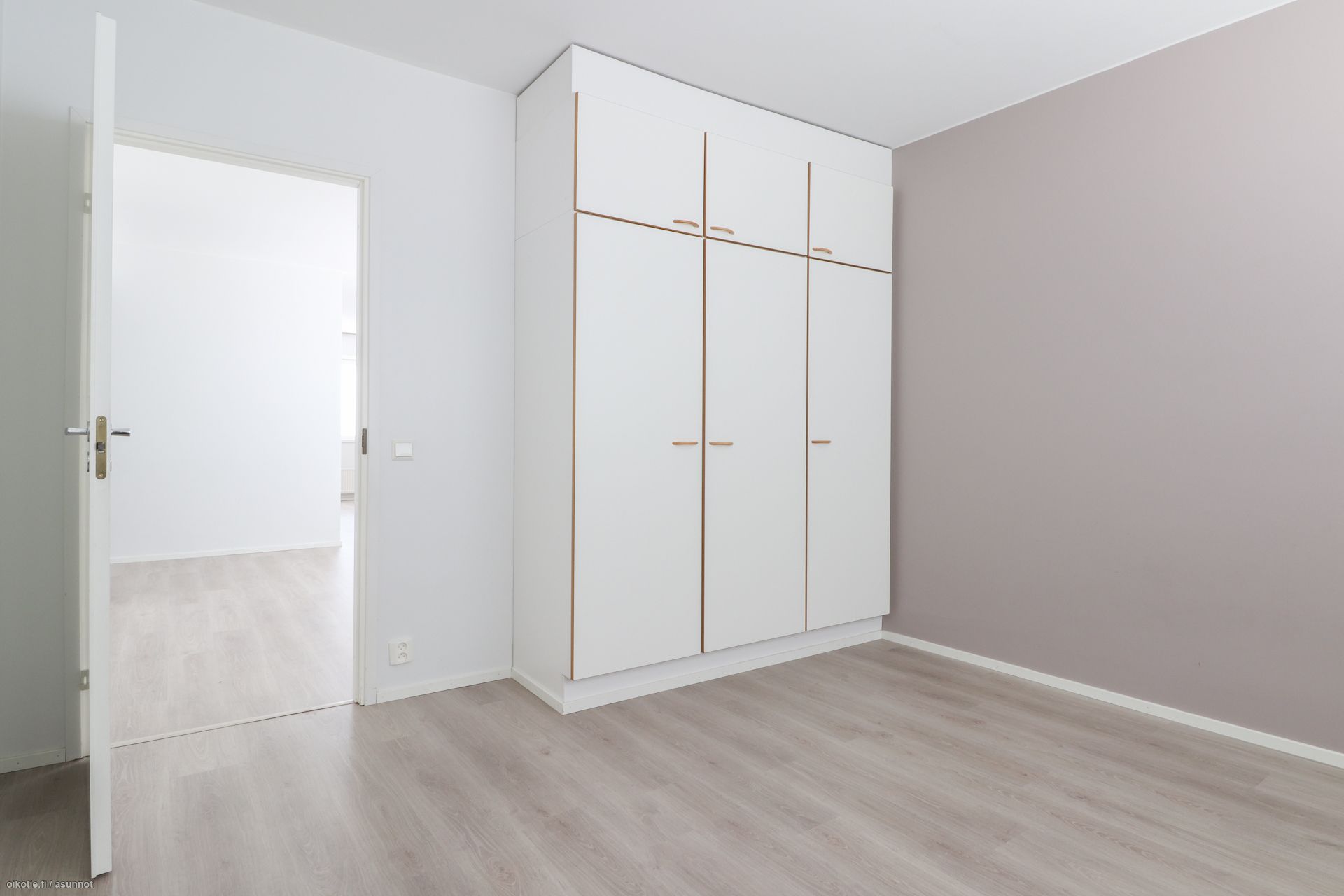 Pinnat: Huoneistossa on raikkaat vaaleat seinät ja siisti, helppohoitoinen laminaattilattia.