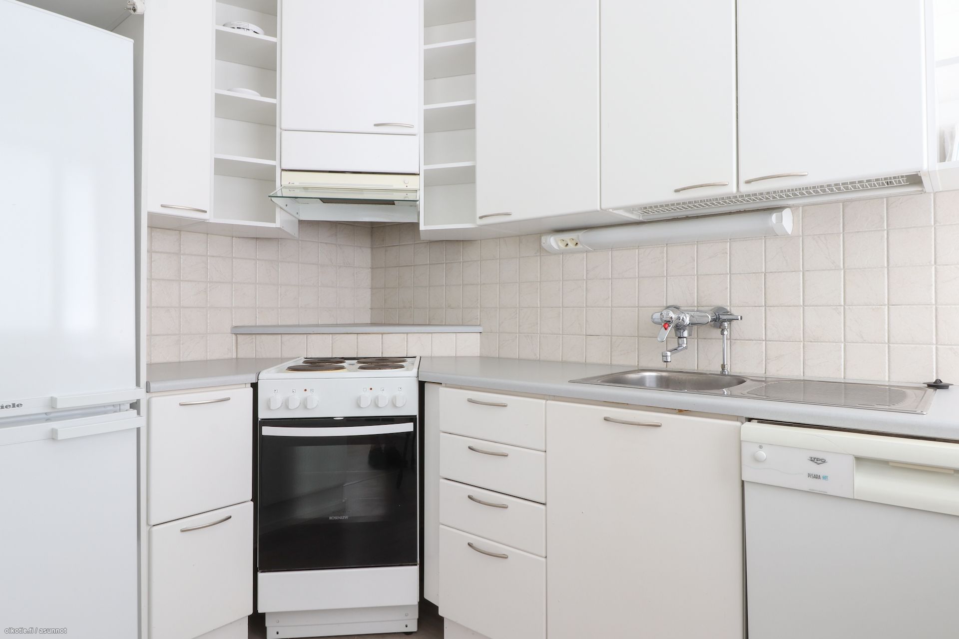 Toimiva keittiö: Varusteluun kuuluu astianpesukone, liesi/uuni sekä jääkaappipakastin.