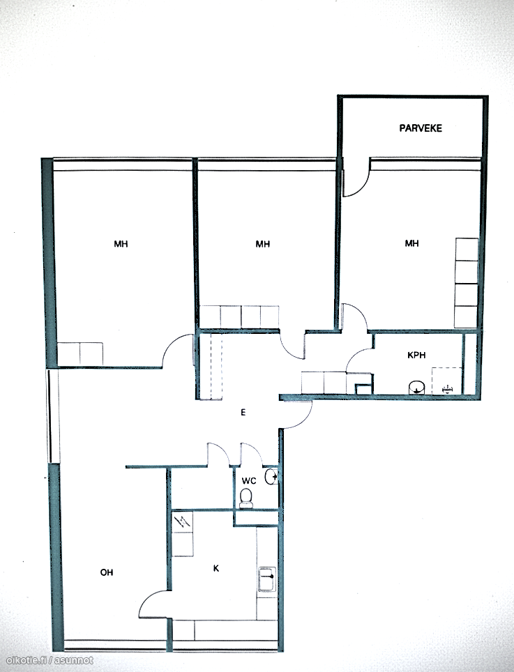 | Huoneiston kokoonpano | 4h,k,kph,wc,parv |