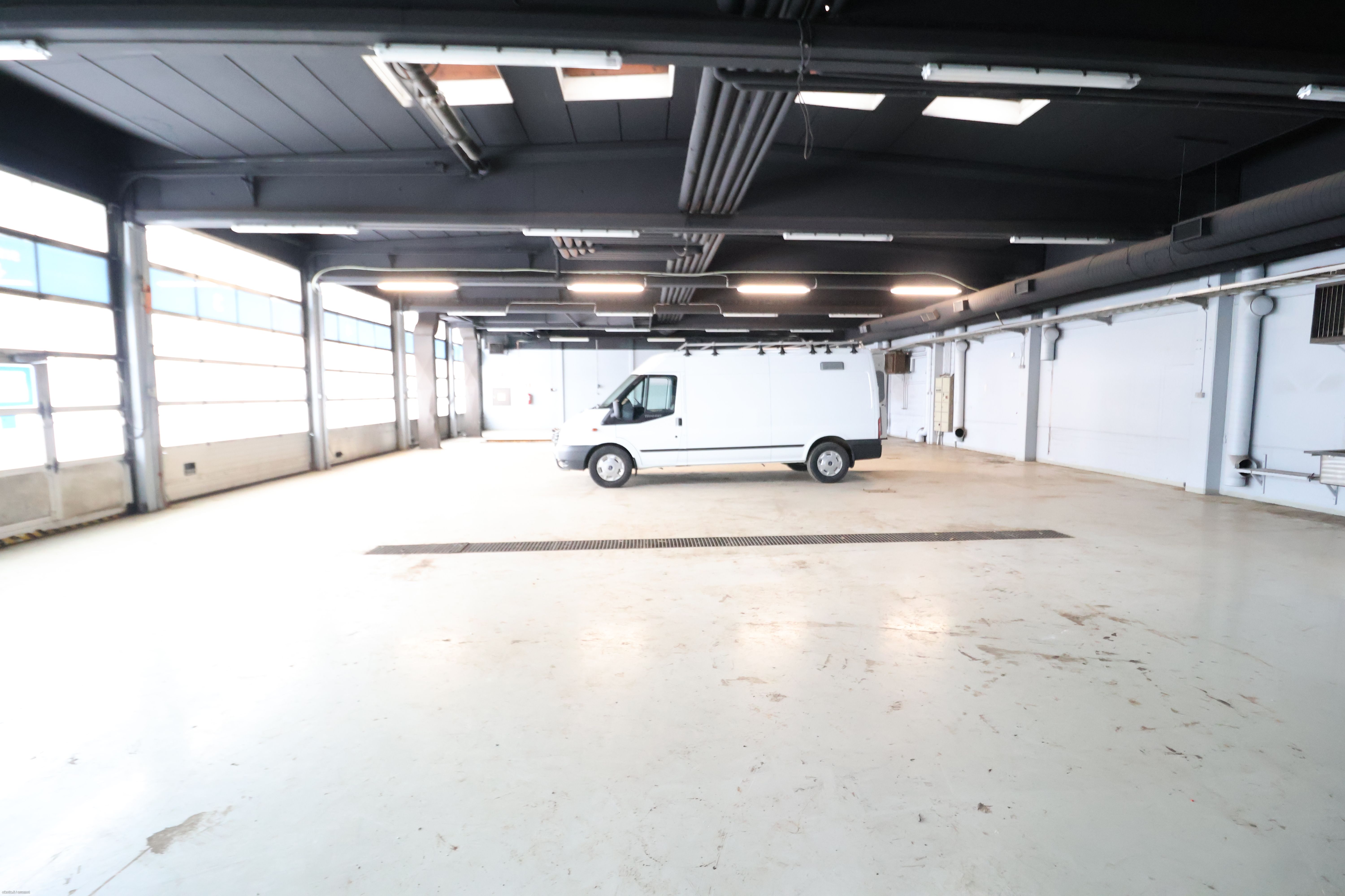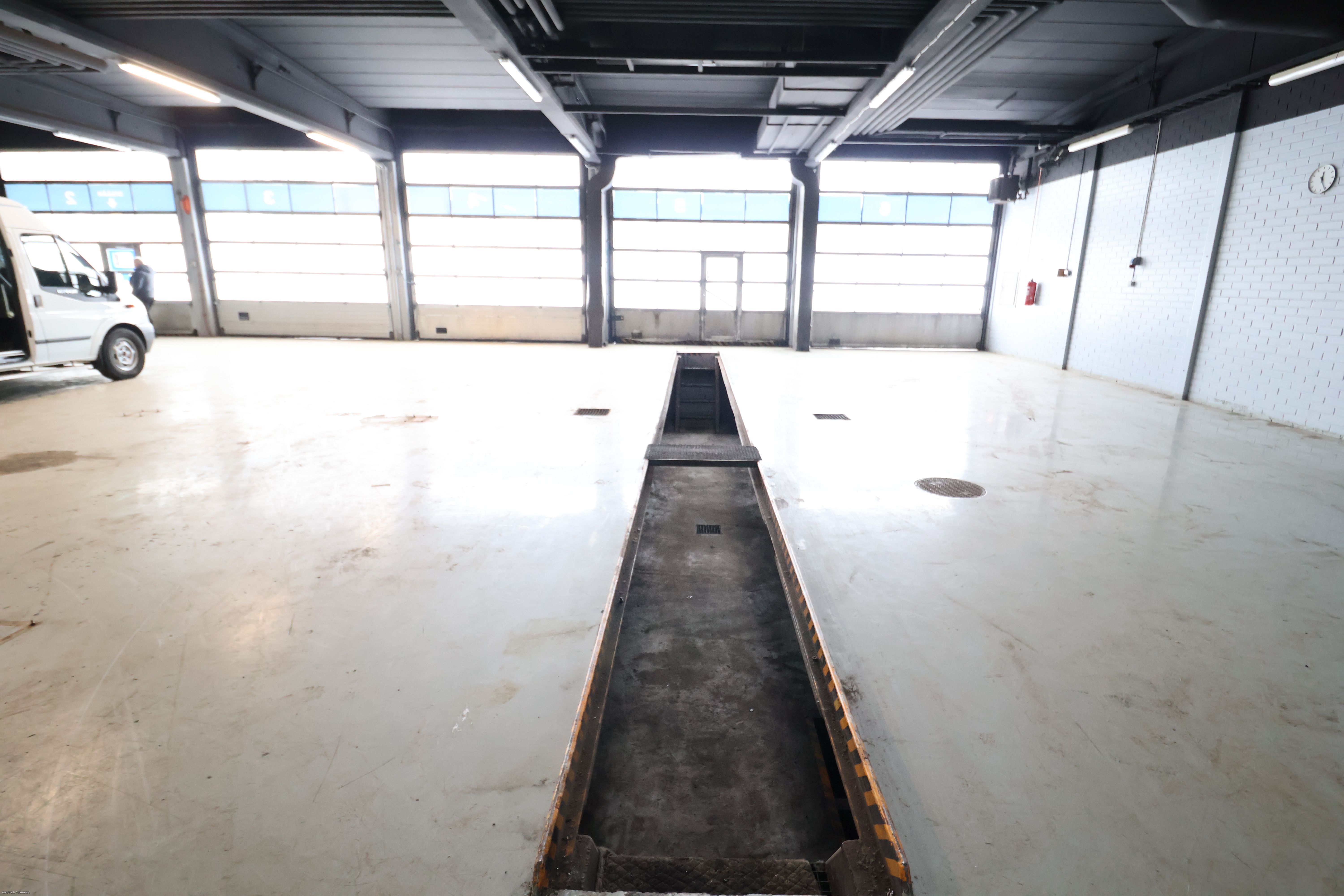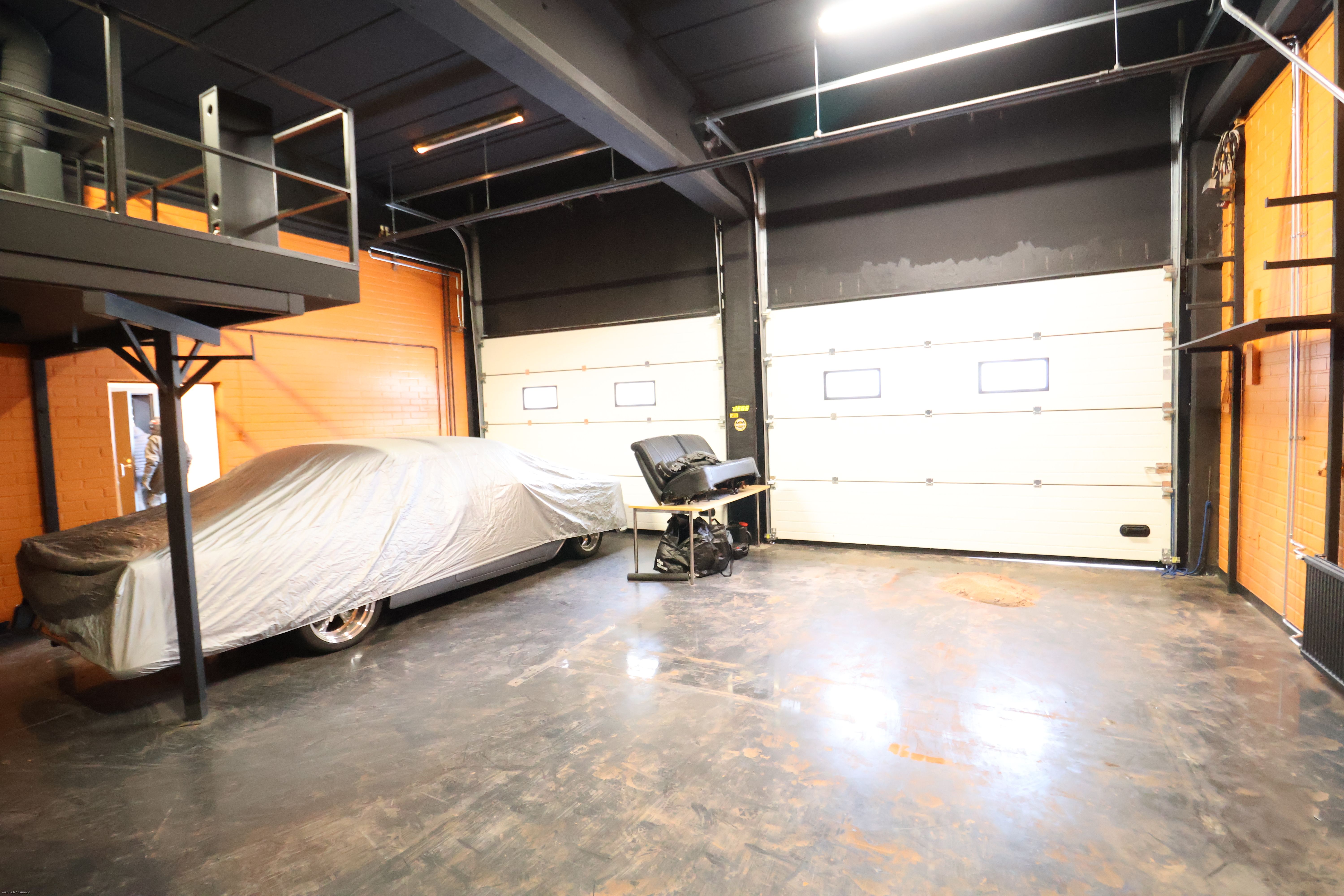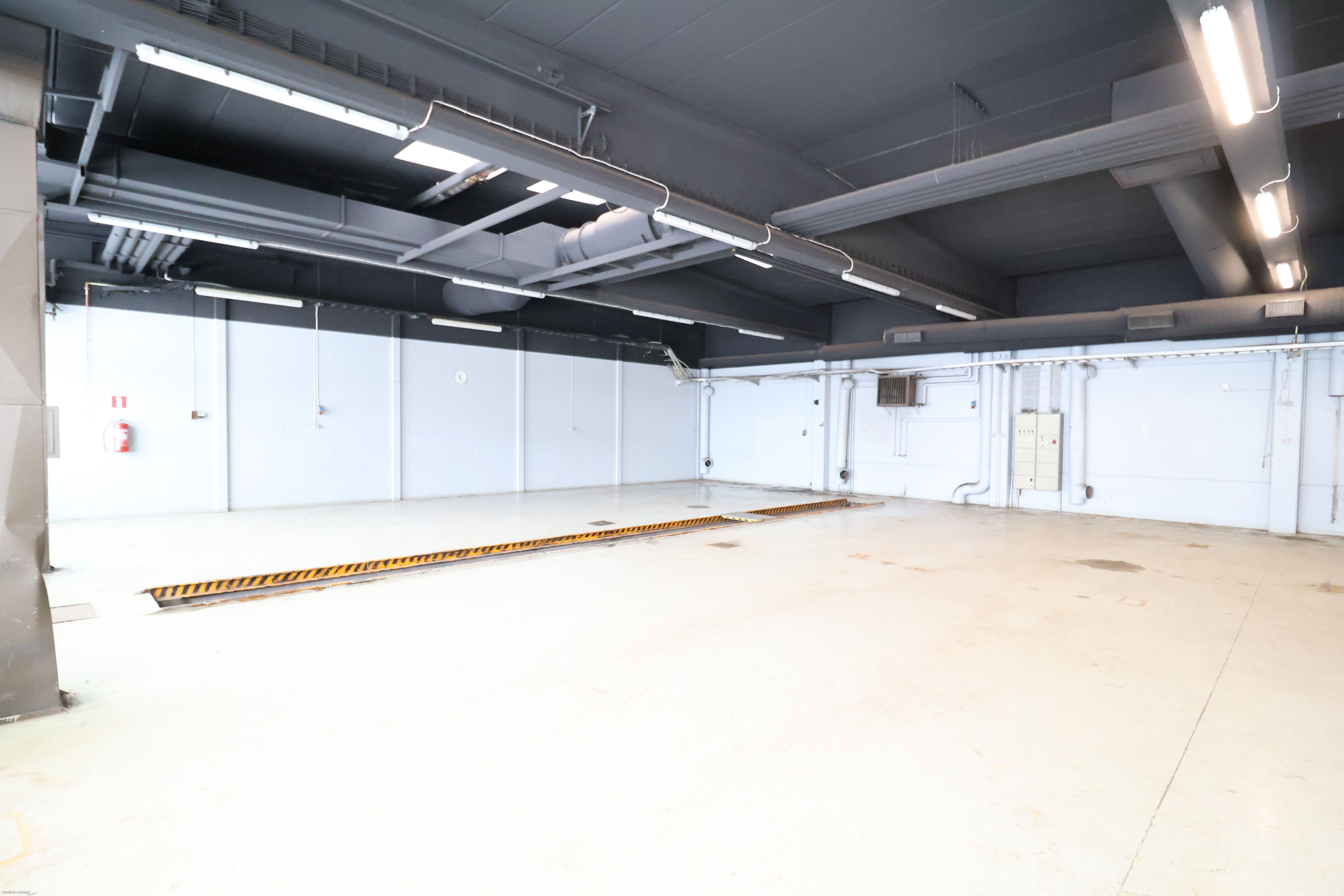 Hallissa useita nosto-ovia (lastaus maan-tasa) sekä rasva-monttu.