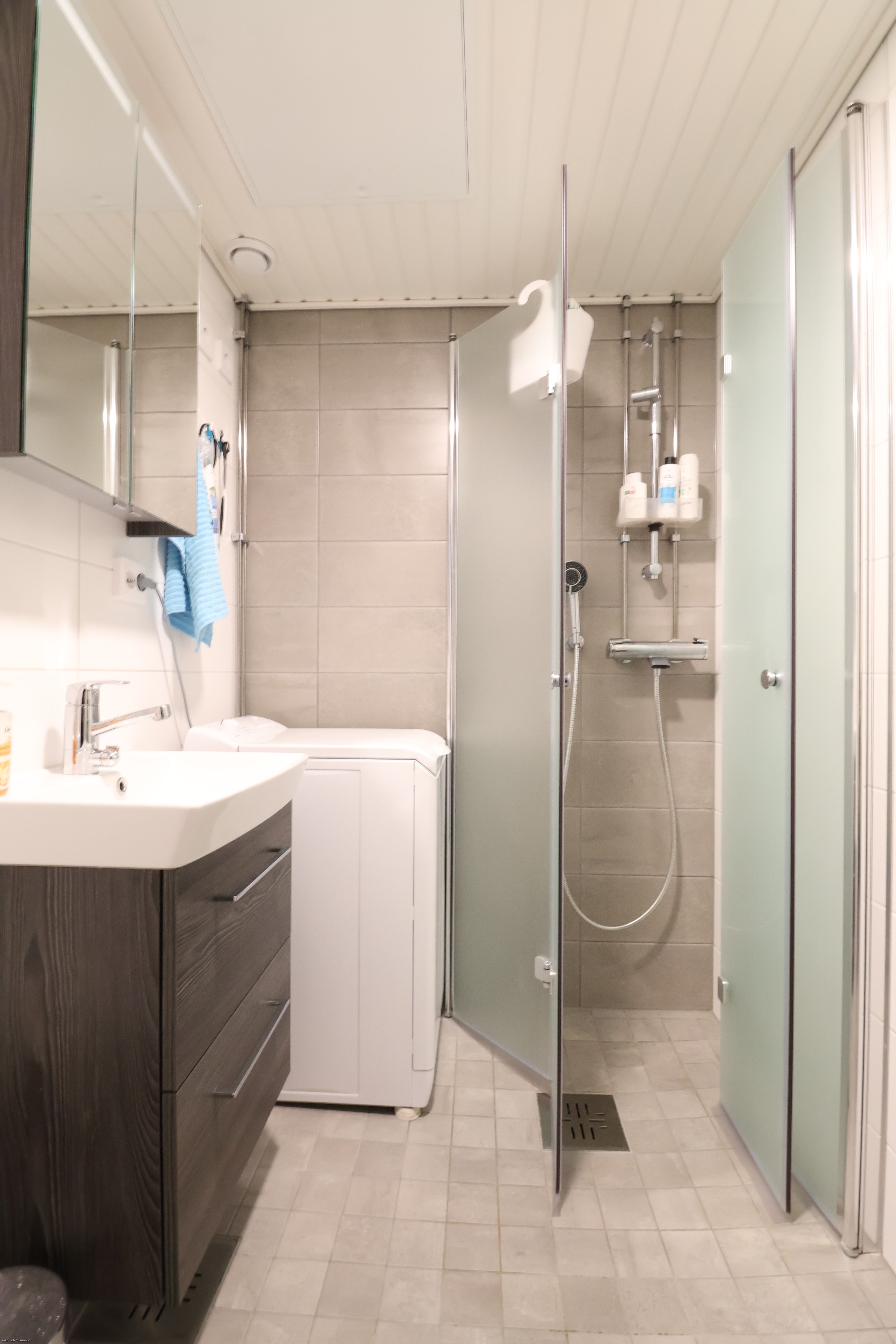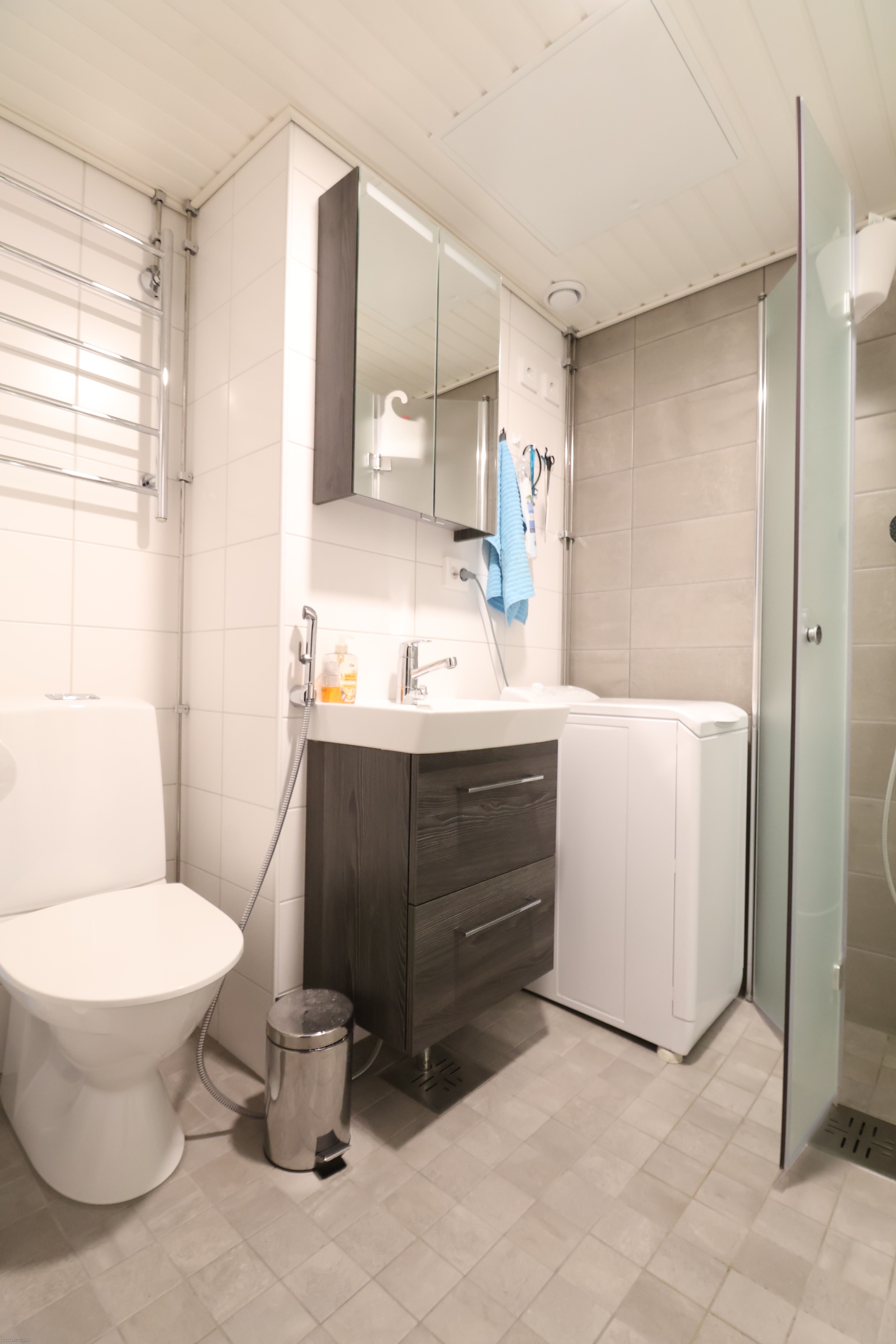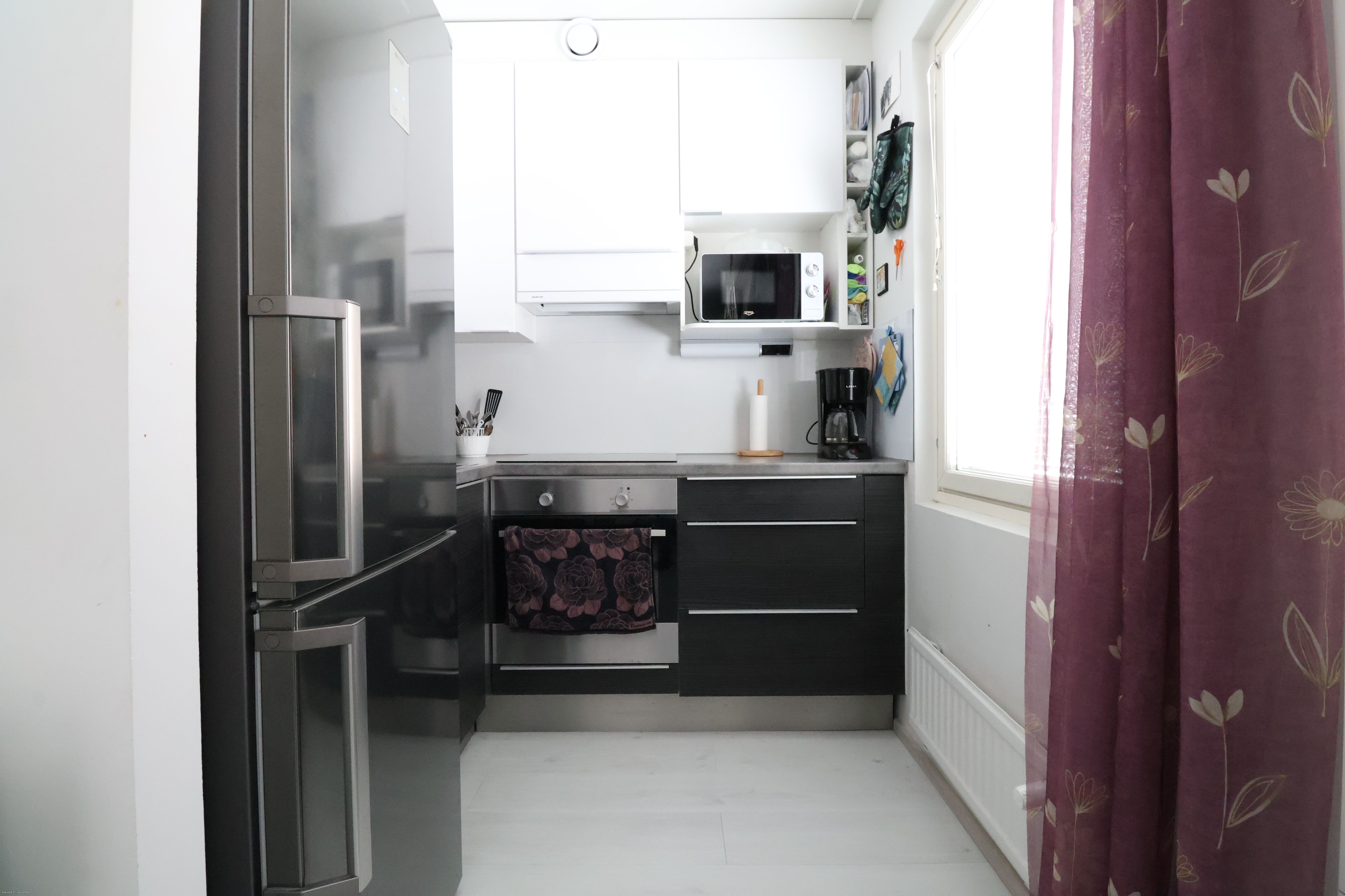 Asunnon pohjaratkaisu on selkeä ja helposti sisustettava. Keittiön varustukseen kuuluu jääkaappipakastin, integroitu liesi, erillisuuni ja astianpesukone. Modernissa kylpyhuoneessa on tilavaraus päältä täytettävälle pyykinpesukoneelle. Asunnon lattia on laminaattia seinät vaalein maalipinnoin, joten värimaailma on raikas ja valoisa.