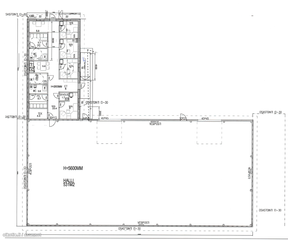 | Huoneiston kokoonpano | Tuotanto- ja toimistotilaa |