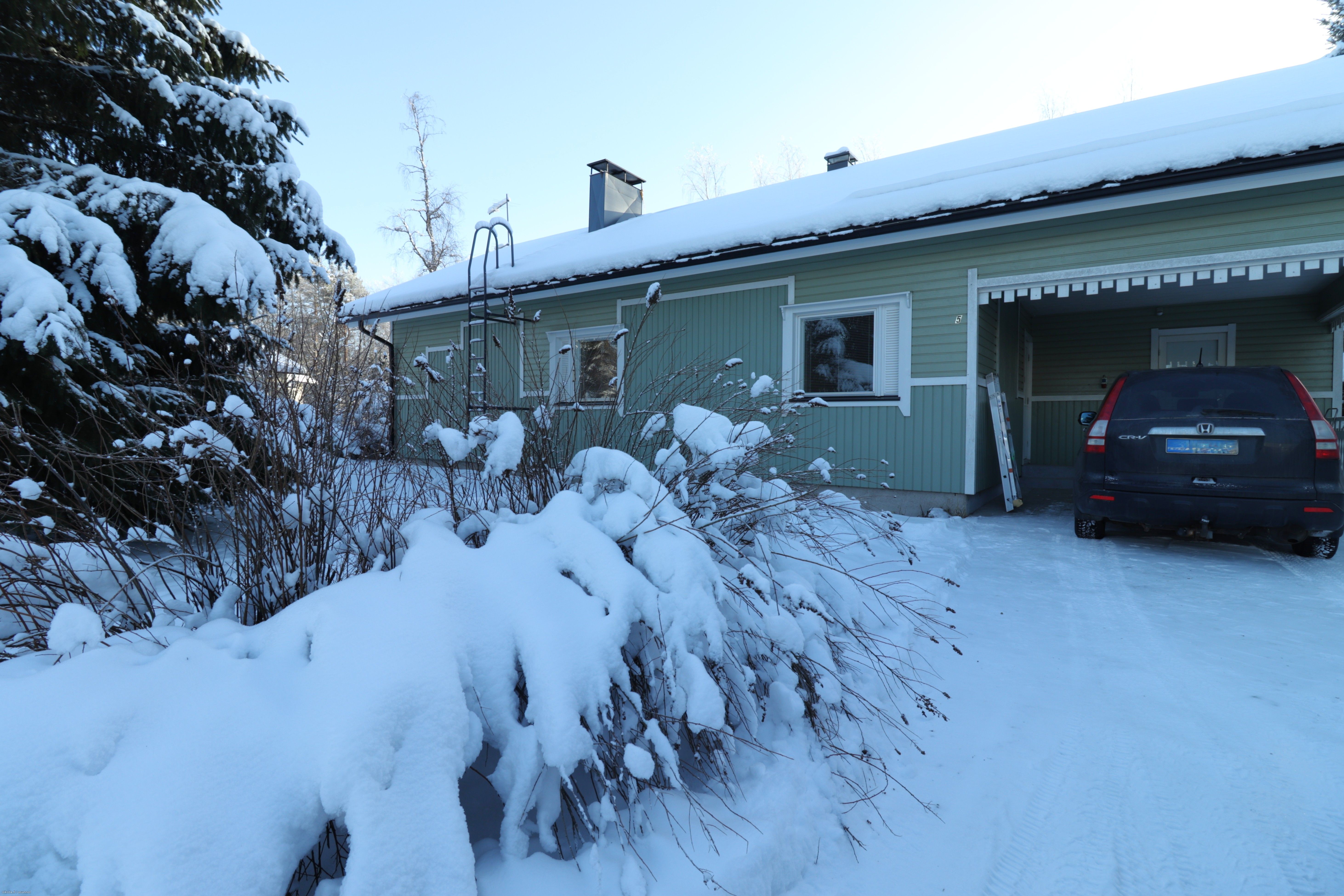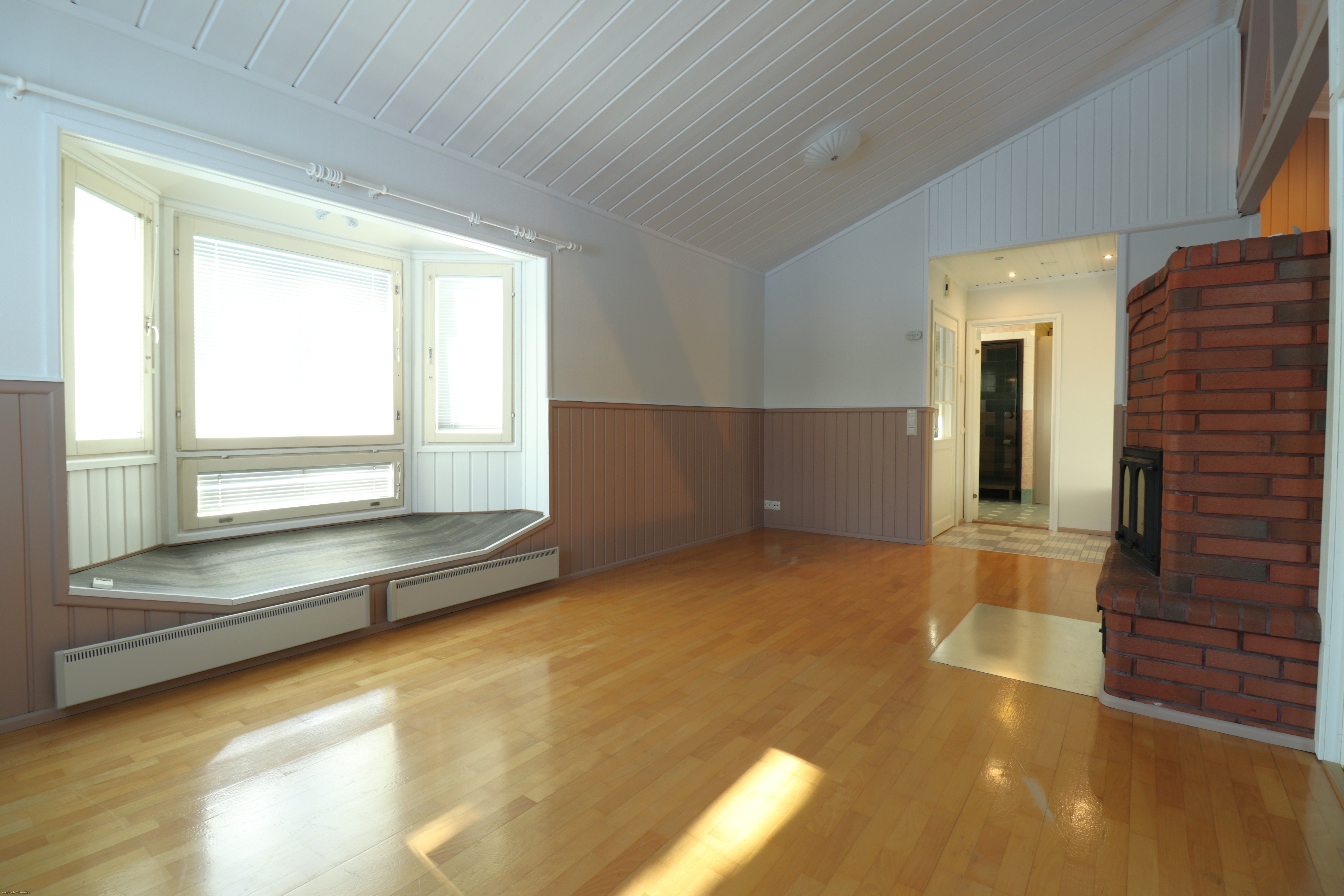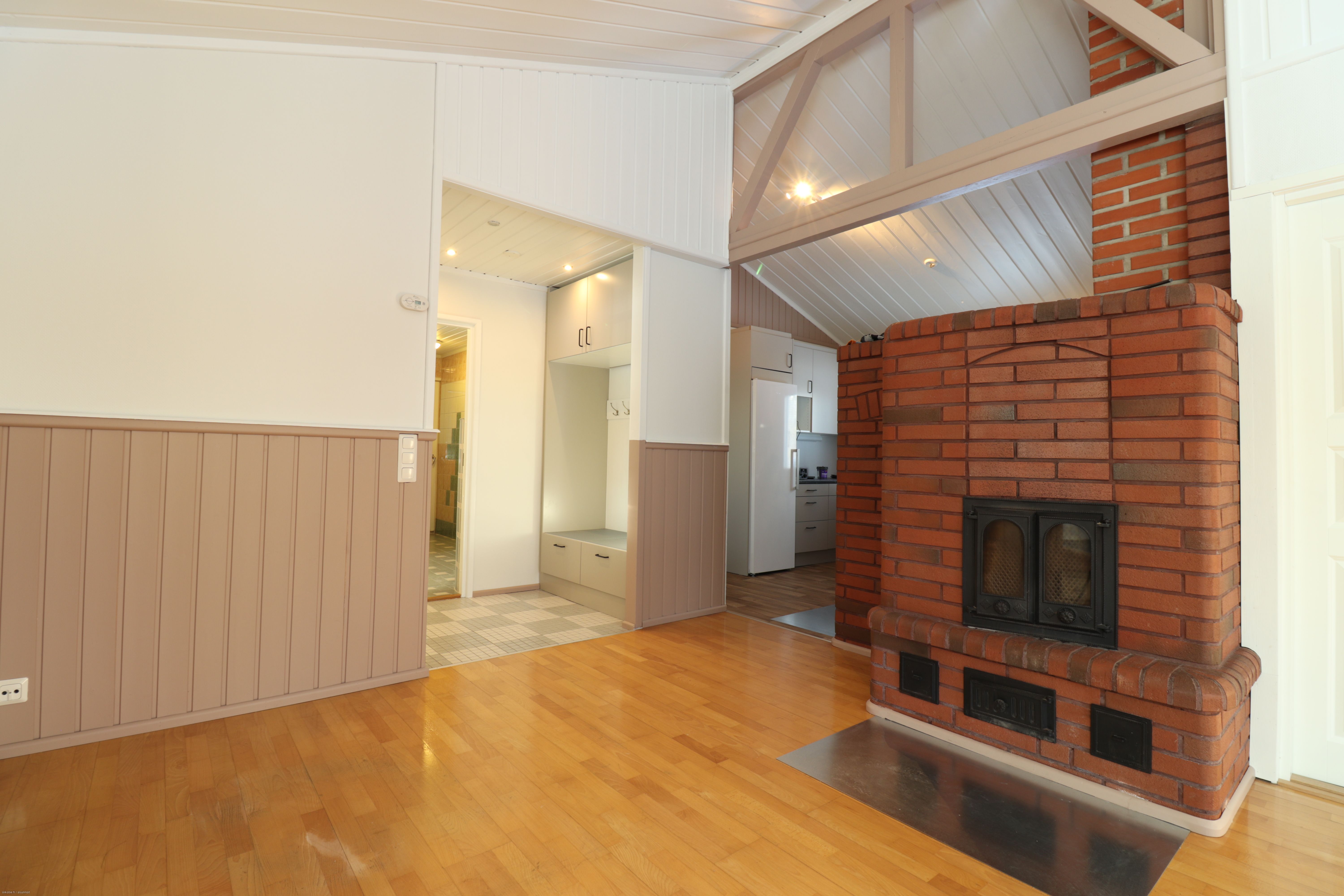 Kodin sydämenä olohuonekeittiössä iso varaava takka ja leivinuuni, sekä juuri asennettu ilmanlämpöpumppu. Juuri remontoitu keittiö, jossa iso jääkaappi, uuni/liesi ja astianpesukone. Ei pakastinta. Olohuoneessa lattia lautaparkettia, muissa tiloissa muovimattoa. Kylpyhuoneessa sähkölämmitteinen sauna, sekä liitännät pyykinpesukoneelle. Suojaisa ja tilava takapiha, jossa on tilaa leikkiä ja temmeltää. Autolle löytyy talon yhteydestä autokatos.