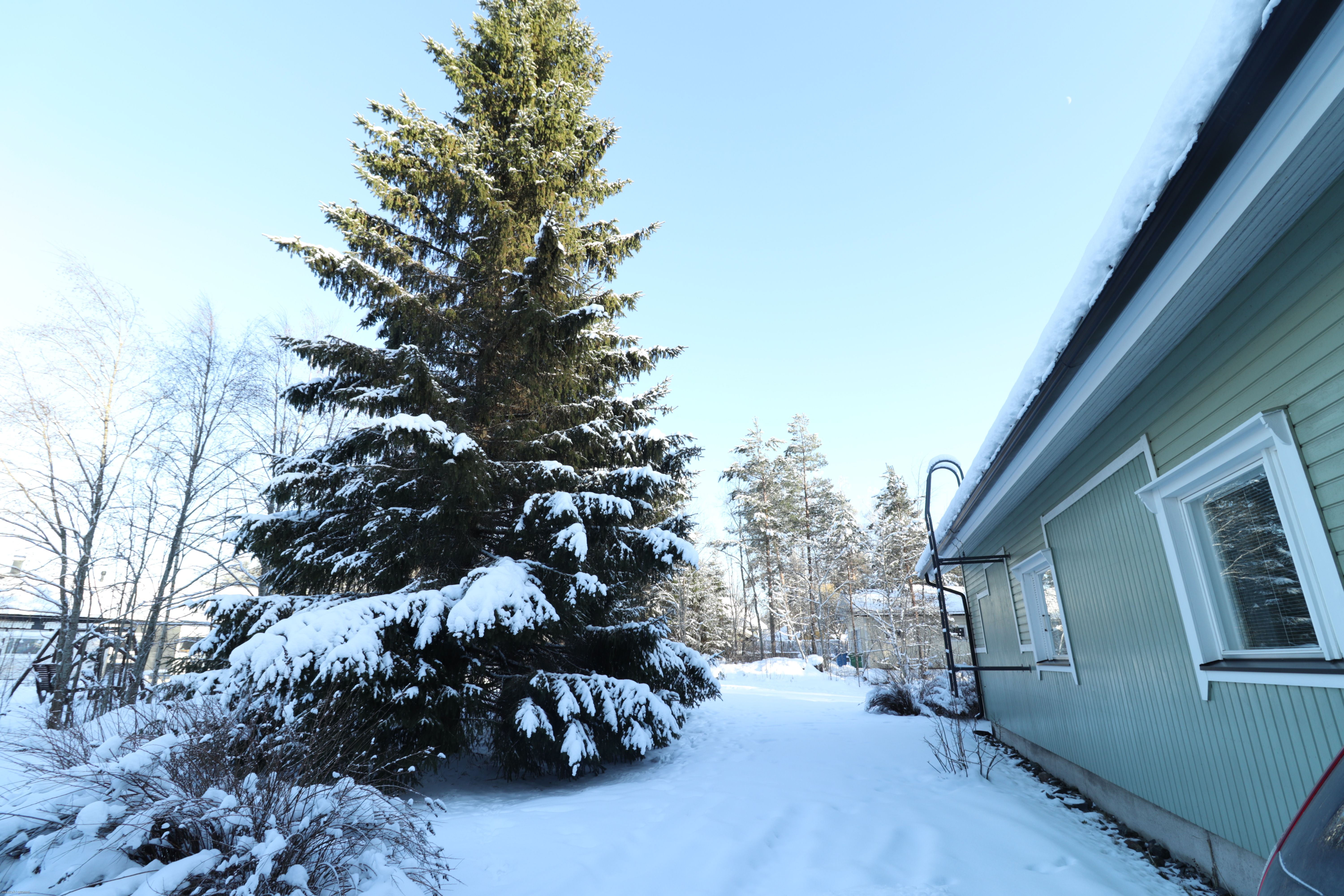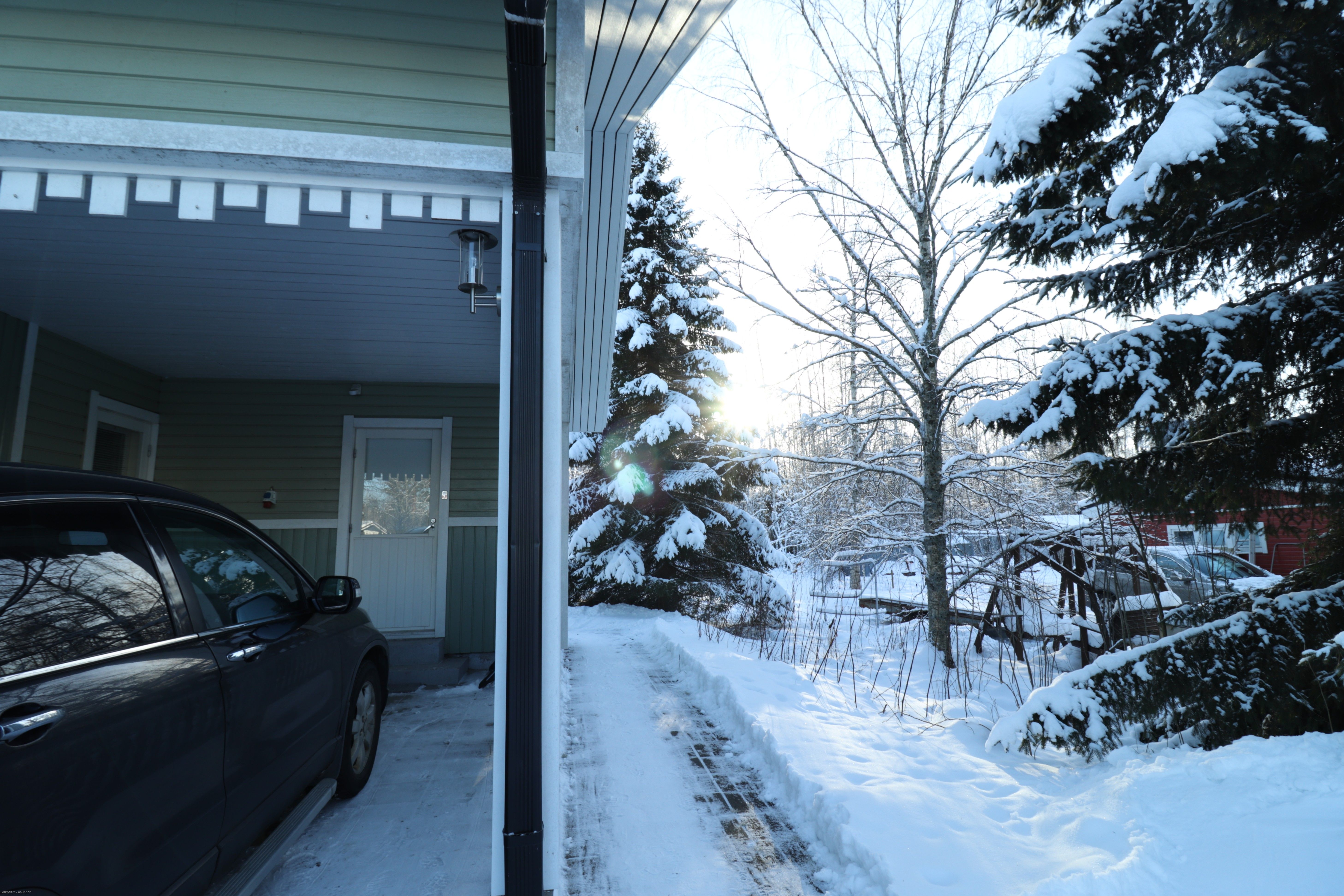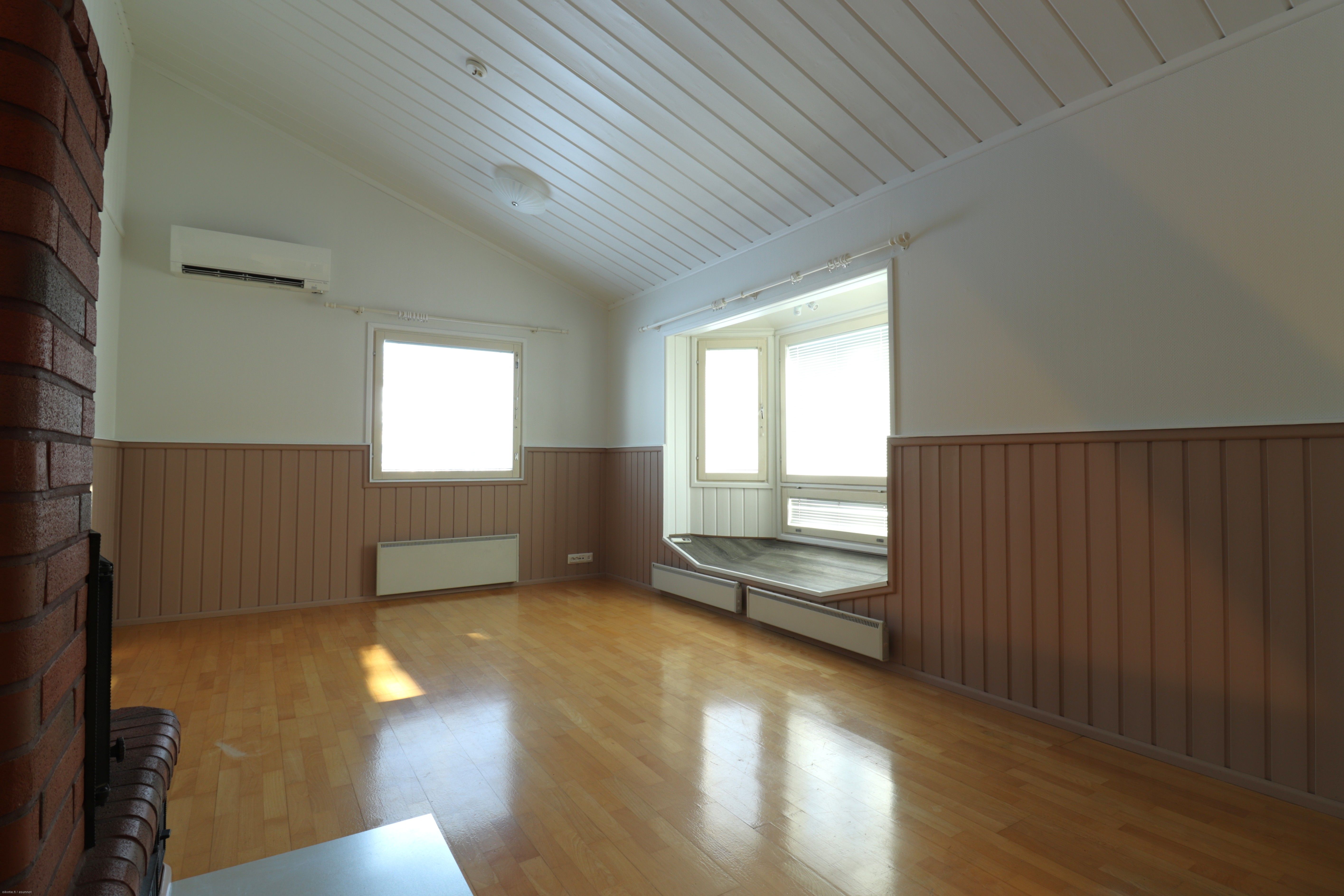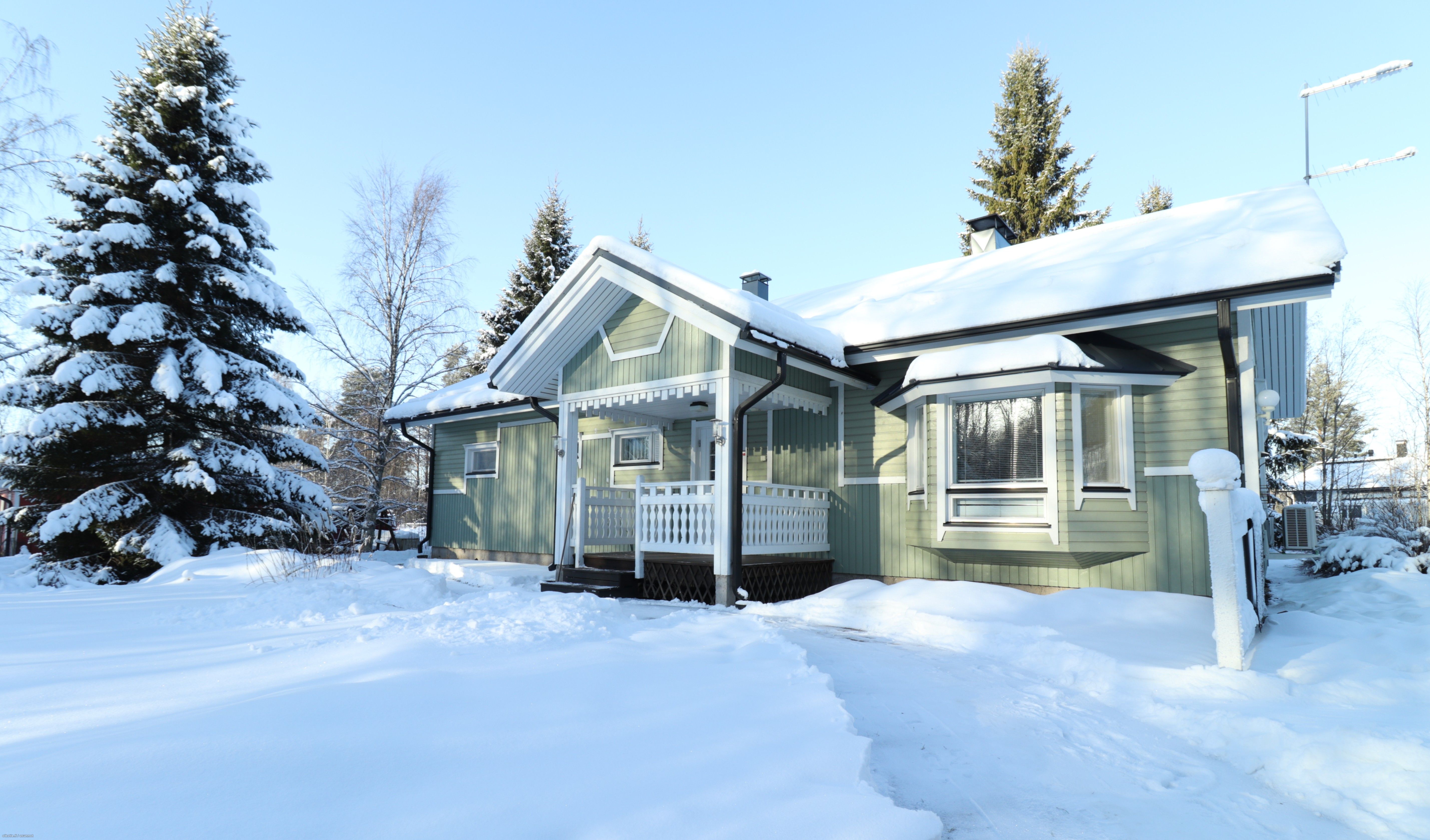 Kodin sydämenä olohuonekeittiössä iso varaava takka ja leivinuuni, sekä juuri asennettu ilmanlämpöpumppu. Juuri remontoitu keittiö, jossa iso jääkaappi, uuni/liesi ja astianpesukone. Ei pakastinta. Olohuoneessa lattia lautaparkettia, muissa tiloissa muovimattoa. Kylpyhuoneessa sähkölämmitteinen sauna, sekä liitännät pyykinpesukoneelle. Suojaisa ja tilava takapiha, jossa on tilaa leikkiä ja temmeltää. Autolle löytyy talon yhteydestä autokatos.
