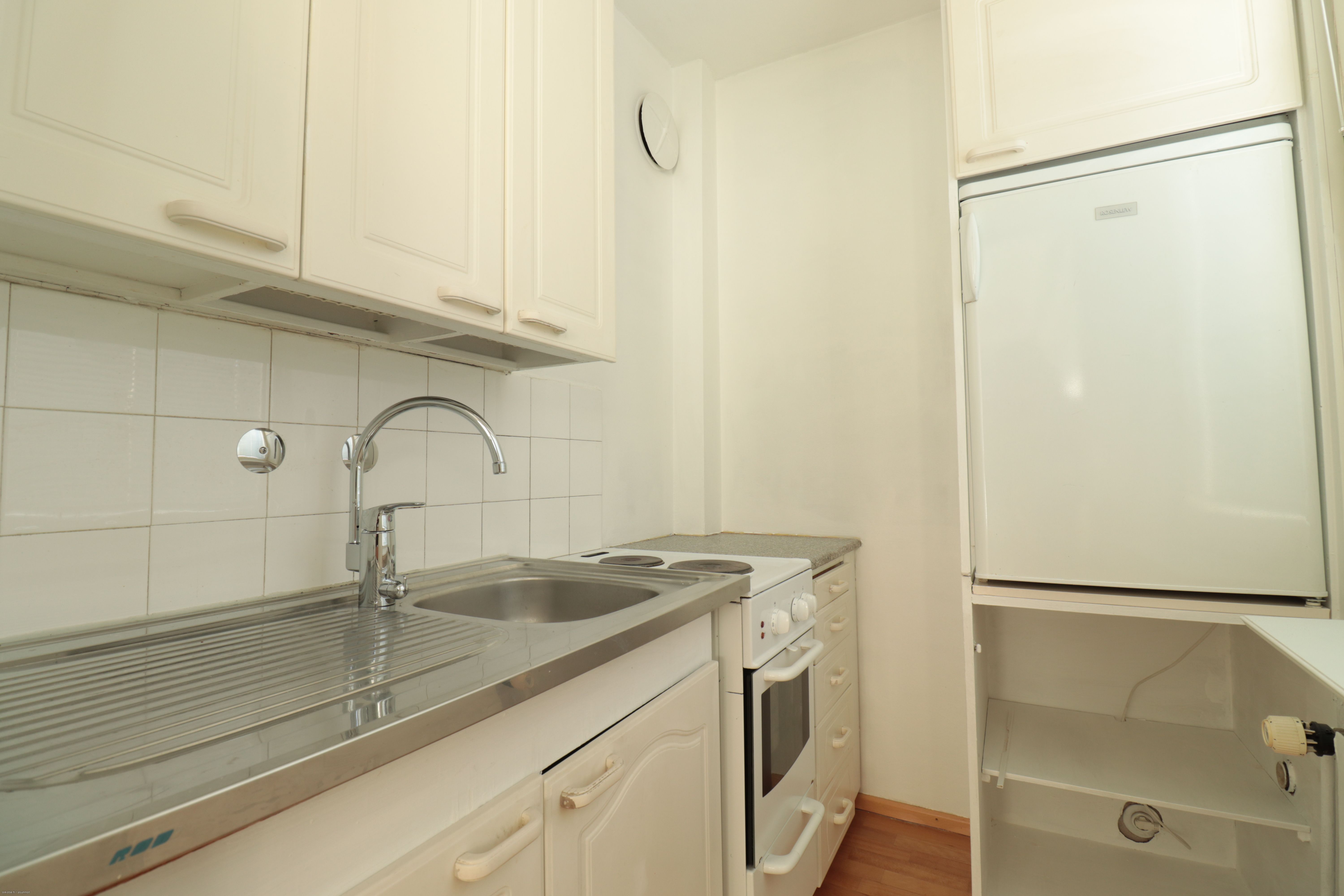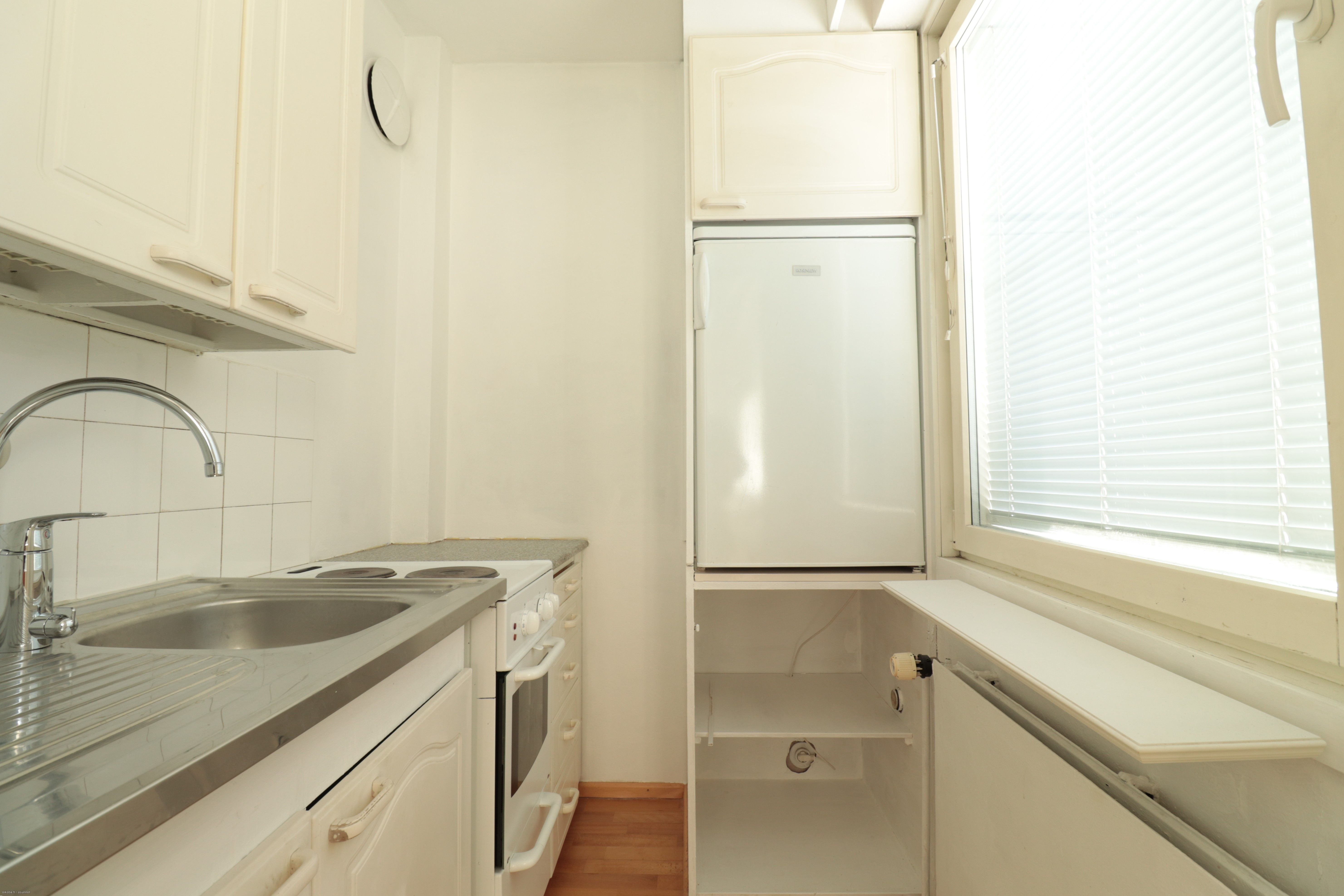 Tämä asunto on hissillisen talon toisessa (2/5) kerroksessa. Erillinen keittiökomero, jossa uuni/liesi ja jääkaappi pakastinlokerolla. Seinät siistein maalipinnoin ja lattia laminaattia. Näppäränkokoinen kaakeloitu kylpyhuone, mutta ei liitäntää omalle pyykinpesukoneelle. Asumisviihtyvyyttä lisäämässä oma parveke!