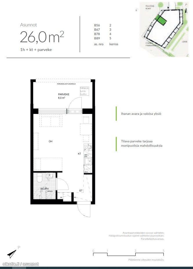 | Huoneiston kokoonpano | 1h,kt,parv |
