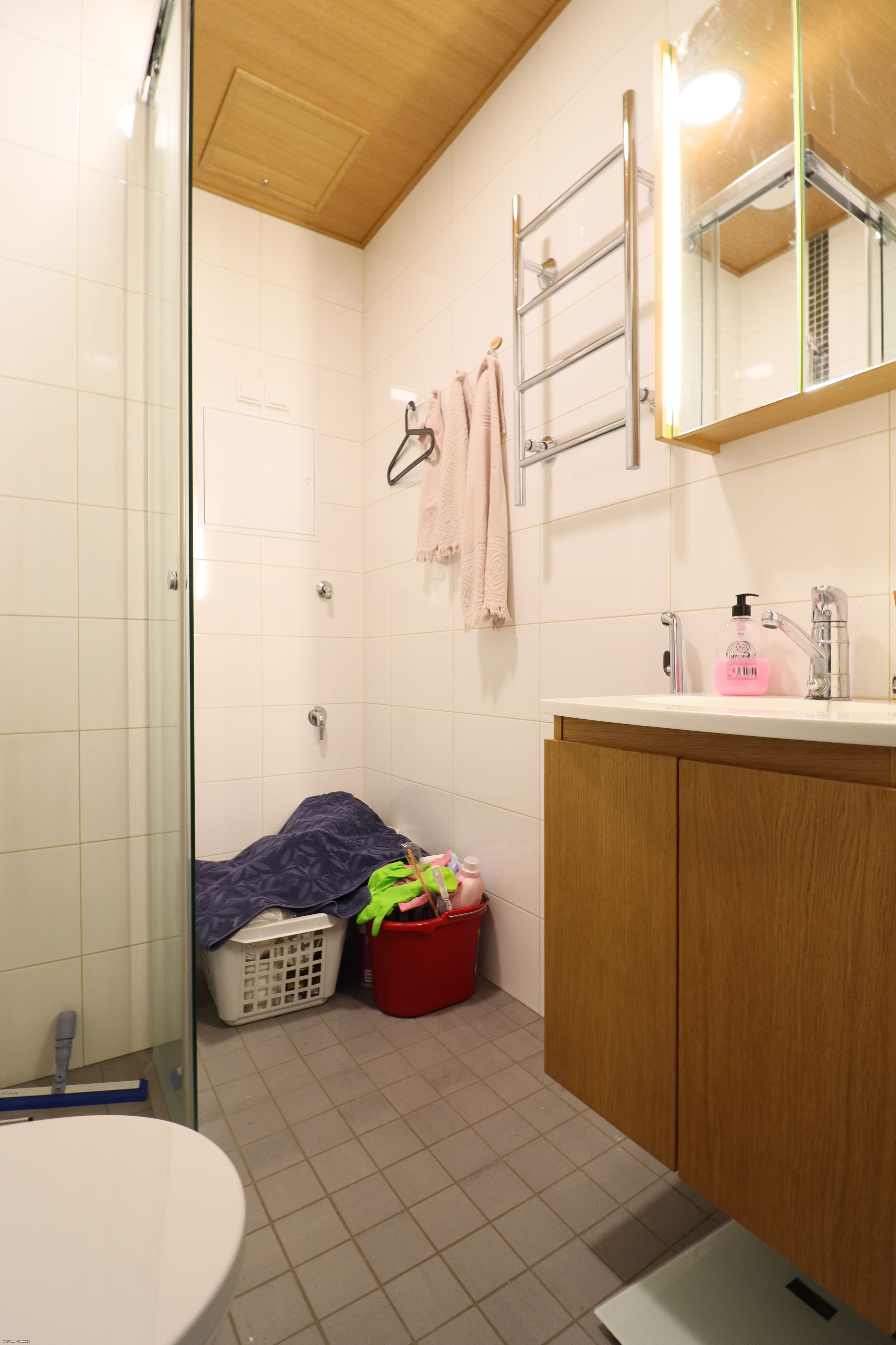 Asunnon pohjaratkaisu on selkeä ja käytännöllinen. Huima huonekorkeus avartaa asuntoa ja oma aidattu pihaterassi kruunaa asunnon. Keittiön varustukseen kuuluu jääkaappipakastin, uuni, liesi sekä astianpesukone. Kylpyhuoneessa on tilavaraus pyykinpesukoneelle.