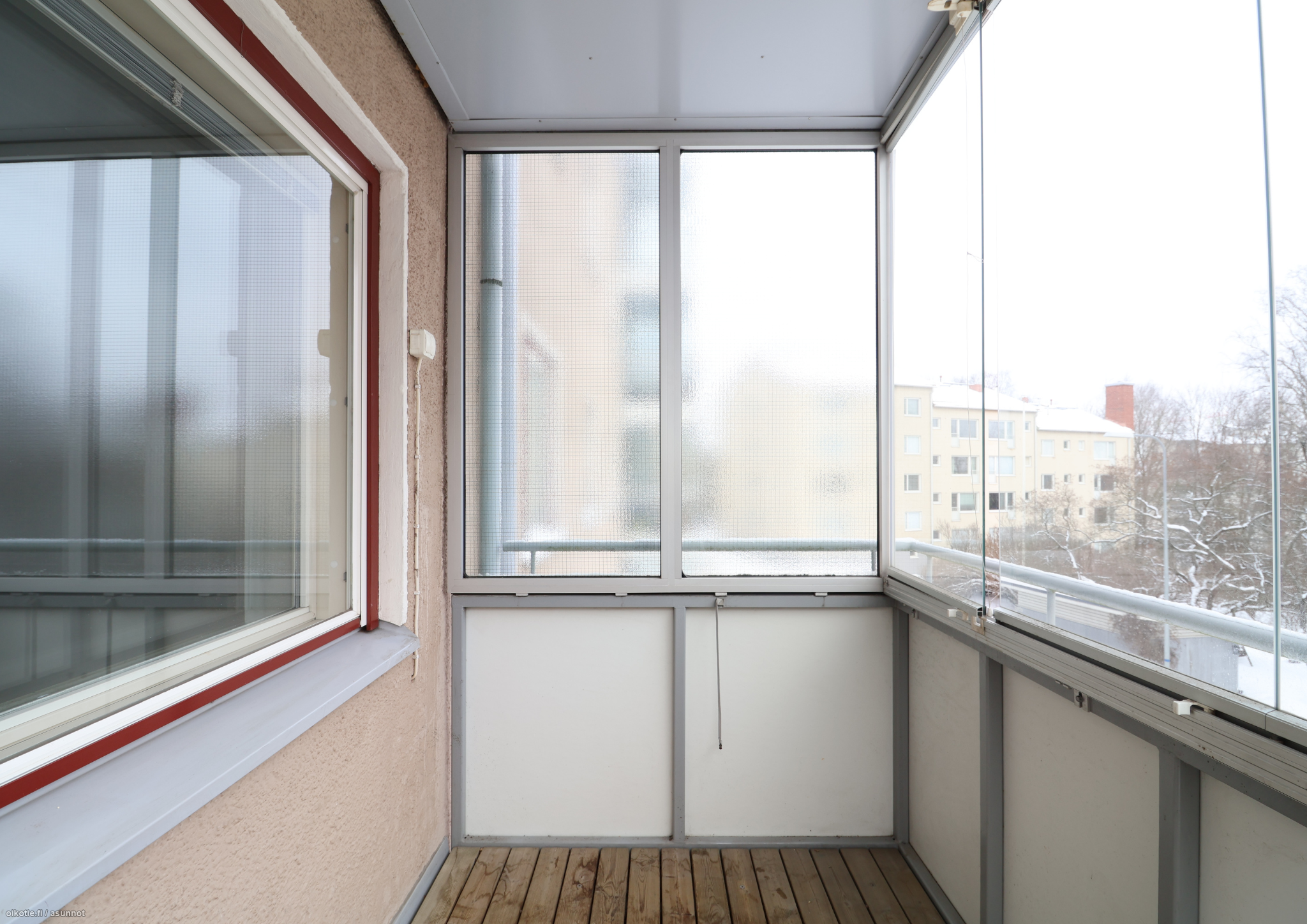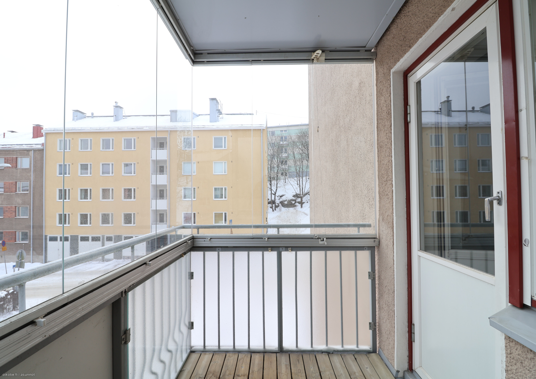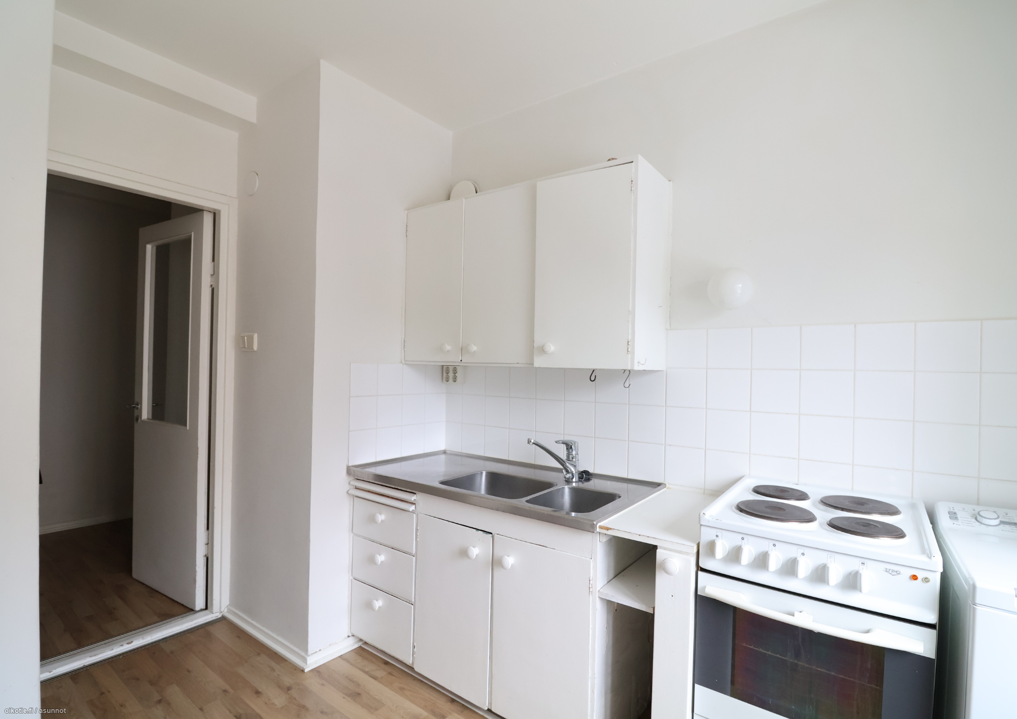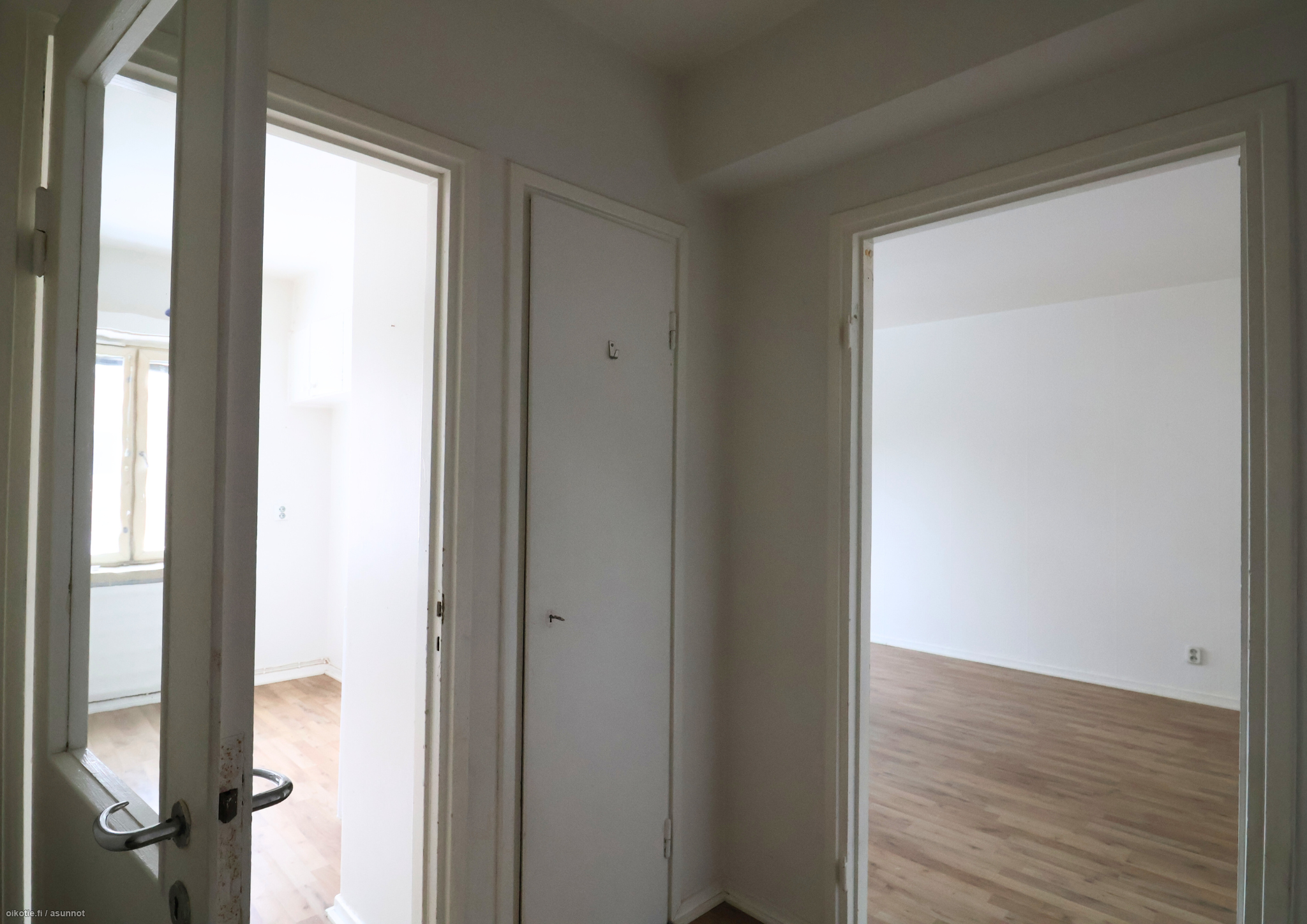 Tämä viihtyisä yksiö on valoisa ja selkeäpohjainen, mikä helpottaa tilan kalustamista ja käyttöä. Keittiö sijaitsee omassa komerossaan, ja sieltä löytyy pesukone, ja mikroaaltouuni valmiiksi.