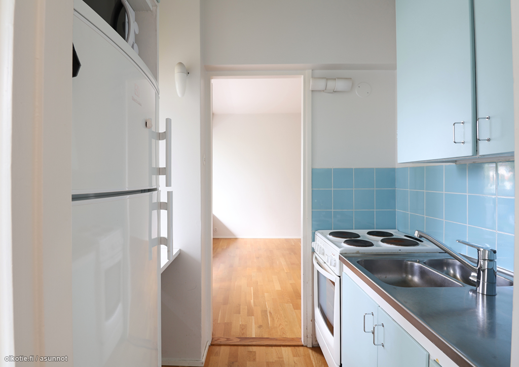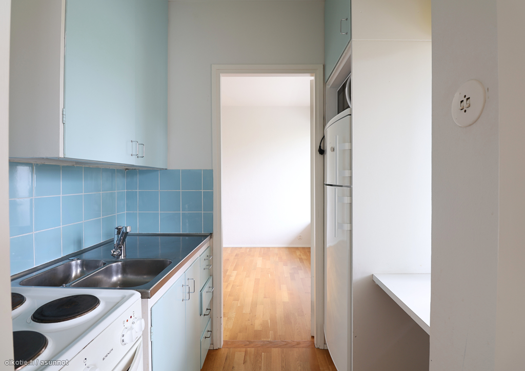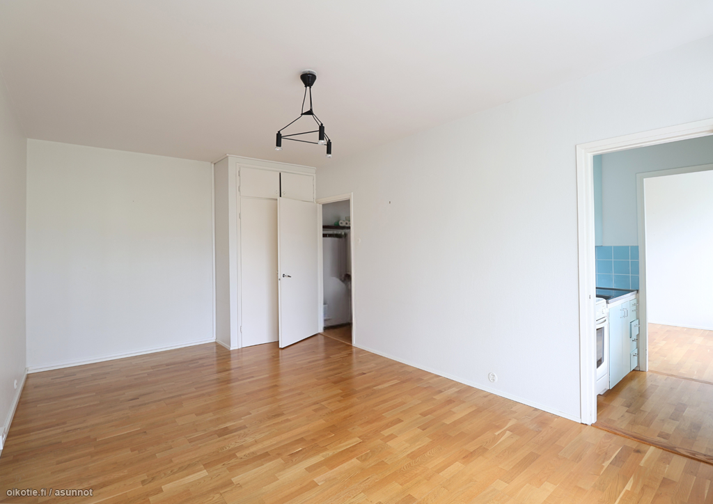 Tässä ihanassa kaksiossa on kaksi erillistä huonetta, minkä vuoksi se tuntuu neliöitään tilavammalta. Keittiön varusteluun kuuluu mm. uuni ja jääkaappi-pakastin. Vaatehuoneen ansiosta asunnossa on runsaasti säilytystilaa. Remontoidussa kylpyhuoneessa on paikka ja liitännät pyykinpesukoneelle. Asumismukavuutta lisää koko asunnon levyinen parveke!