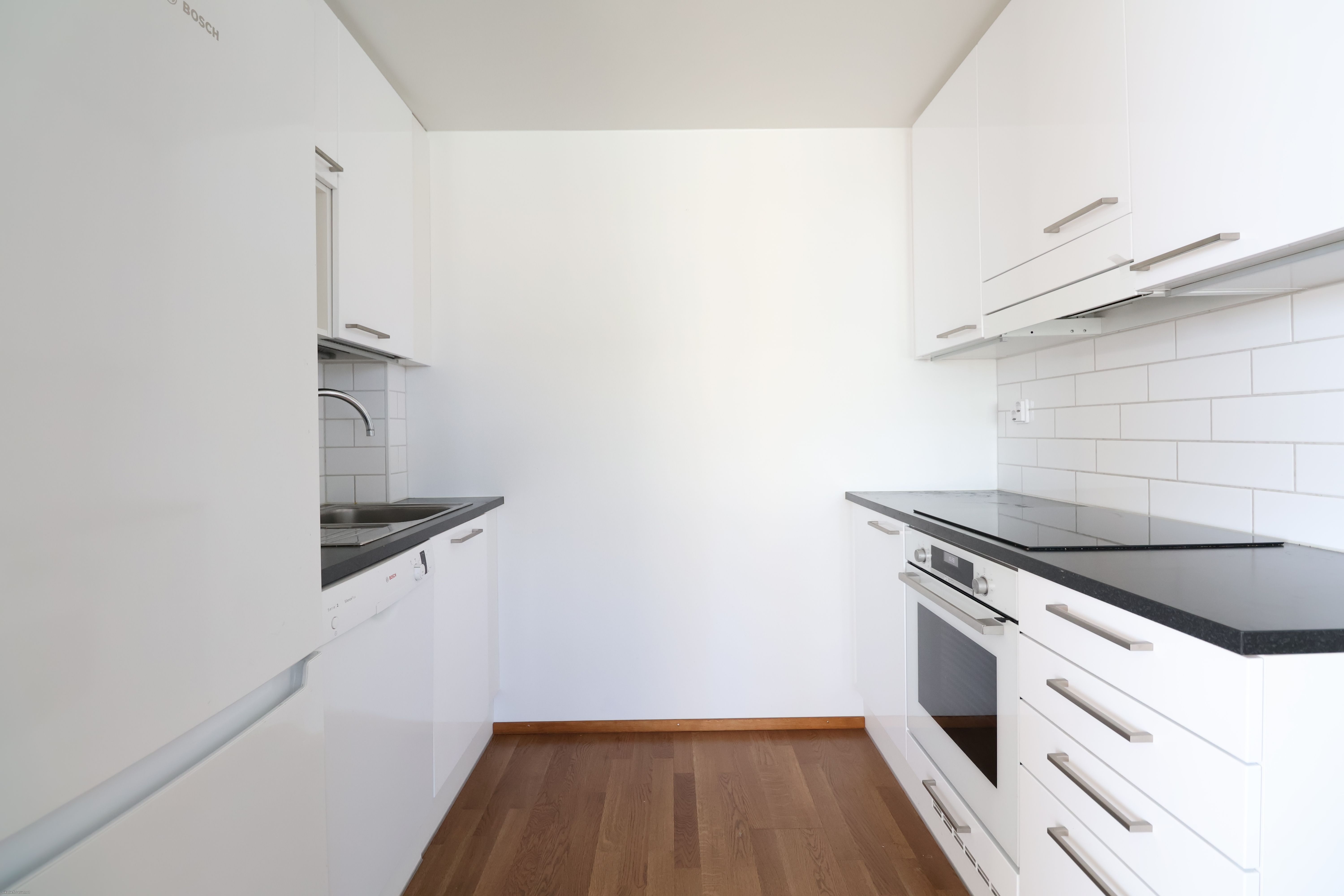 Tämä koti sijaitsee talon seitsemännessä kerroksessa ja on kulma-asunto, joten luonnonvaloa tulee sisään kahdesta eri suunnasta ja pitkälle avautuvat näkymät ovat mainiot. Keittiön varustukseen kuuluu uuni, liesitaso, jääkaappi-pakastin sekä astianpesukone. Todella tilavassa kylpyhuoneessa on liitännät pyykinpesukoneelle. Säilytystarpeet on ratkaistu vaatehuoneella.
