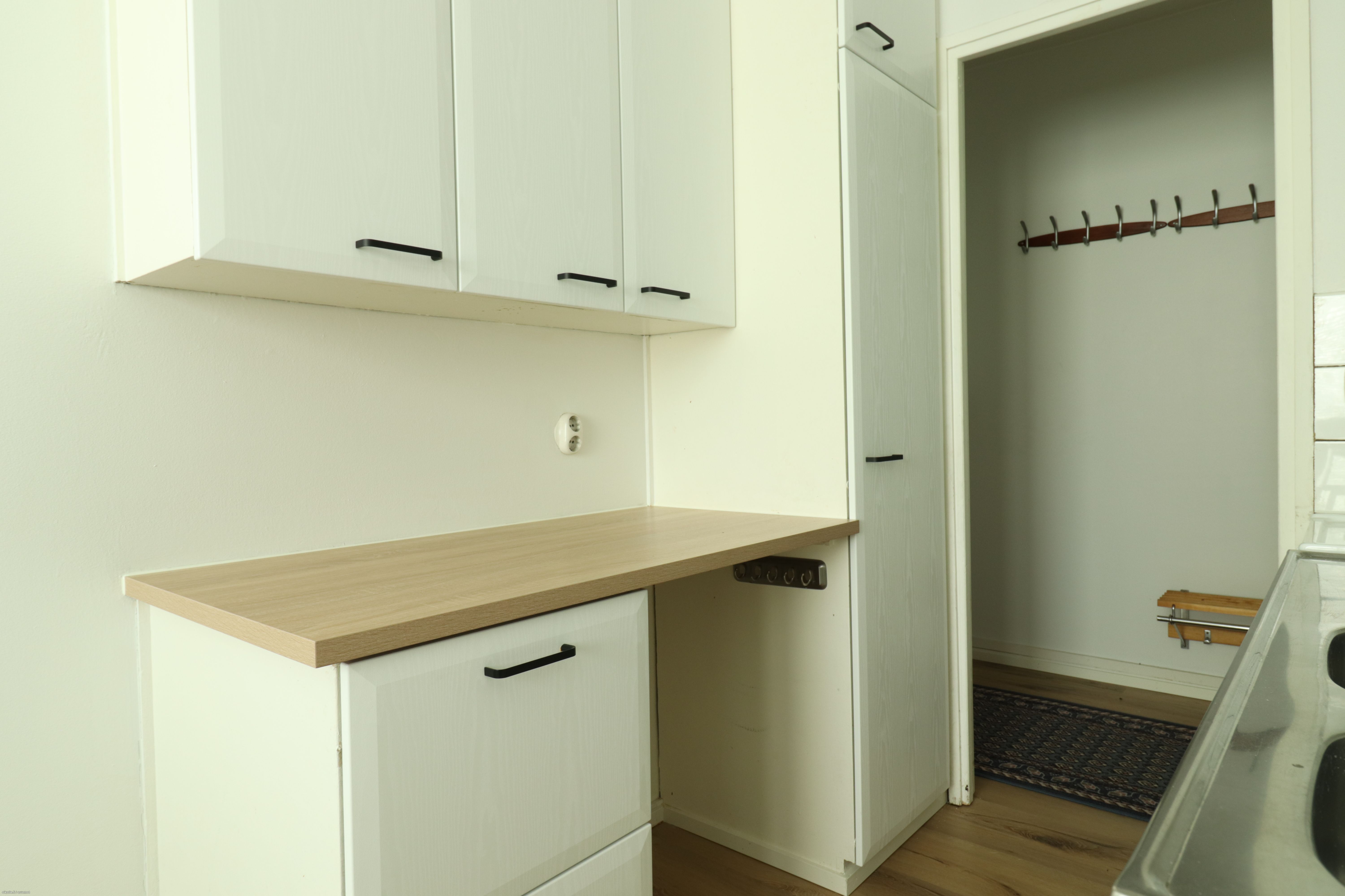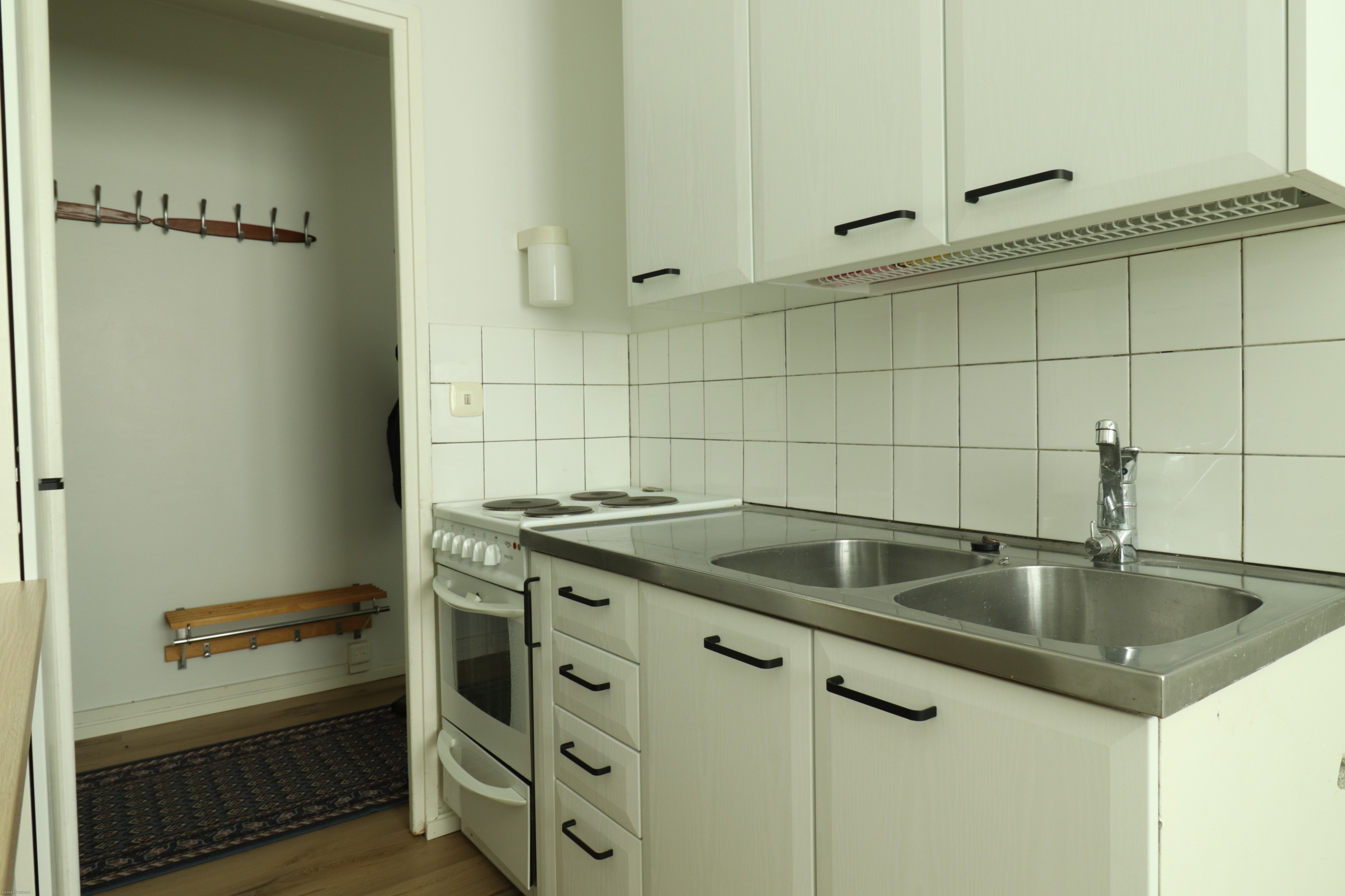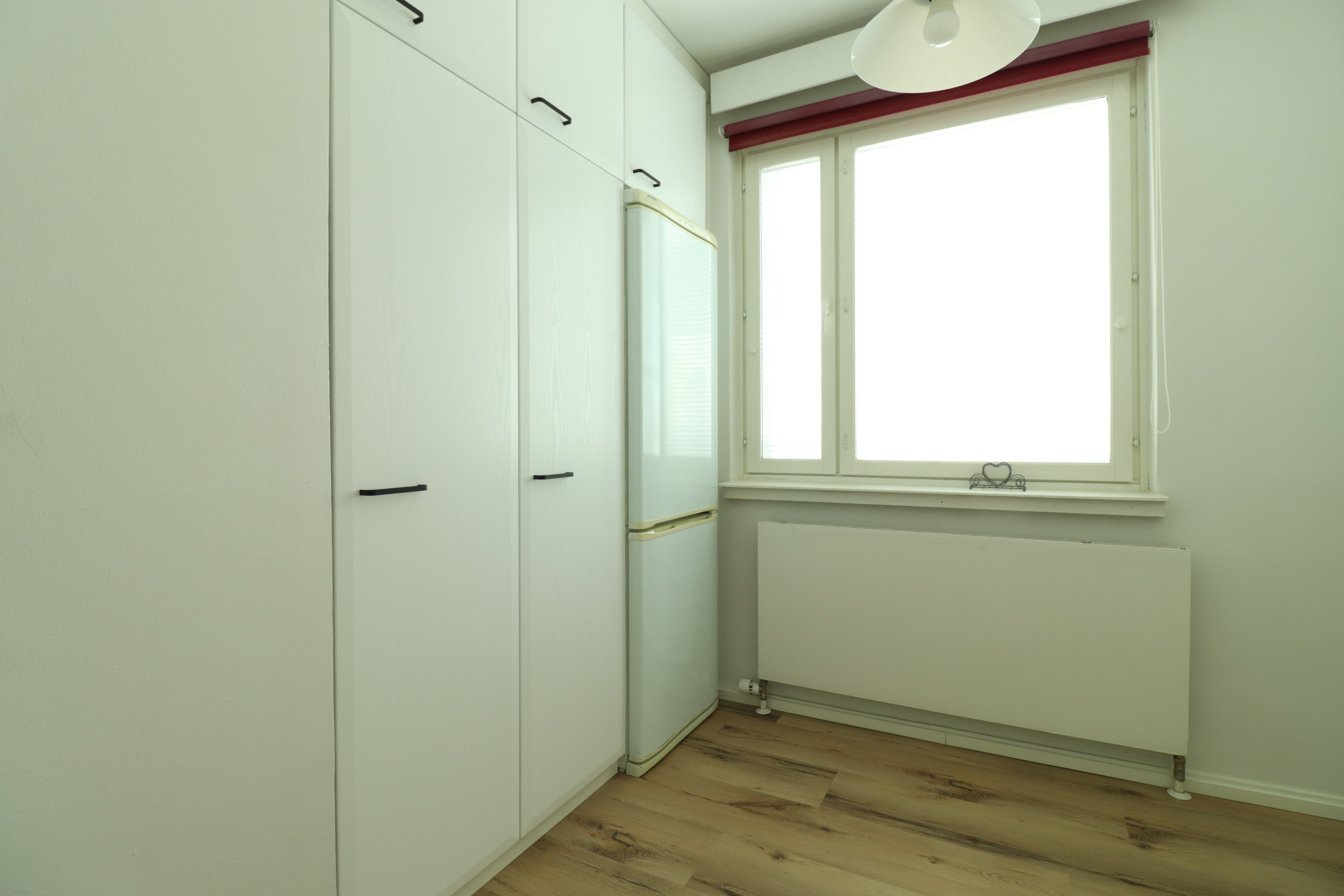 Uusi vinyylilattia asennettu lähivuosina sekä seinät maalattu. Keittiössä jääkaappipakastin sekä liesi. Keittiön kaapit vasta uusittu. Kylpyhuone täysin uusittu ja kaakeloitu taloyhtiön LVIS-saneerauksen yhteydessä vuonna 2013. Pyykinpesukoneelle paikka ja liitännät.