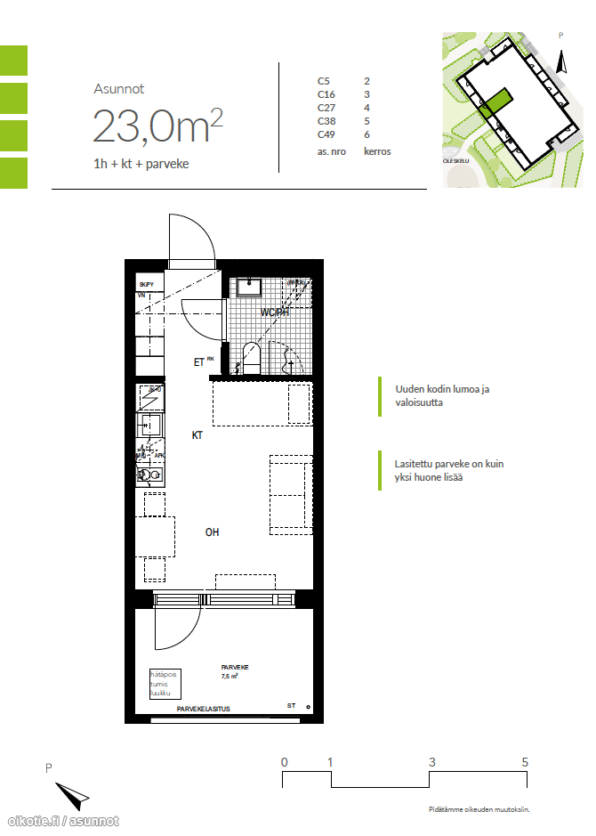 | Huoneiston kokoonpano | 1h,kt,kh,las.parveke |